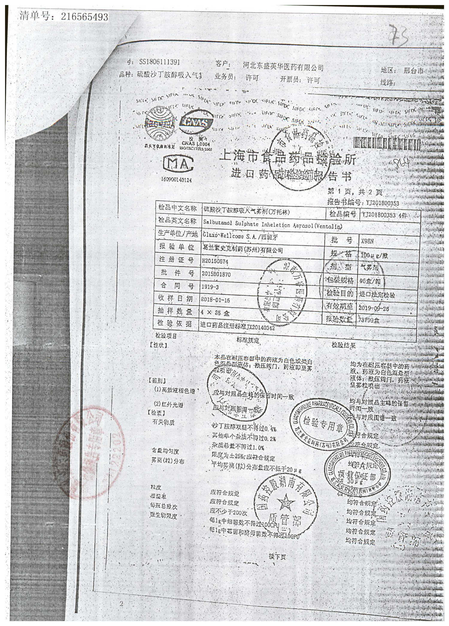 硫酸沙丁胺醇吸入气雾剂 | 100ug | X98N(2/4) | 查看详情 |