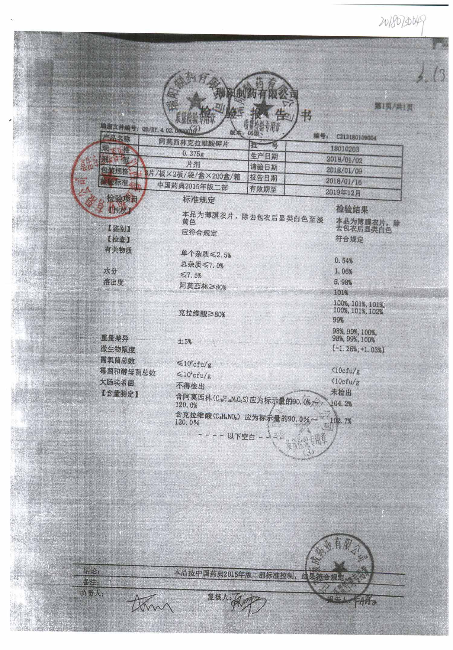 药检报告