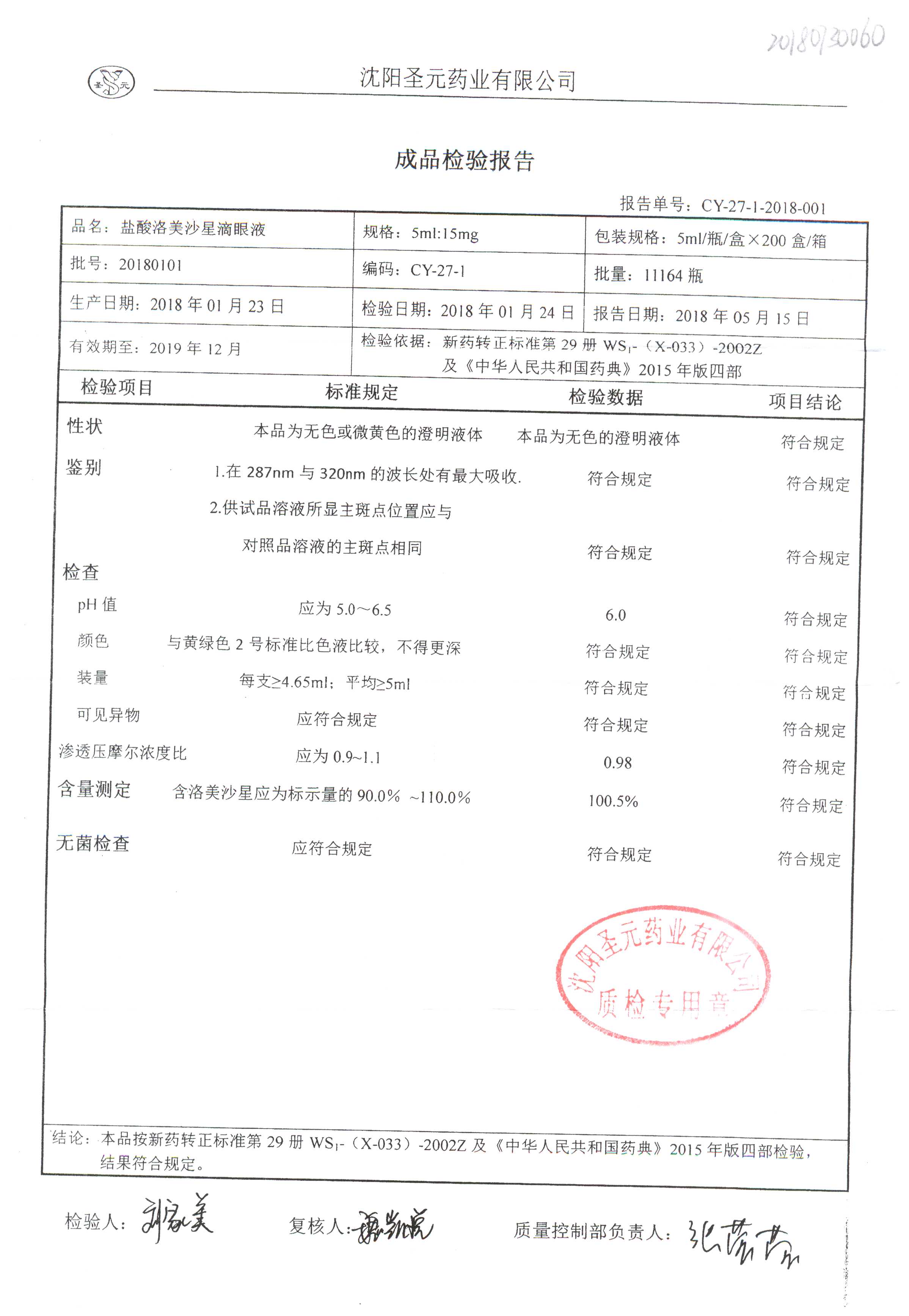 药检报告