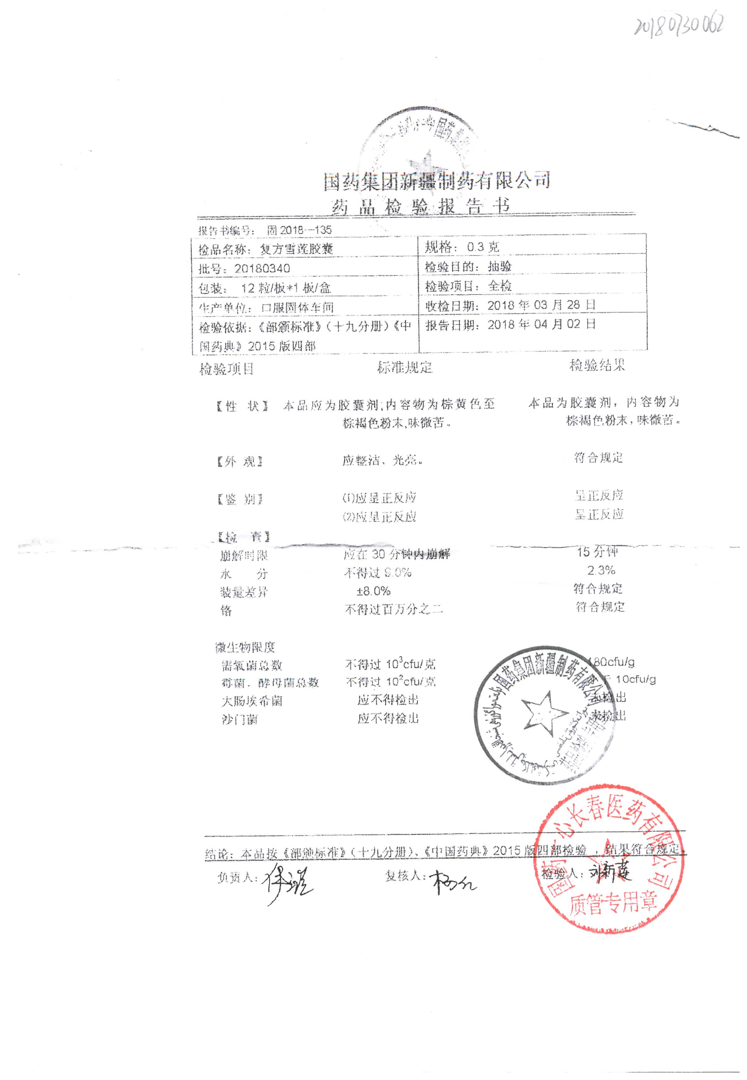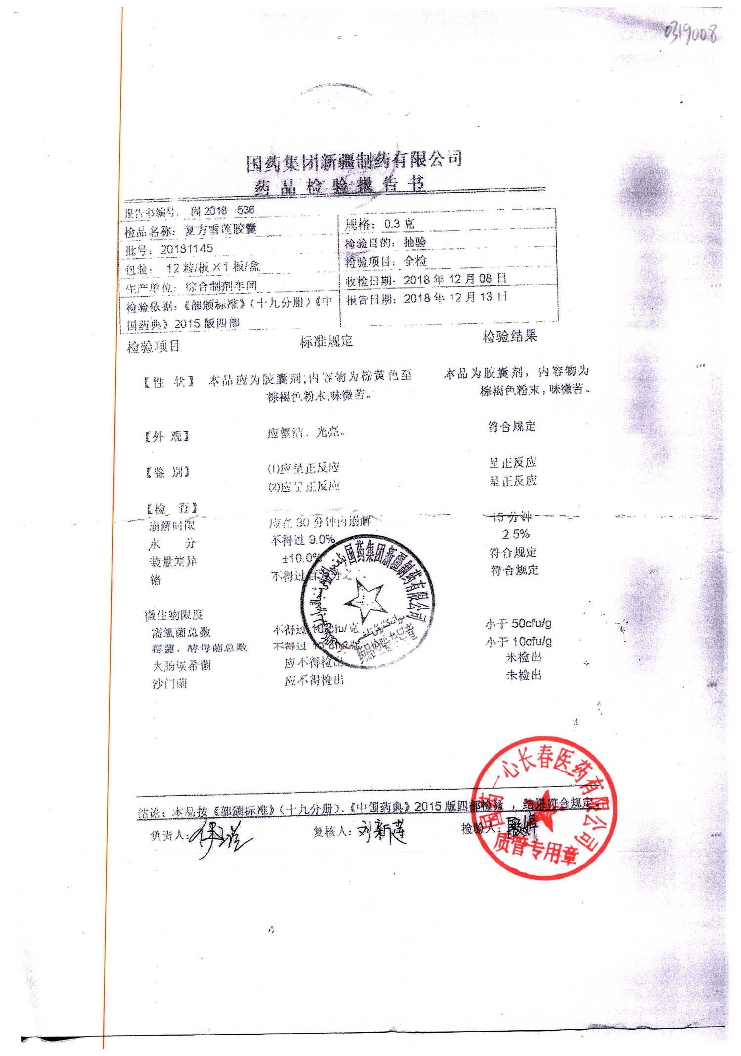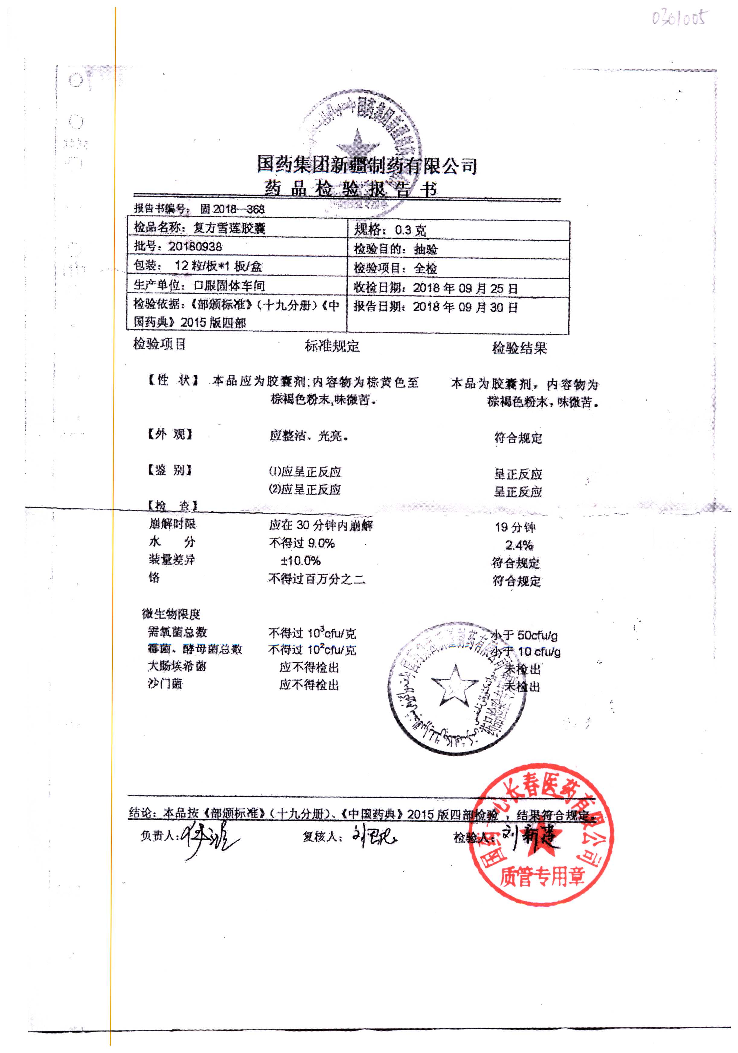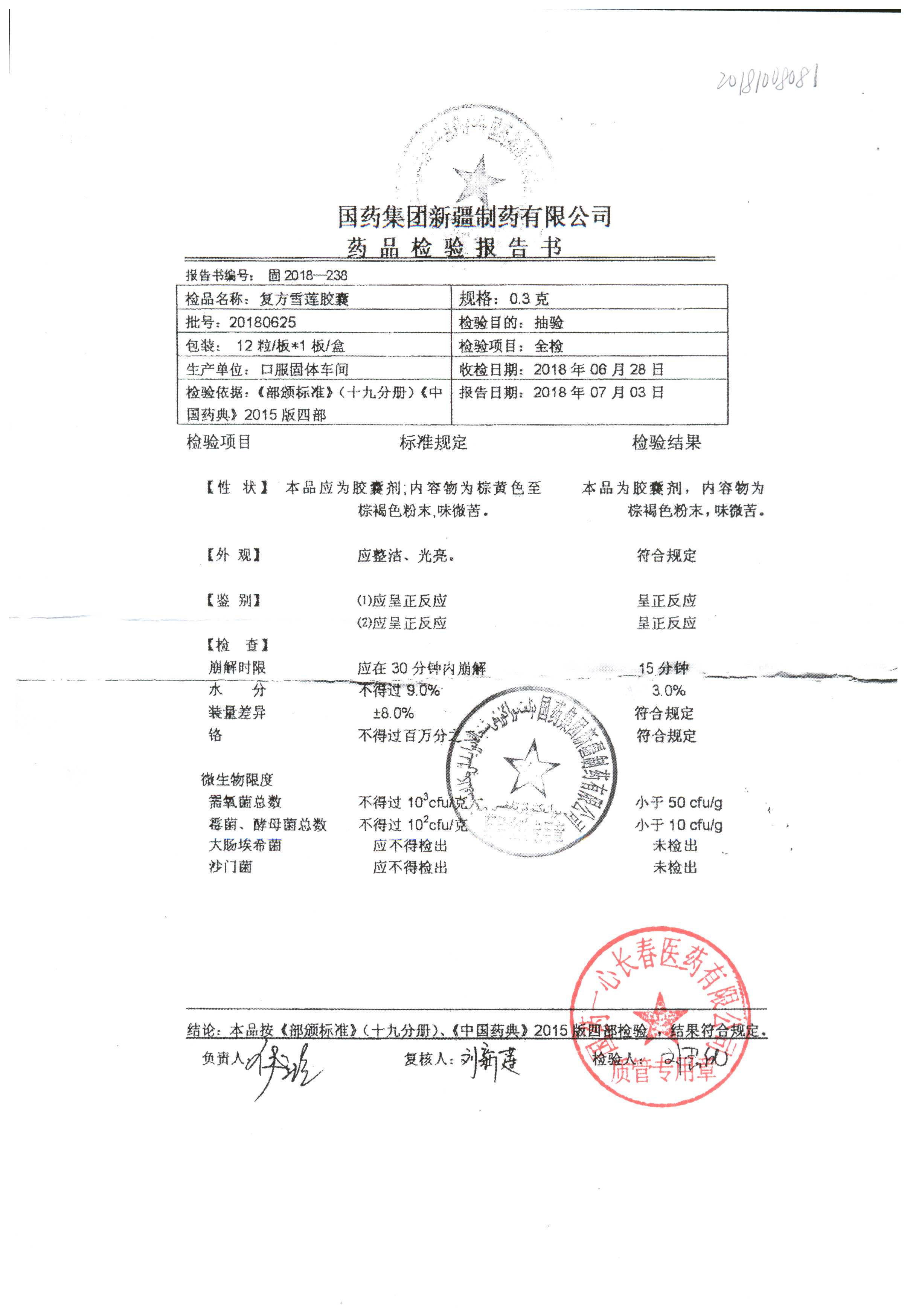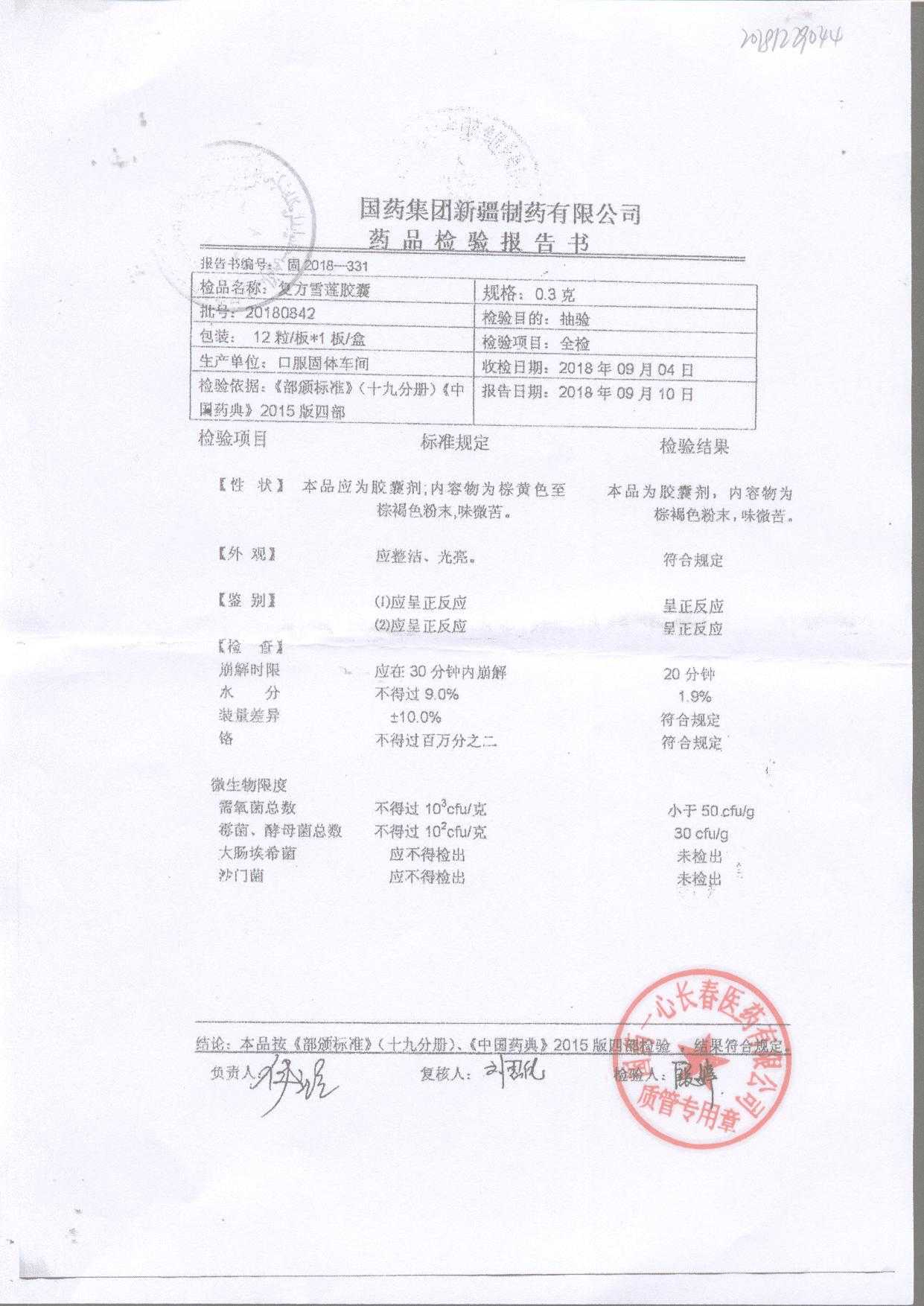 复方雪莲胶囊 | 0.3g*12粒 | 20180625 | 查看详情 |