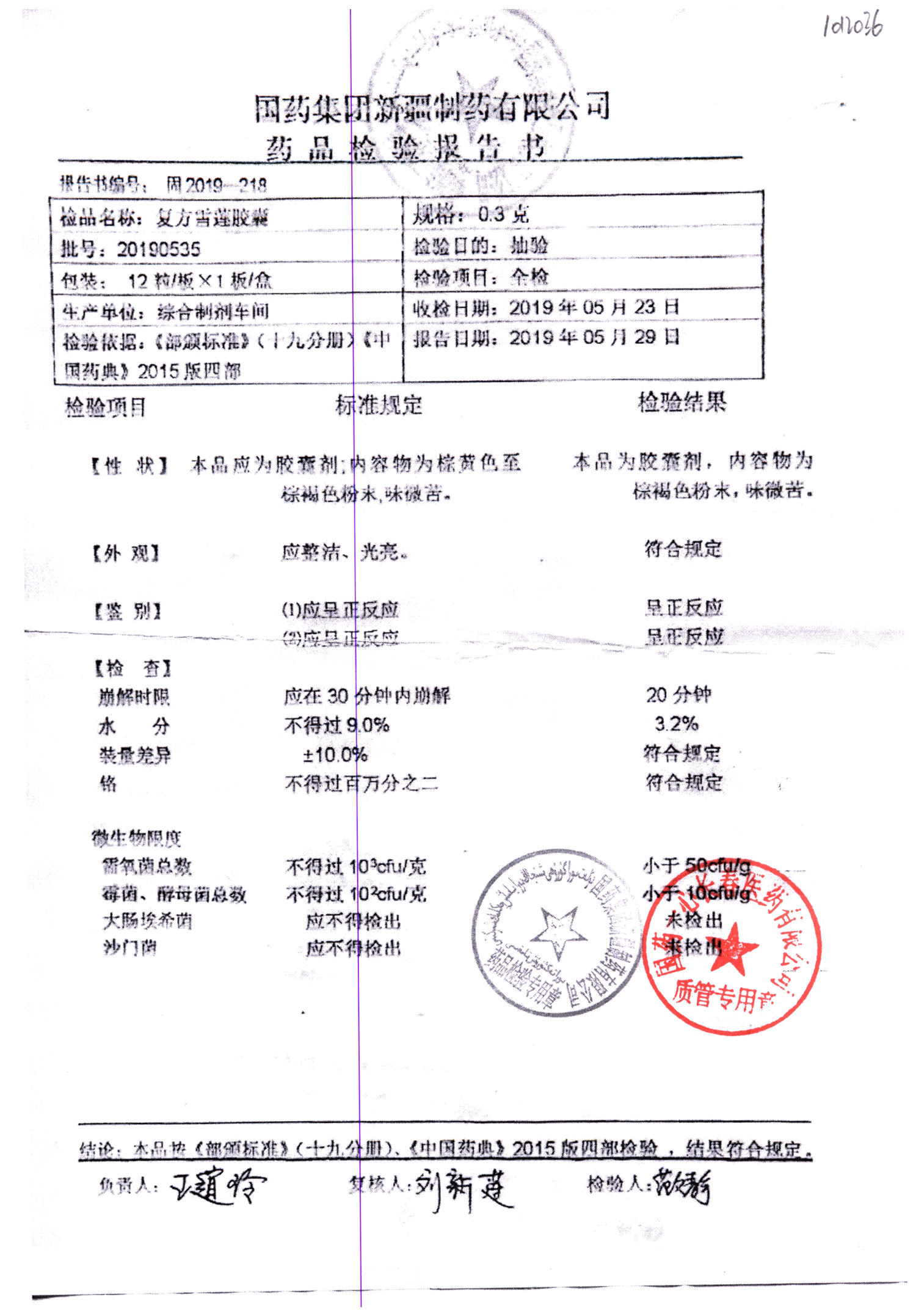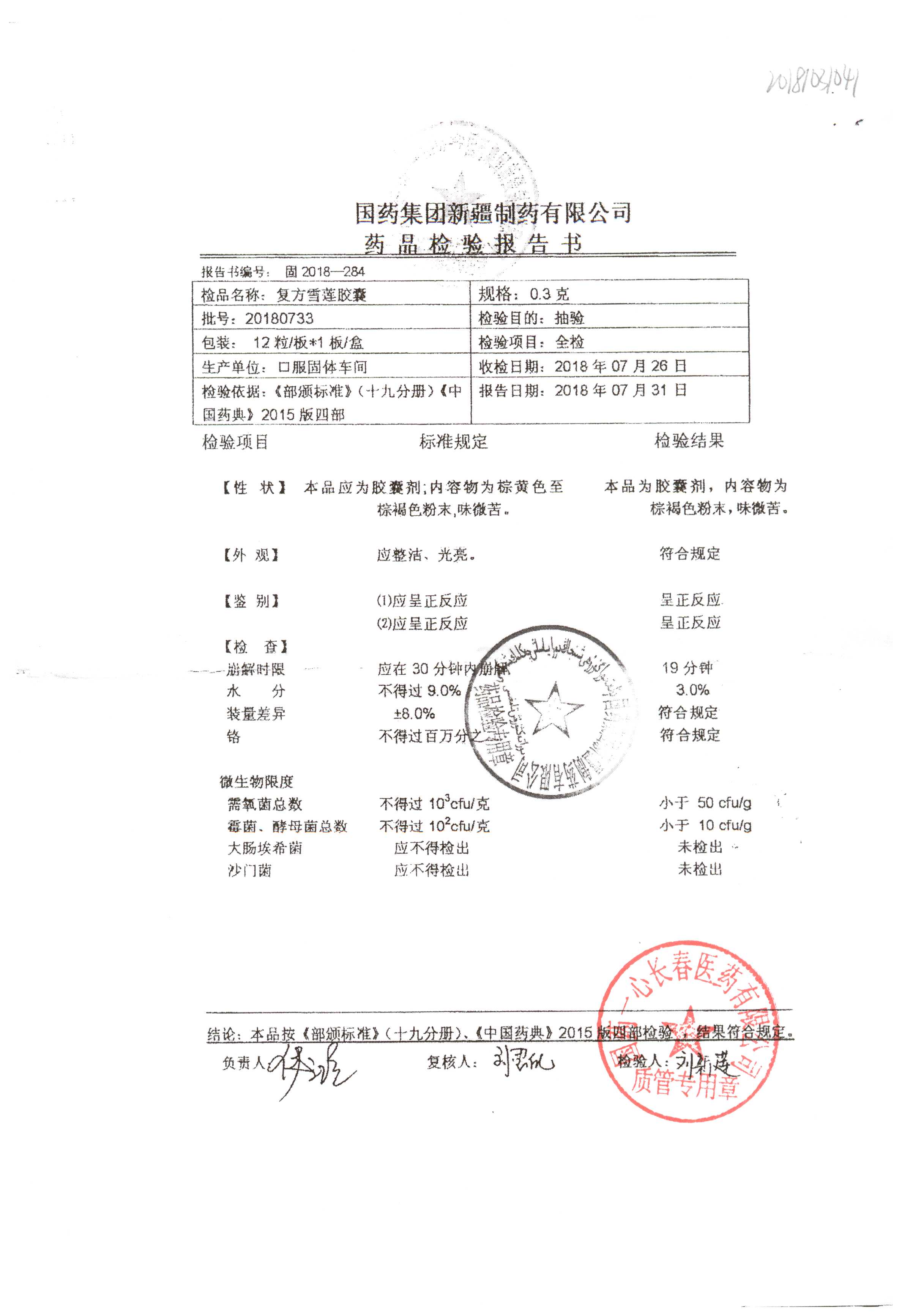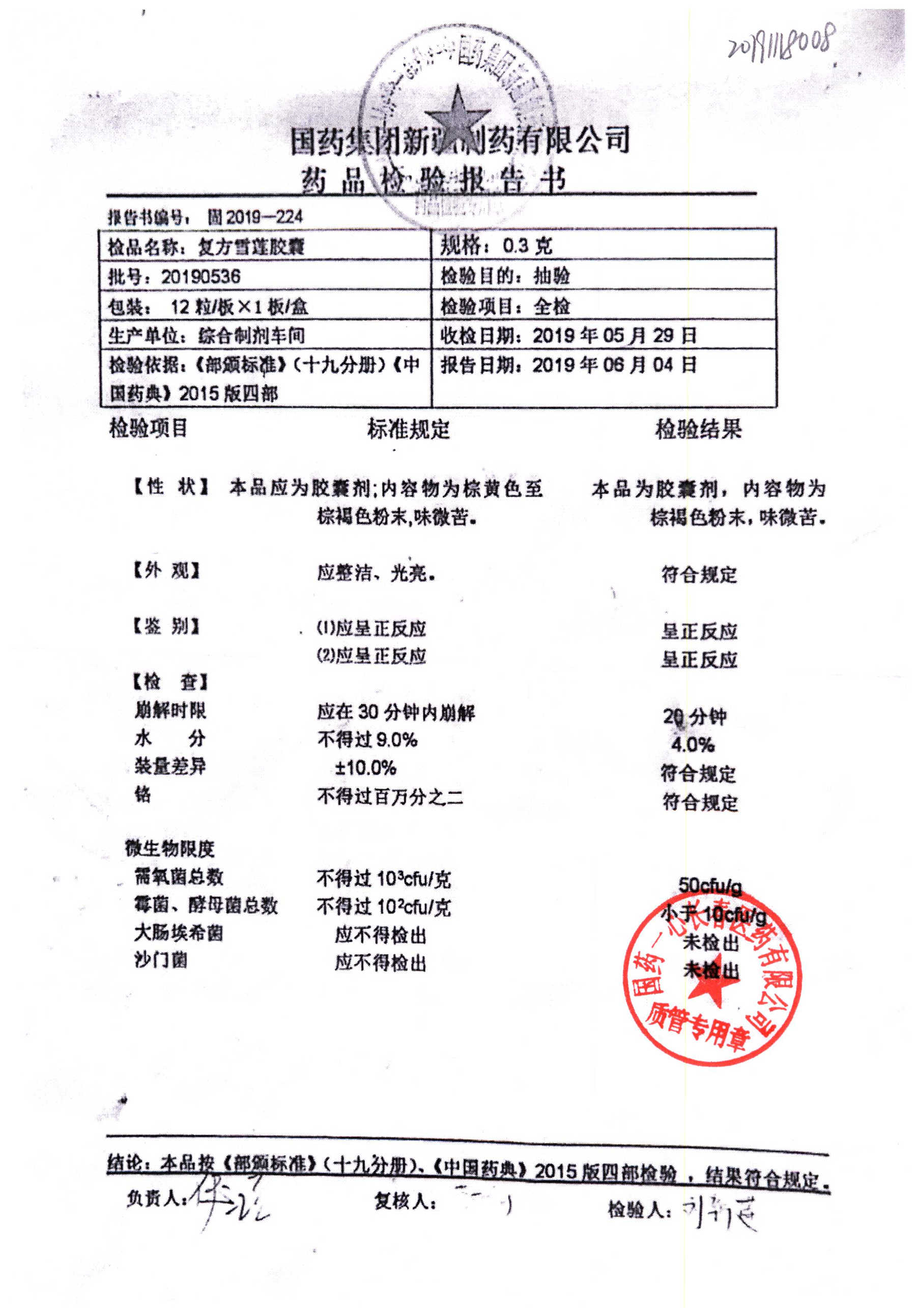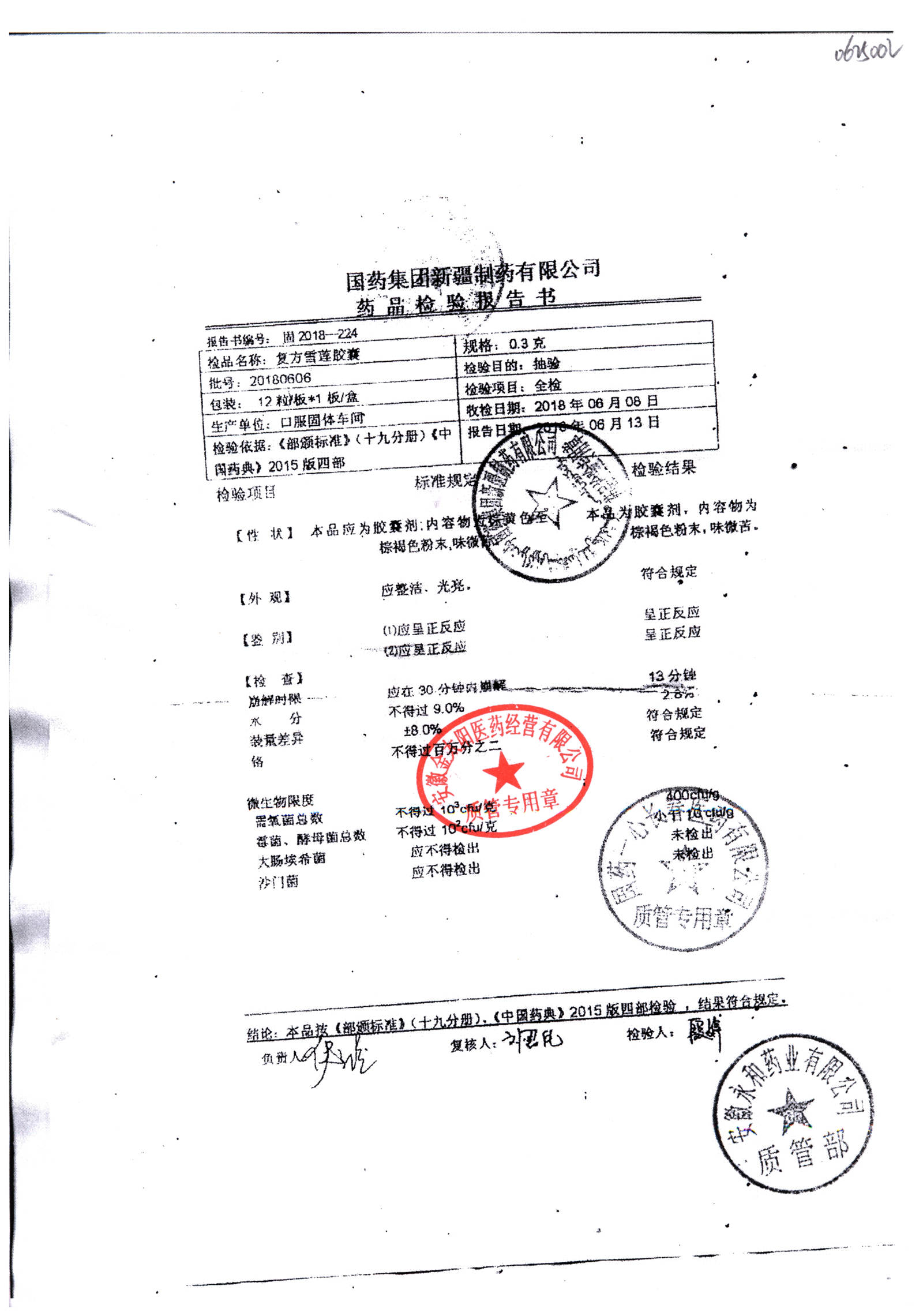 复方雪莲胶囊 | 0.3g*12粒 | 20180606 | 查看详情 |