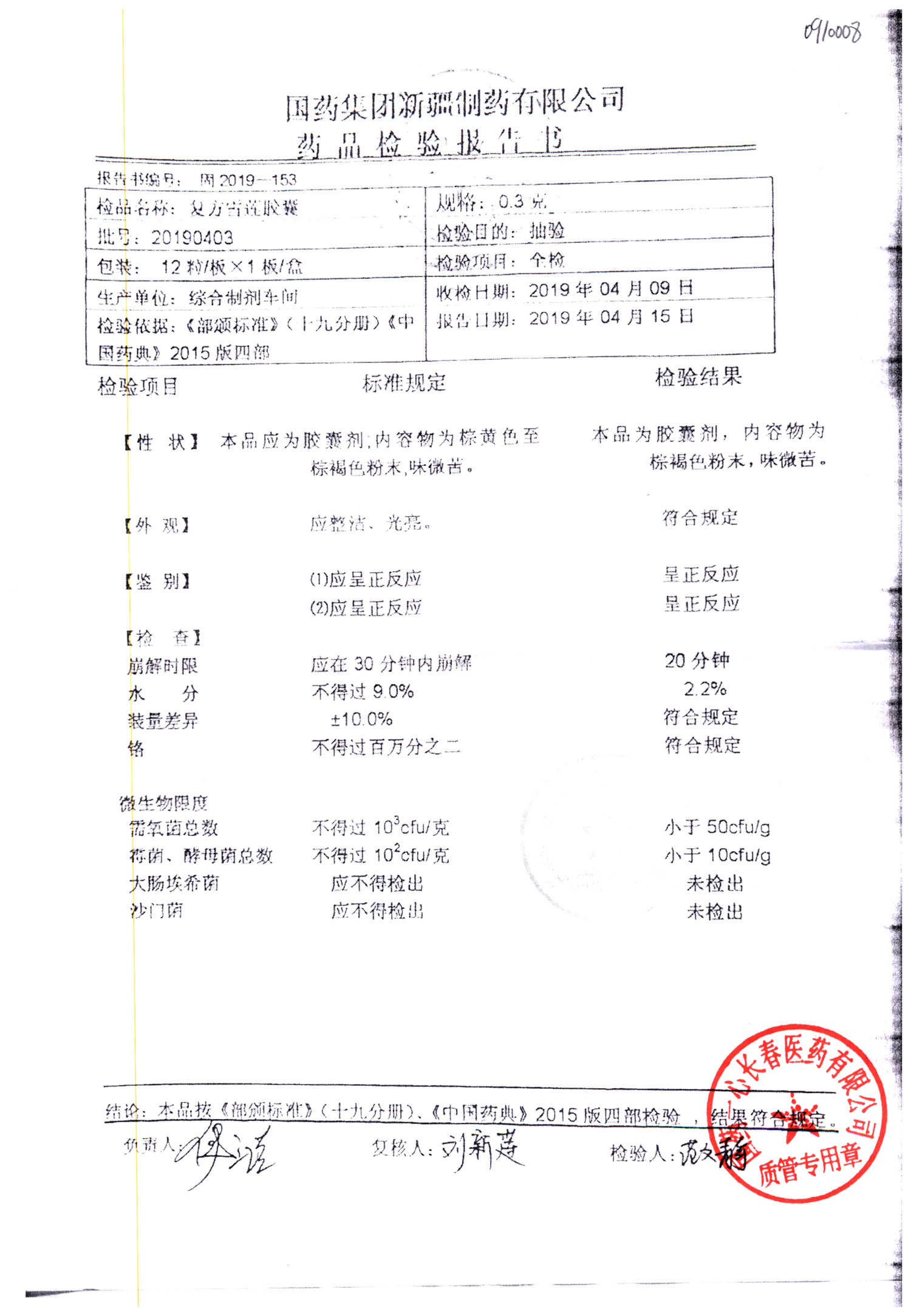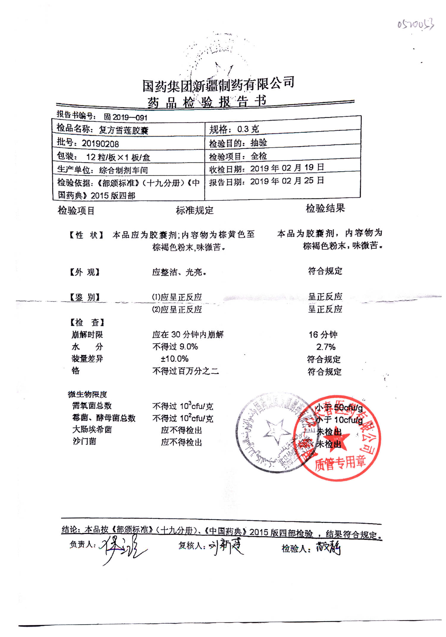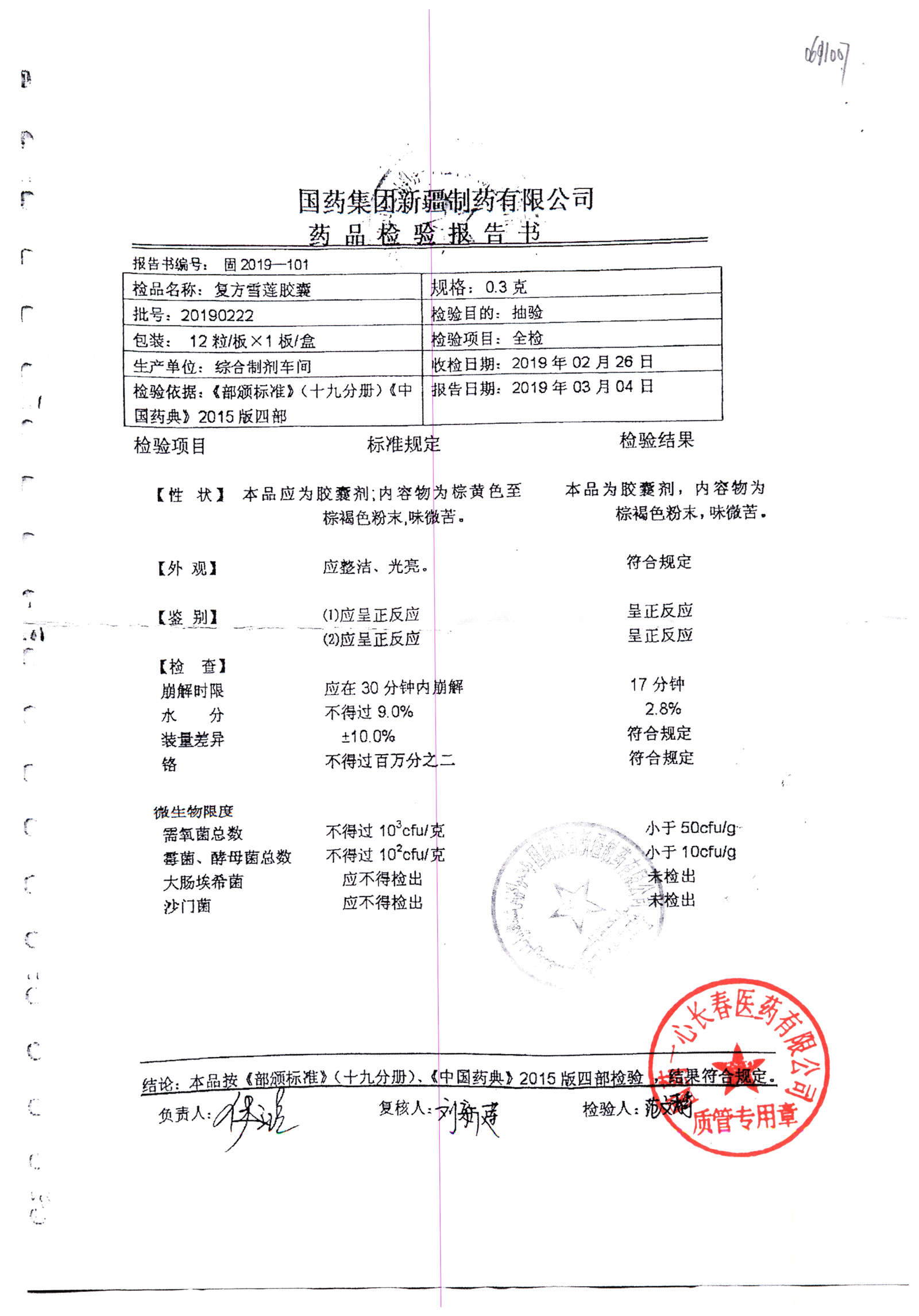 复方雪莲胶囊 | 0.3g*12粒 | 20190208 | 查看详情 |