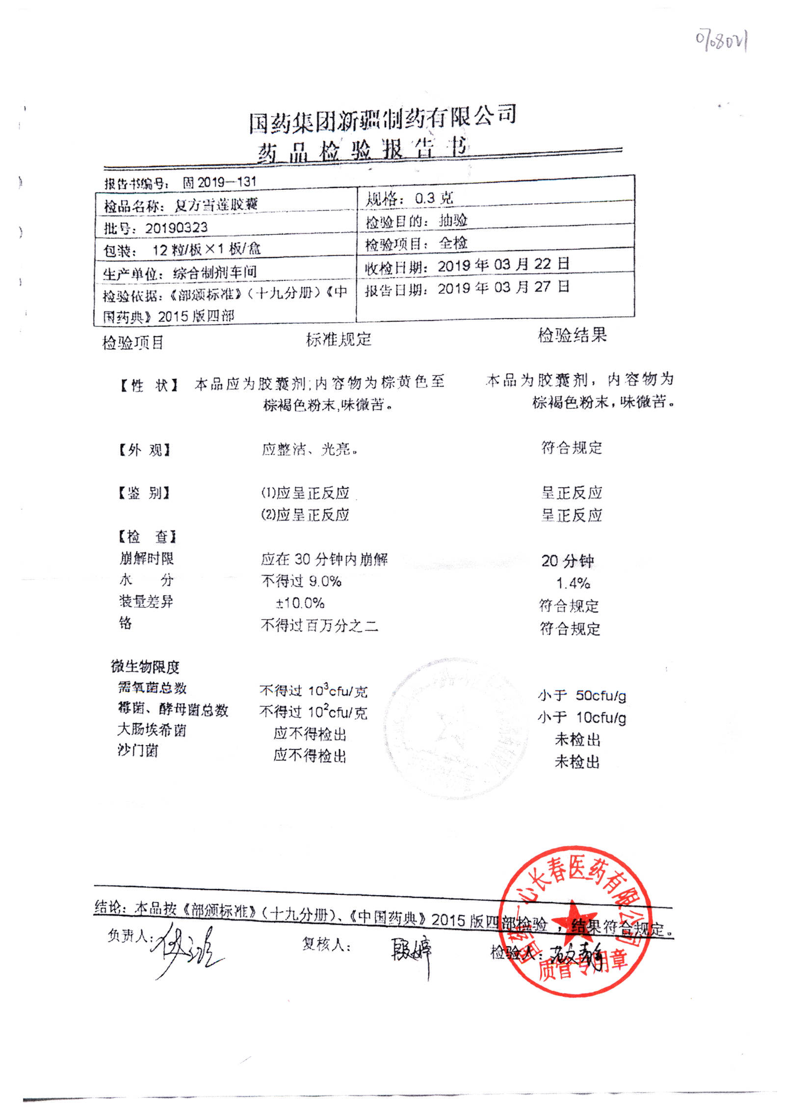 复方雪莲胶囊 | 0.3g*12粒 | 20190323 | 查看详情 |