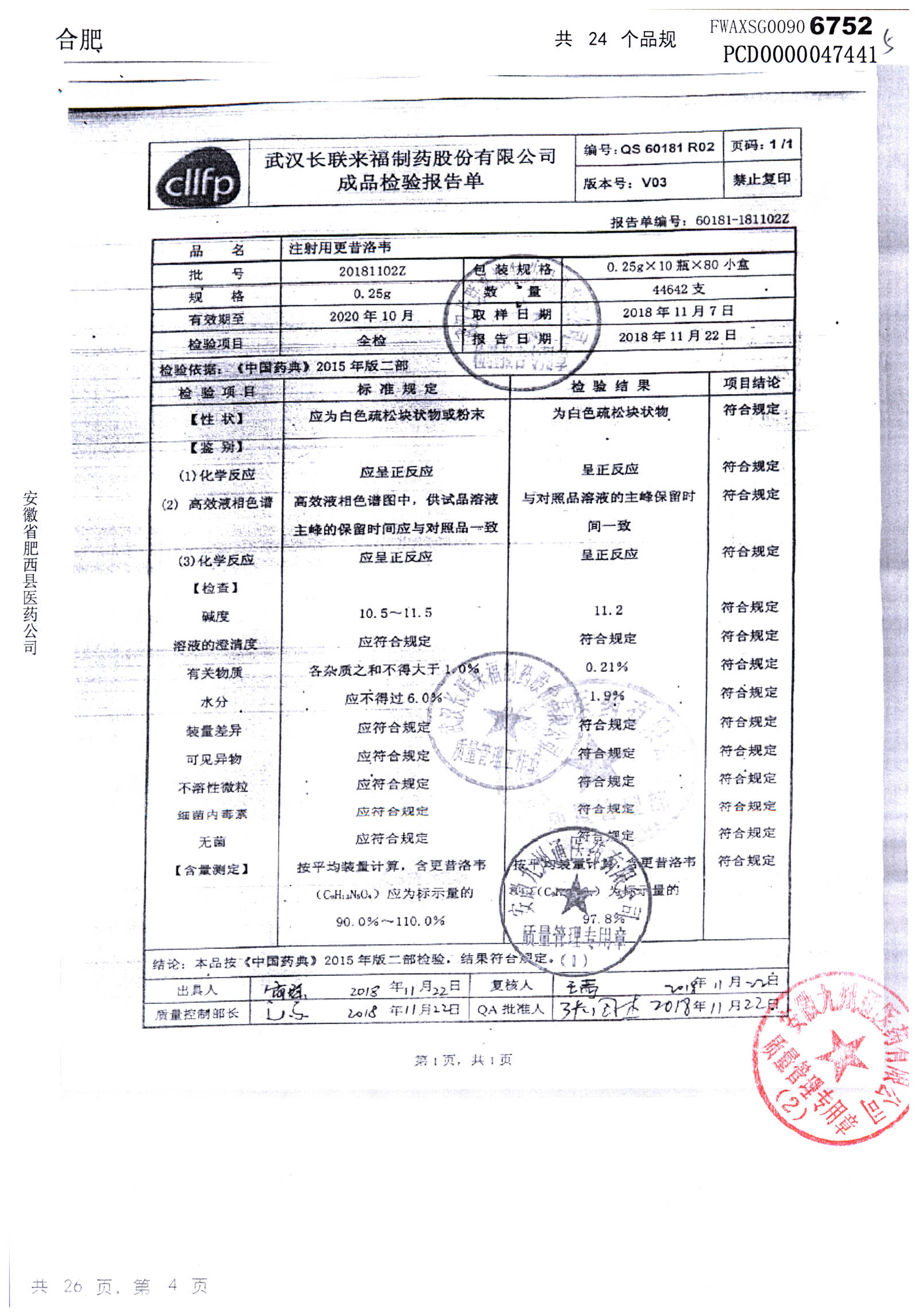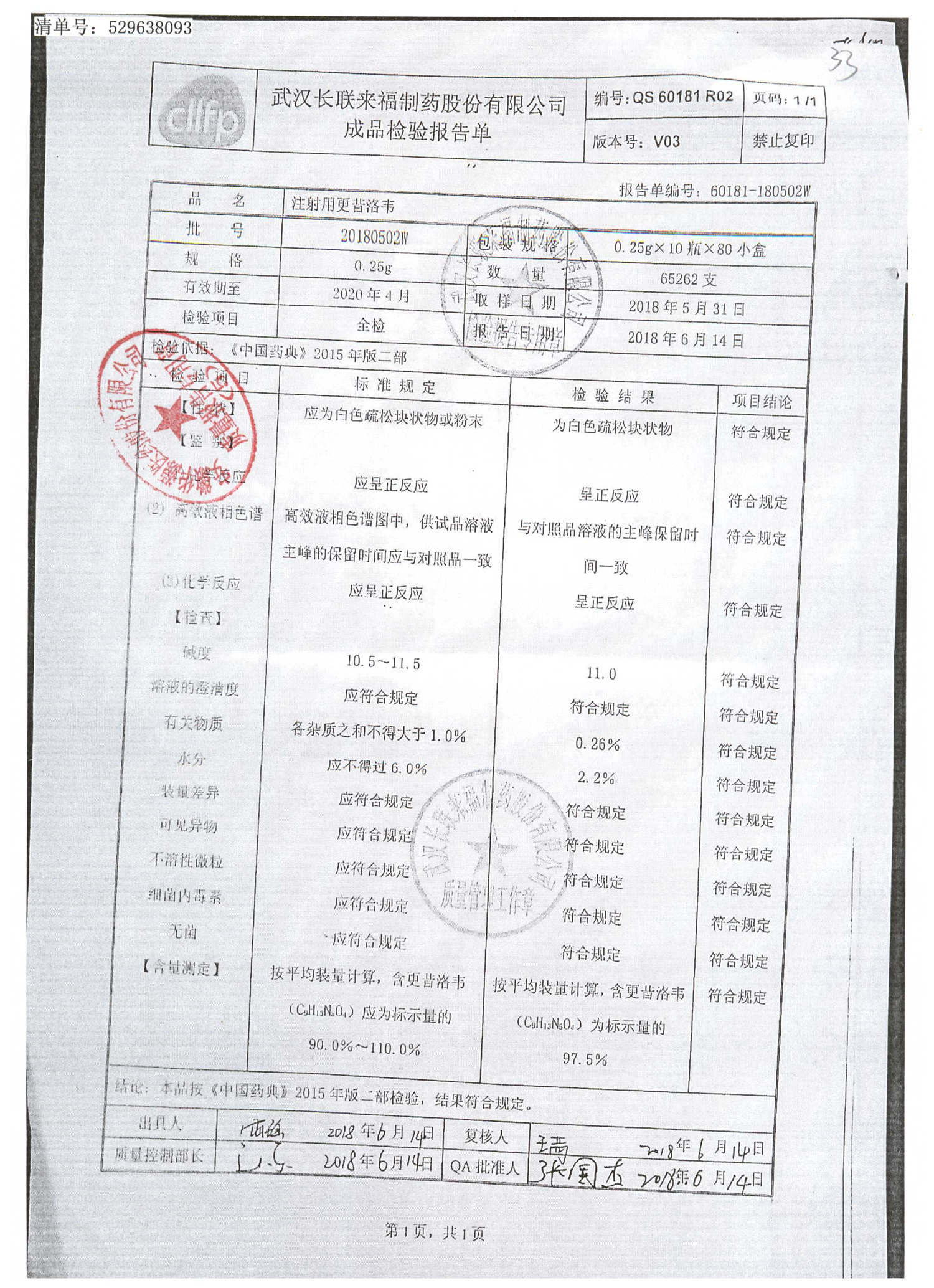 注射用更昔洛韦 | 0.25g | 20180502W | 查看详情 |