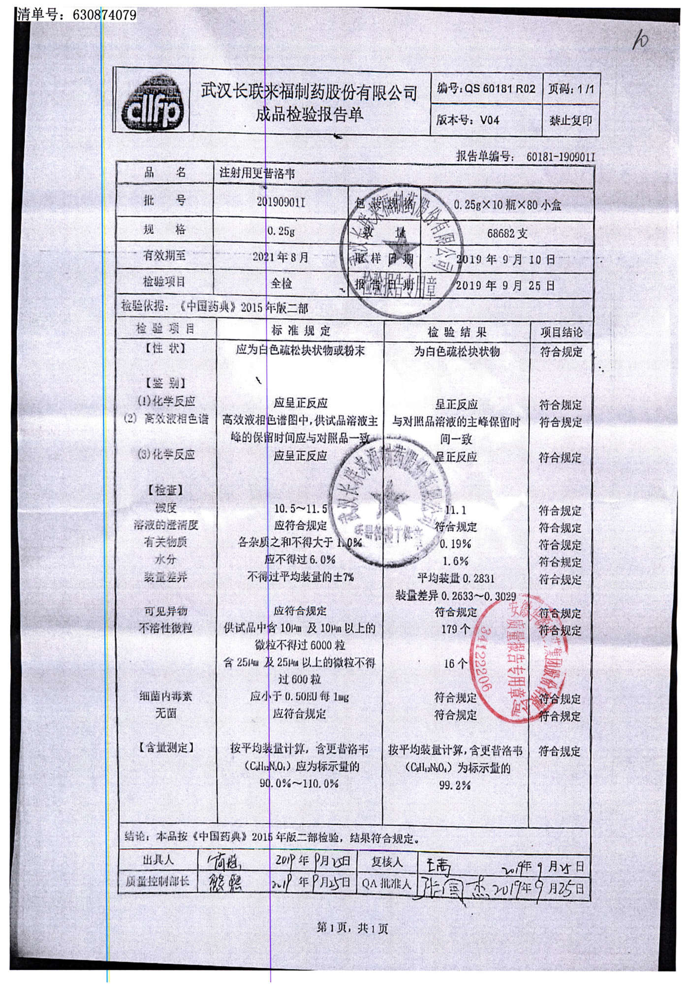 注射用更昔洛韦 | 0.25g | 20190901I | 查看详情 |