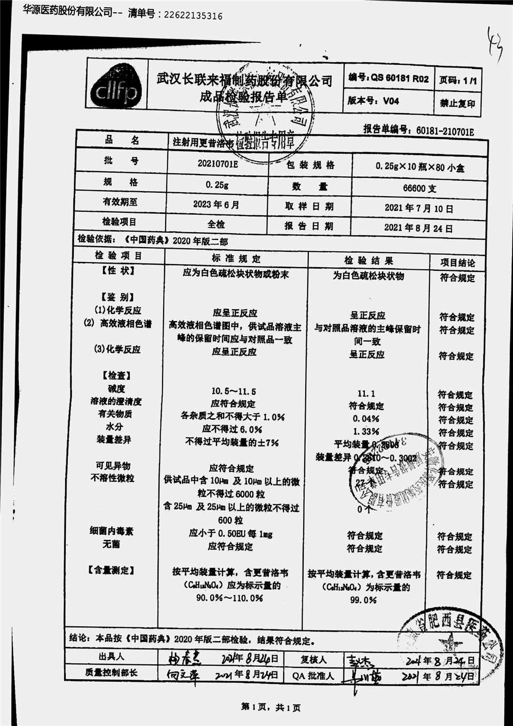 注射用更昔洛韦 | 0.25g | 20210701E | 查看详情 |