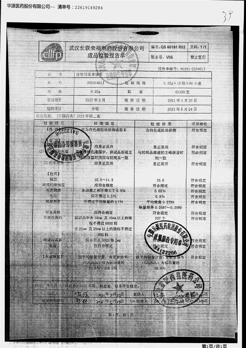 注射用更昔洛韦 | 0.25g | 20210401J | 查看详情 |