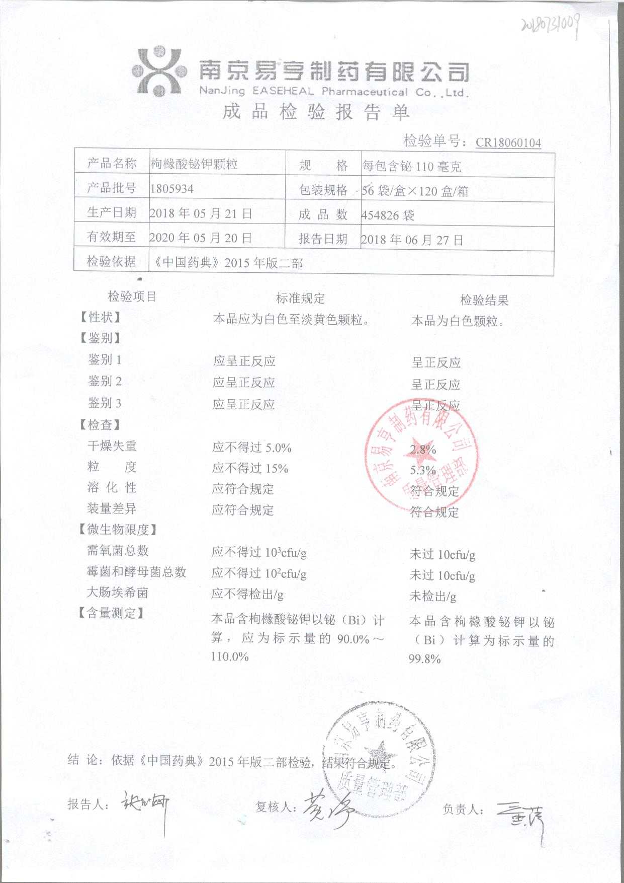 药检报告