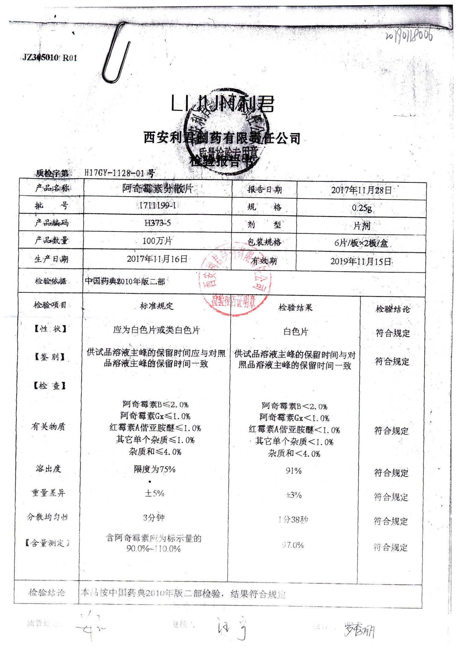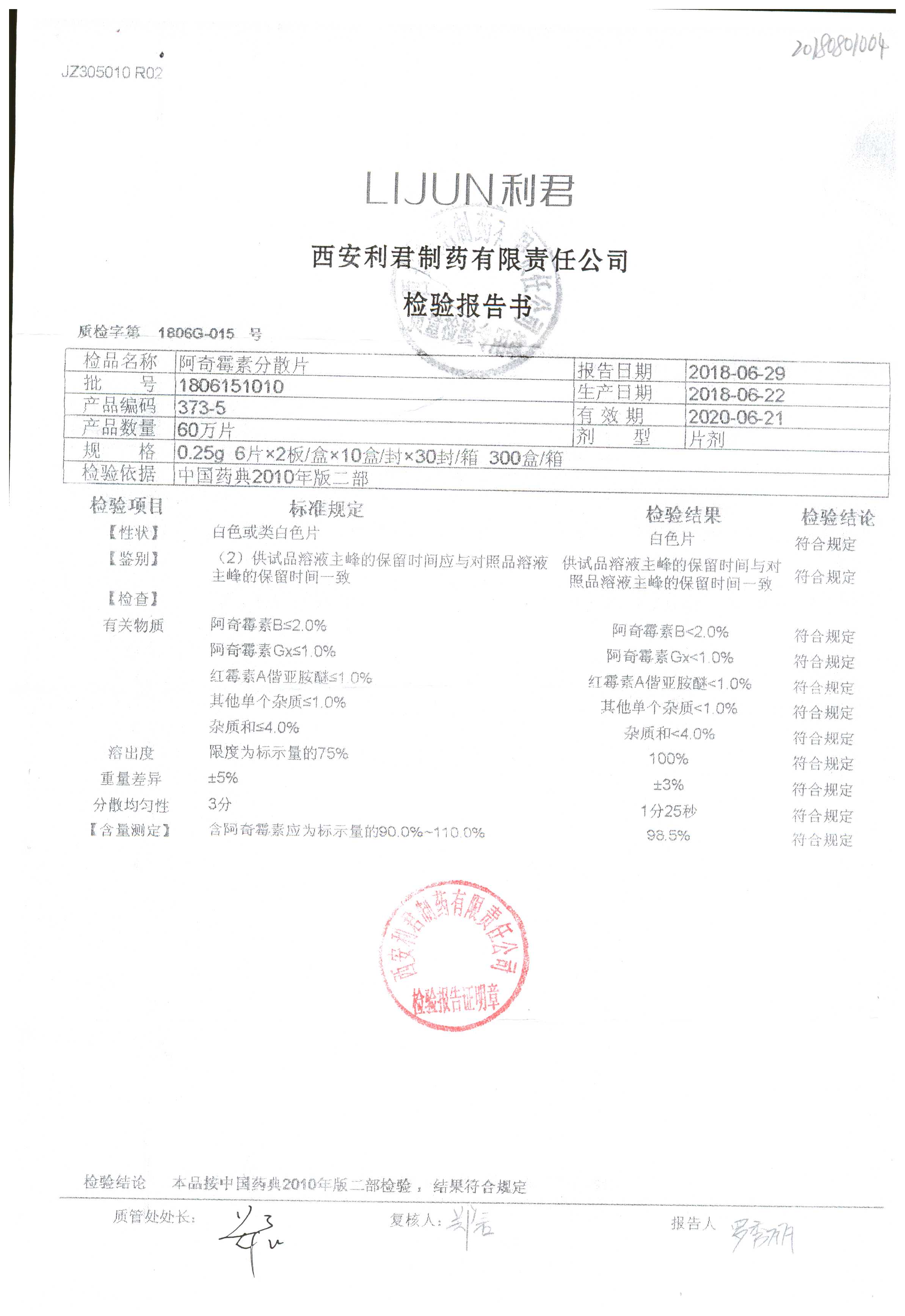 阿奇霉素分散片 | 0.25g*12片 | 1806151010 | 查看详情 |