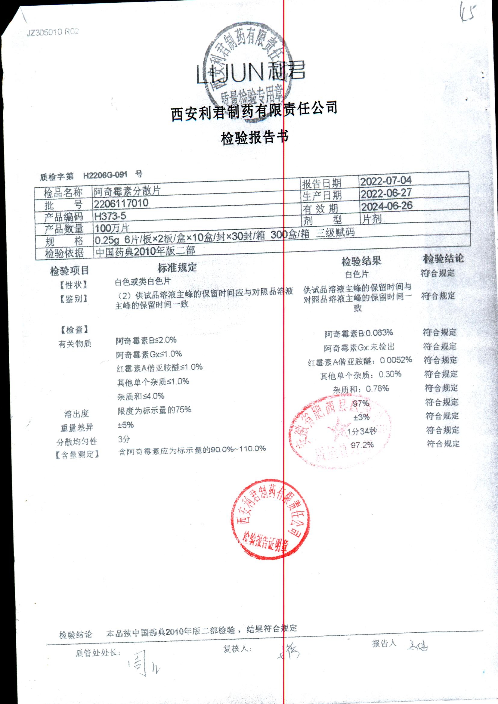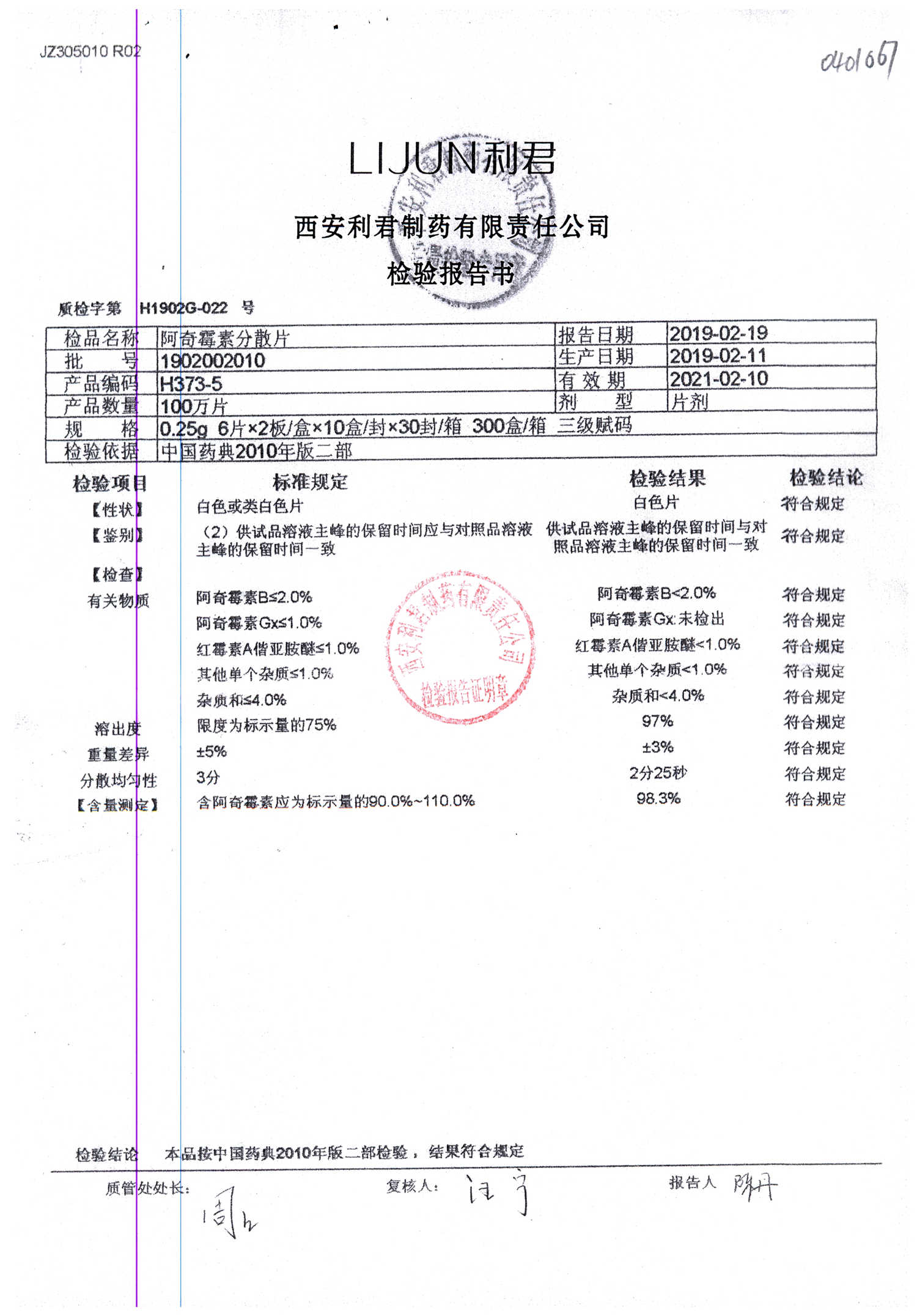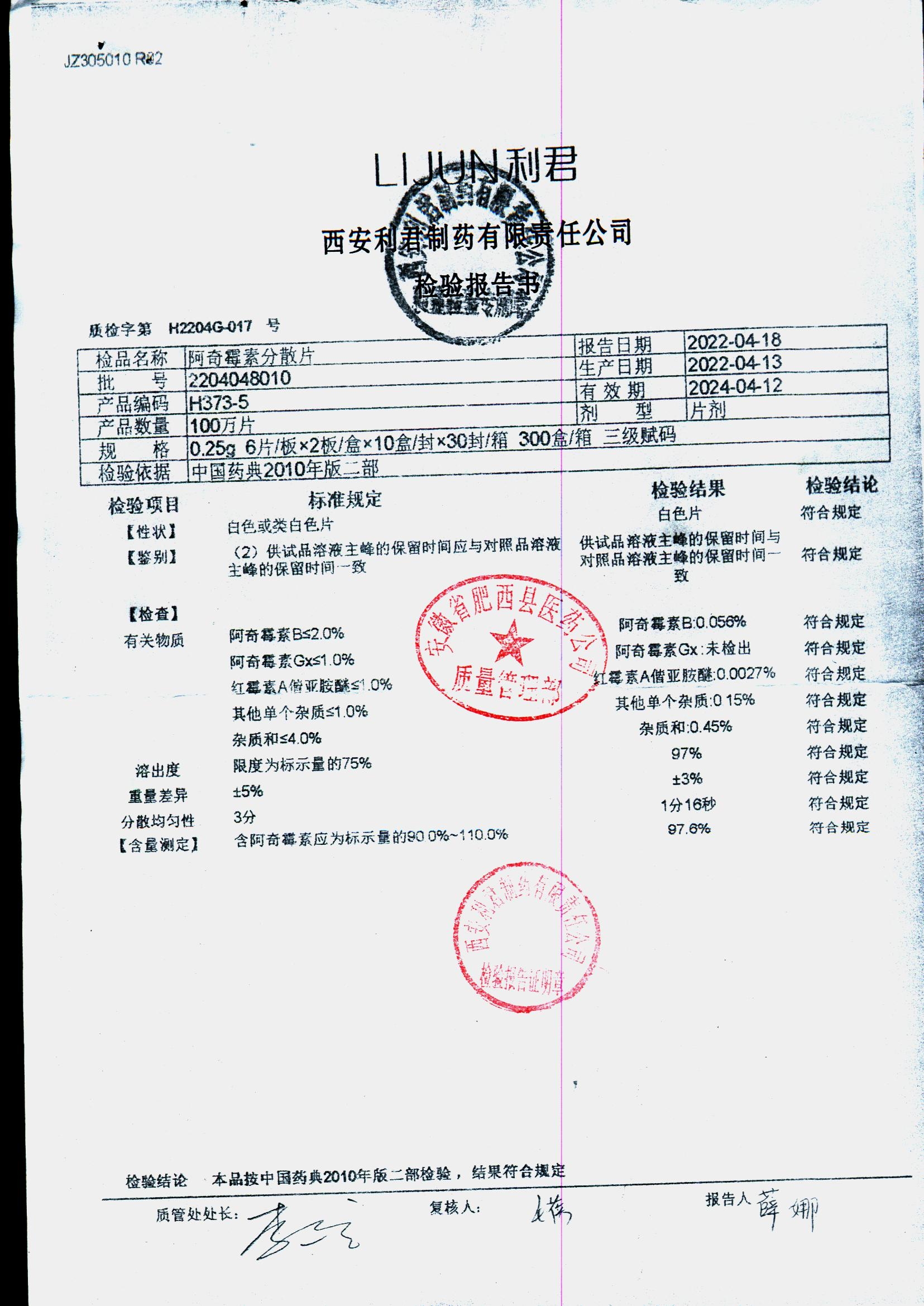 阿奇霉素分散片 | 0.25g*12片 | 2204048010 | 查看详情 |