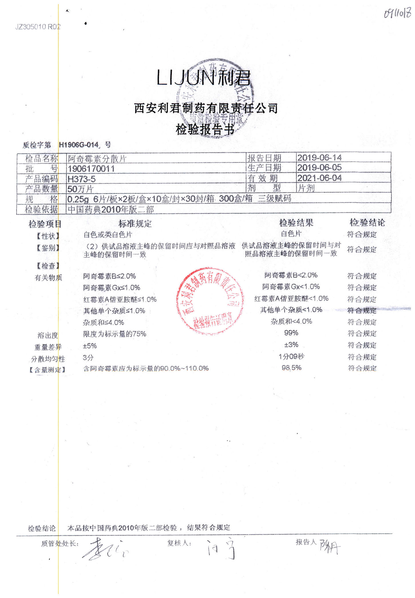 阿奇霉素分散片 | 0.25g*12片 | 2011019010 | 查看详情 |