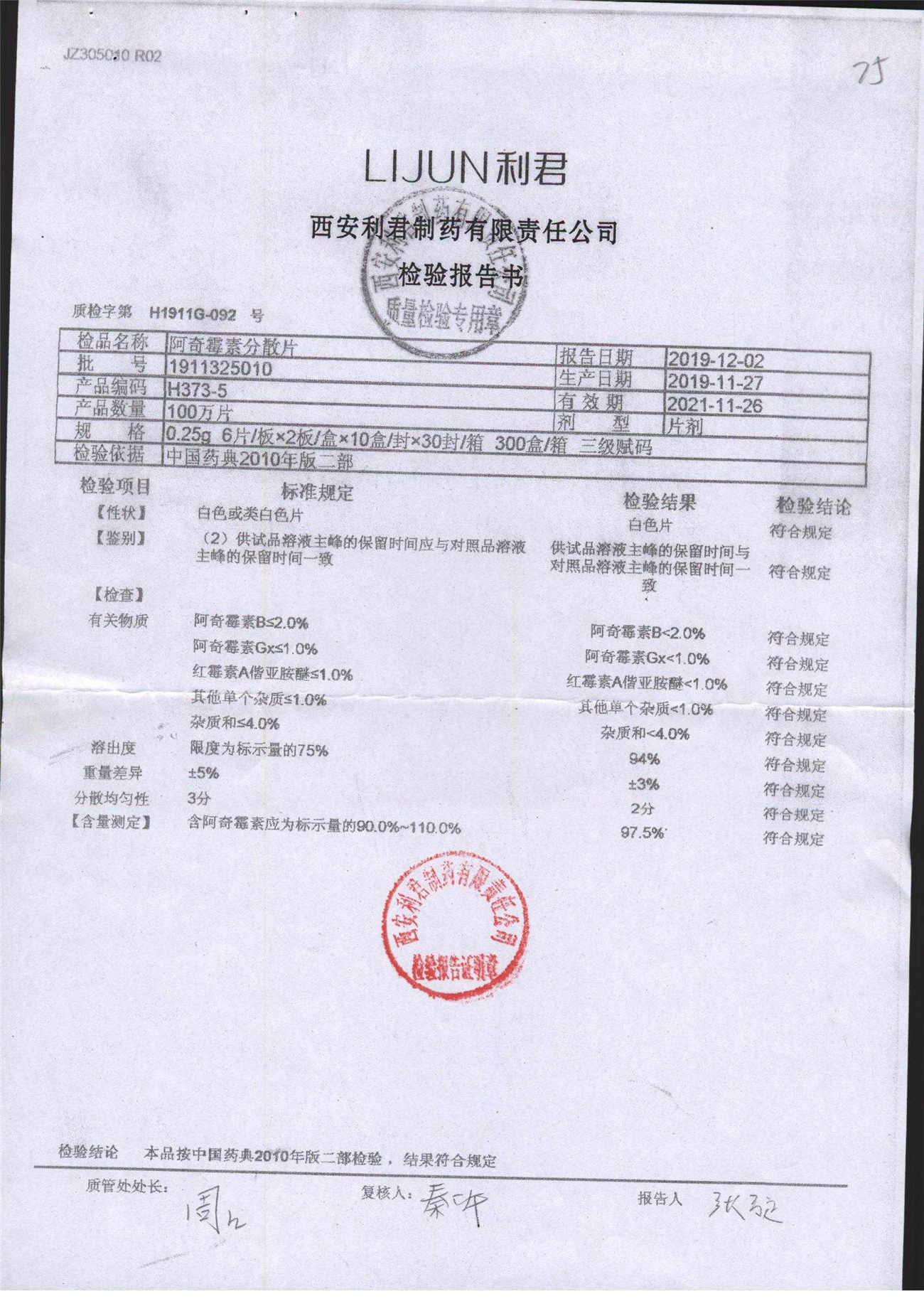 阿奇霉素分散片 | 0.25g*12片 | 1906170011 | 查看详情 |