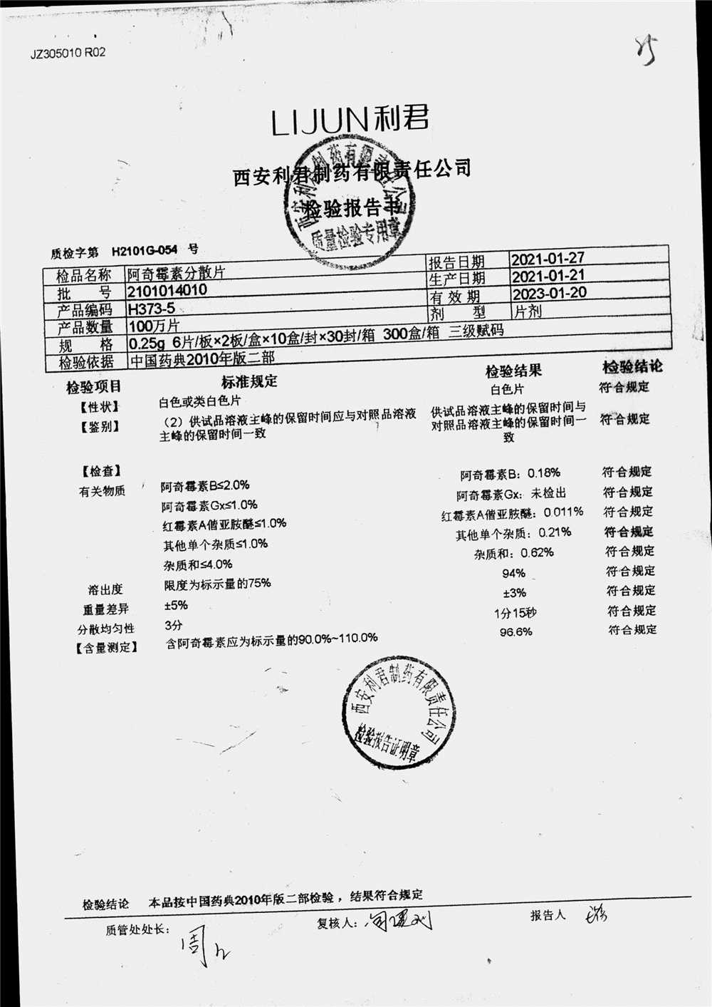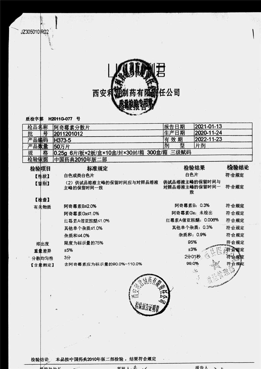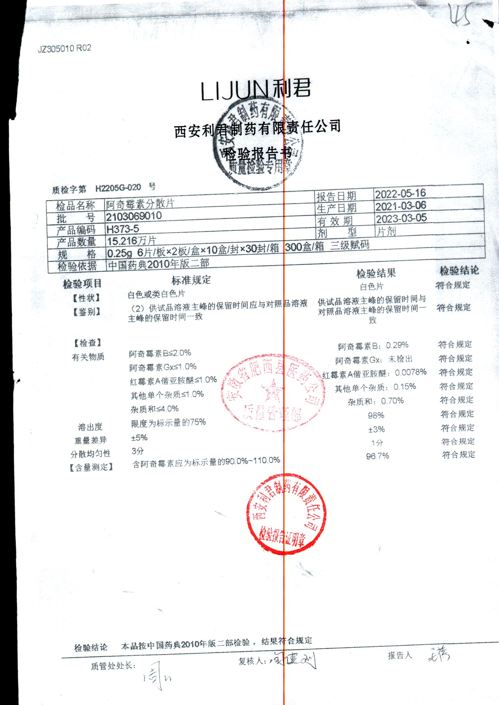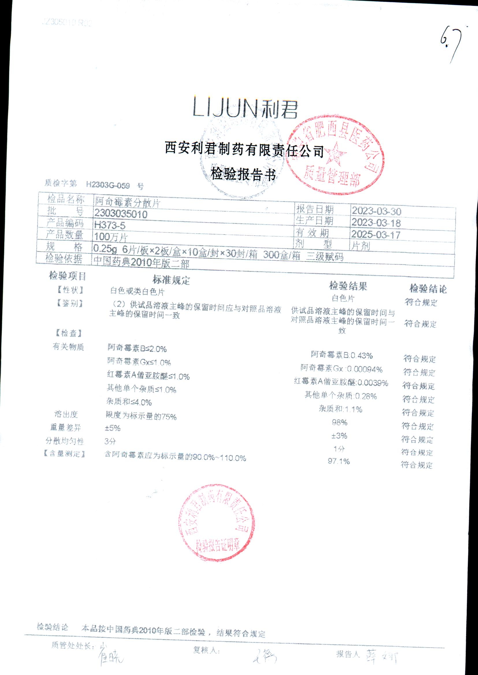 阿奇霉素分散片 | 0.25g*12片 | 2303035010 | 查看详情 |