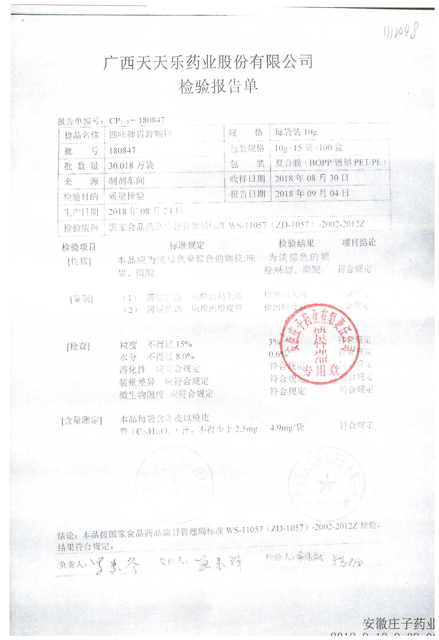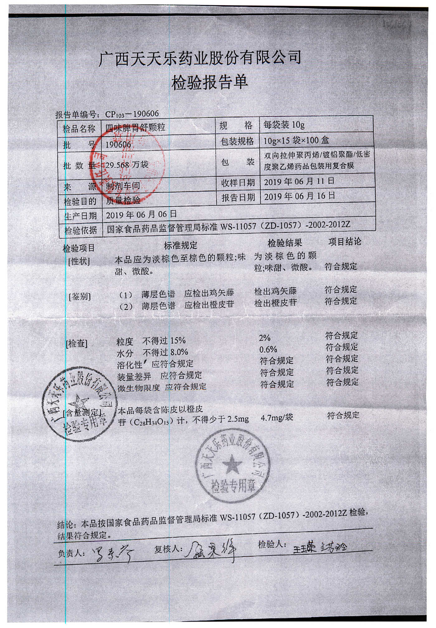 四味脾胃舒颗粒 | 10g*15袋 | 190606 | 查看详情 |