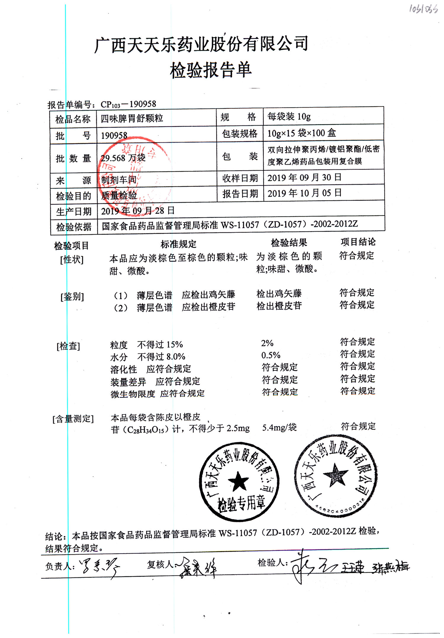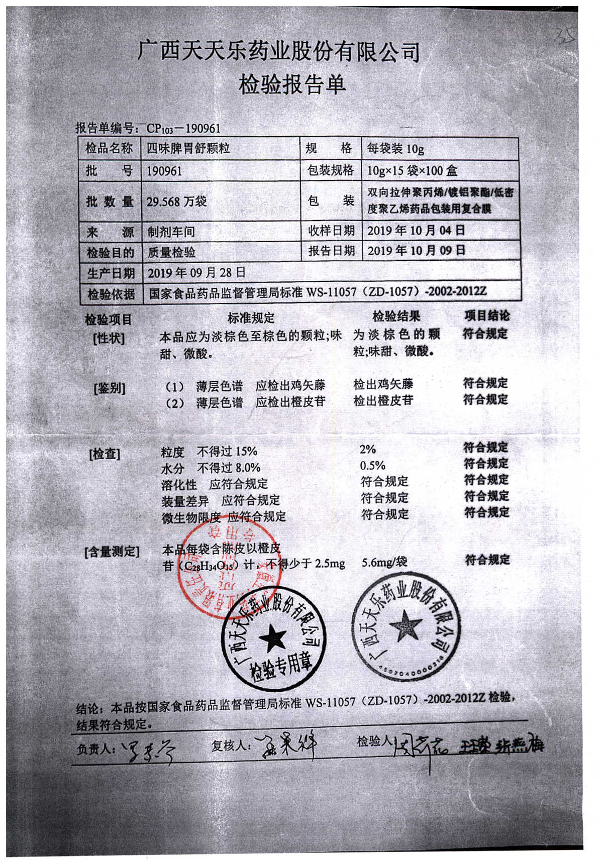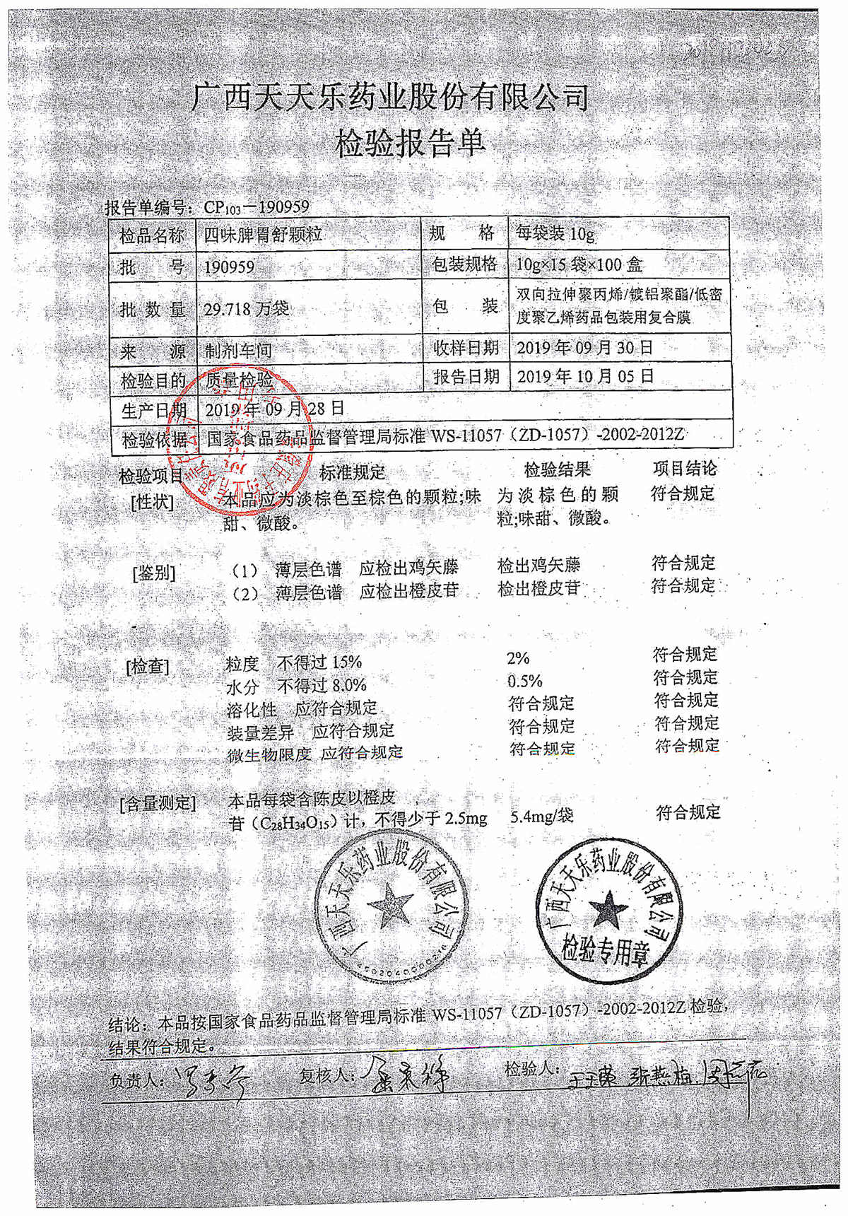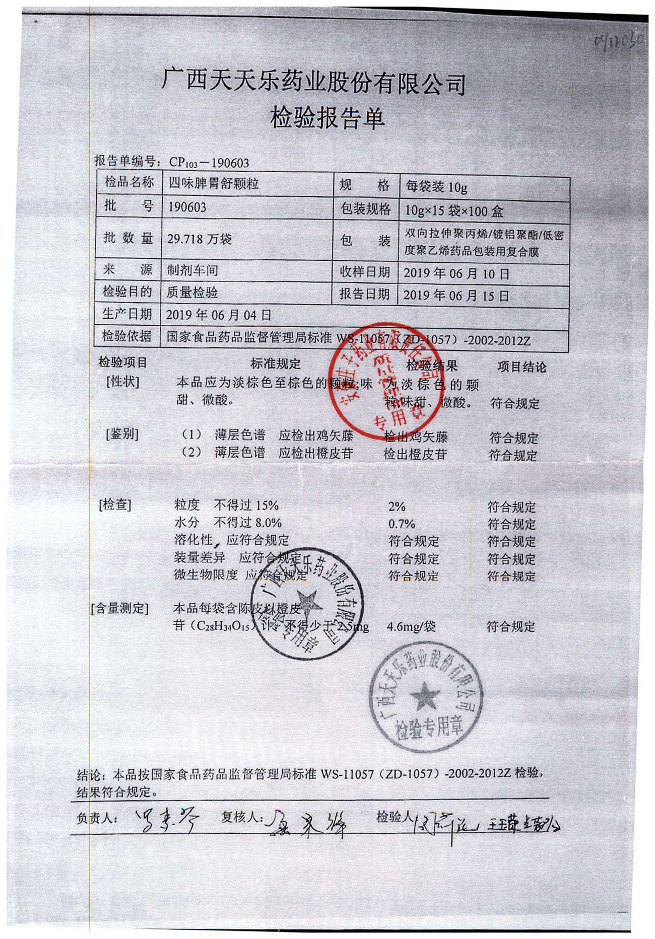 四味脾胃舒颗粒 | 10g*15袋 | 190604 | 查看详情 |