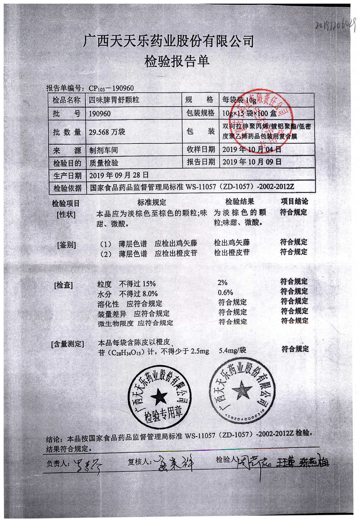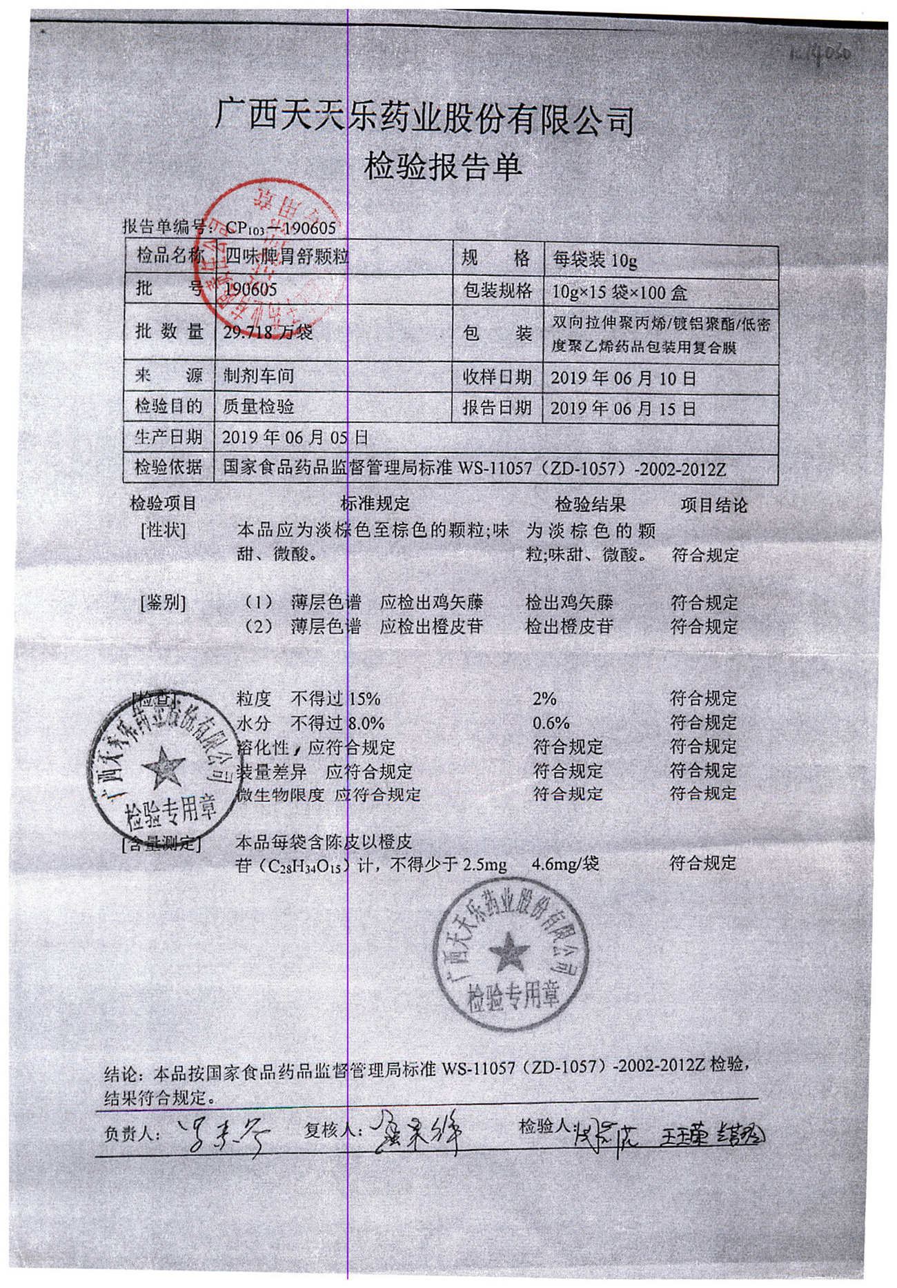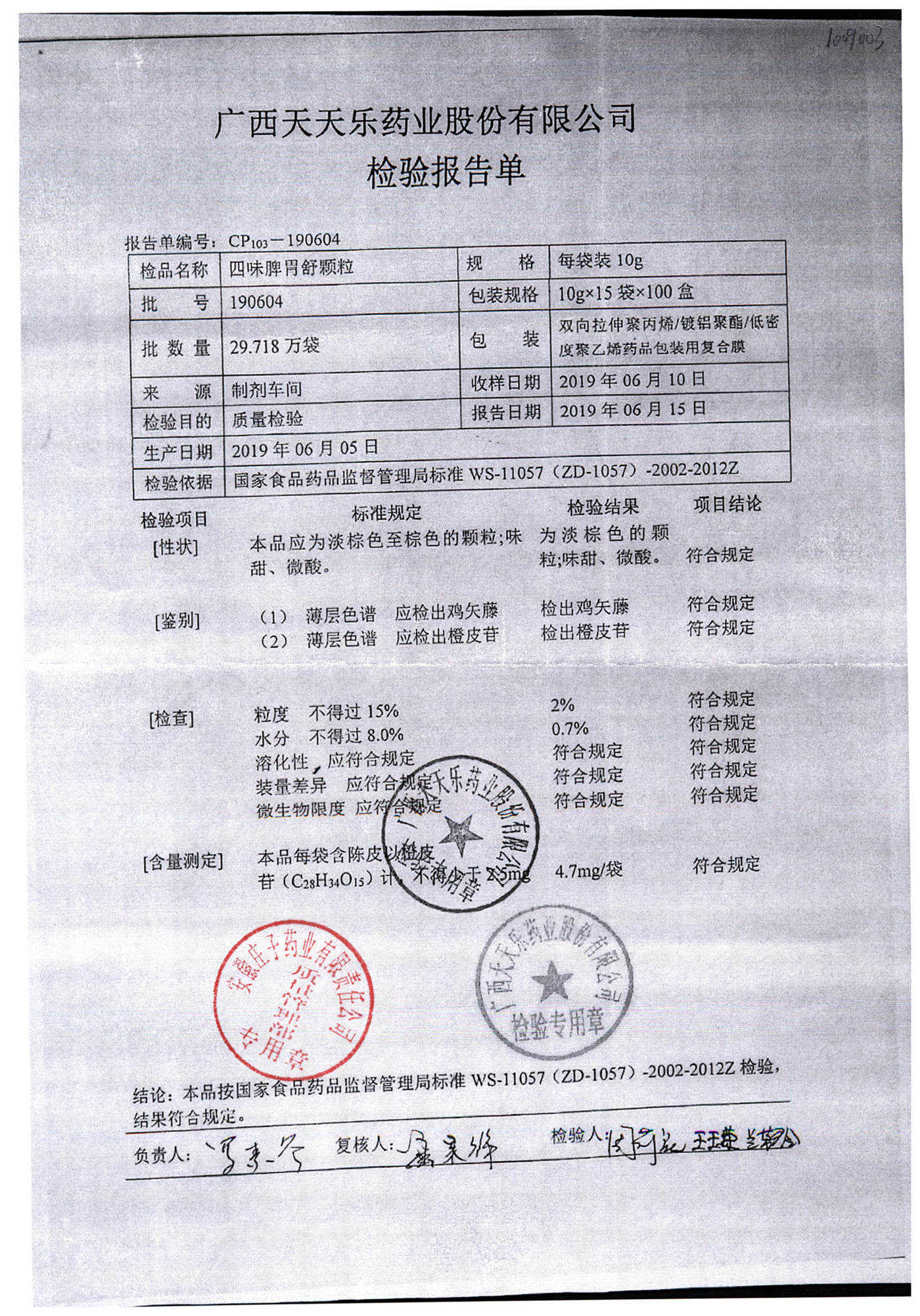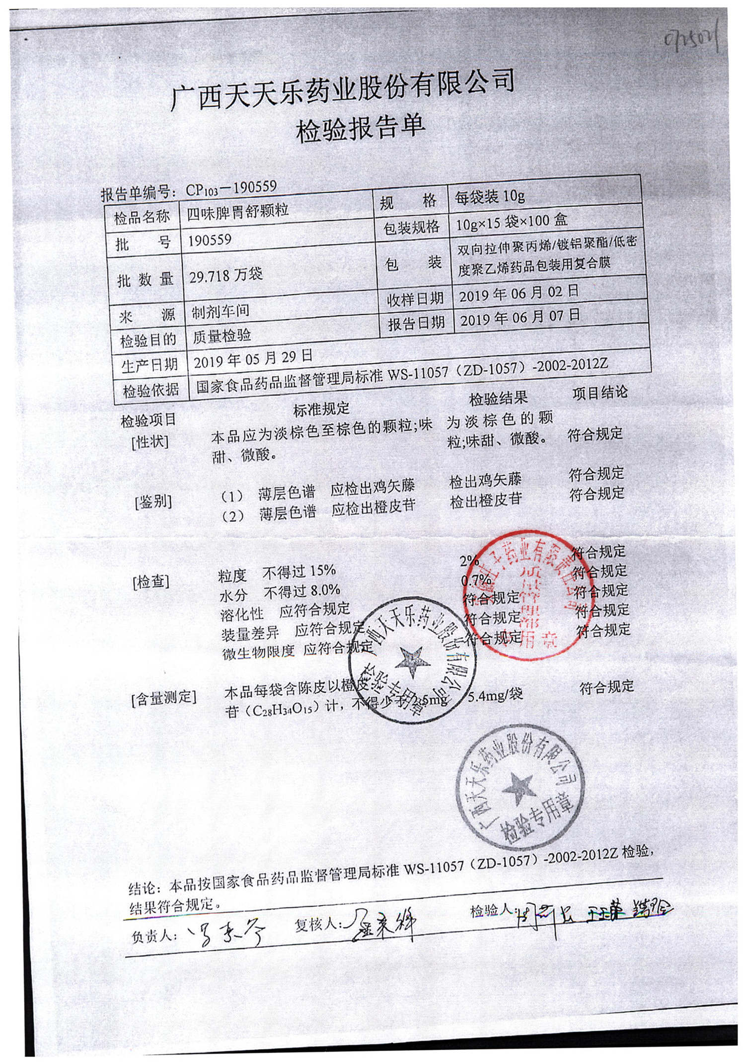 四味脾胃舒颗粒 | 10g*15袋 | 190604 | 查看详情 |