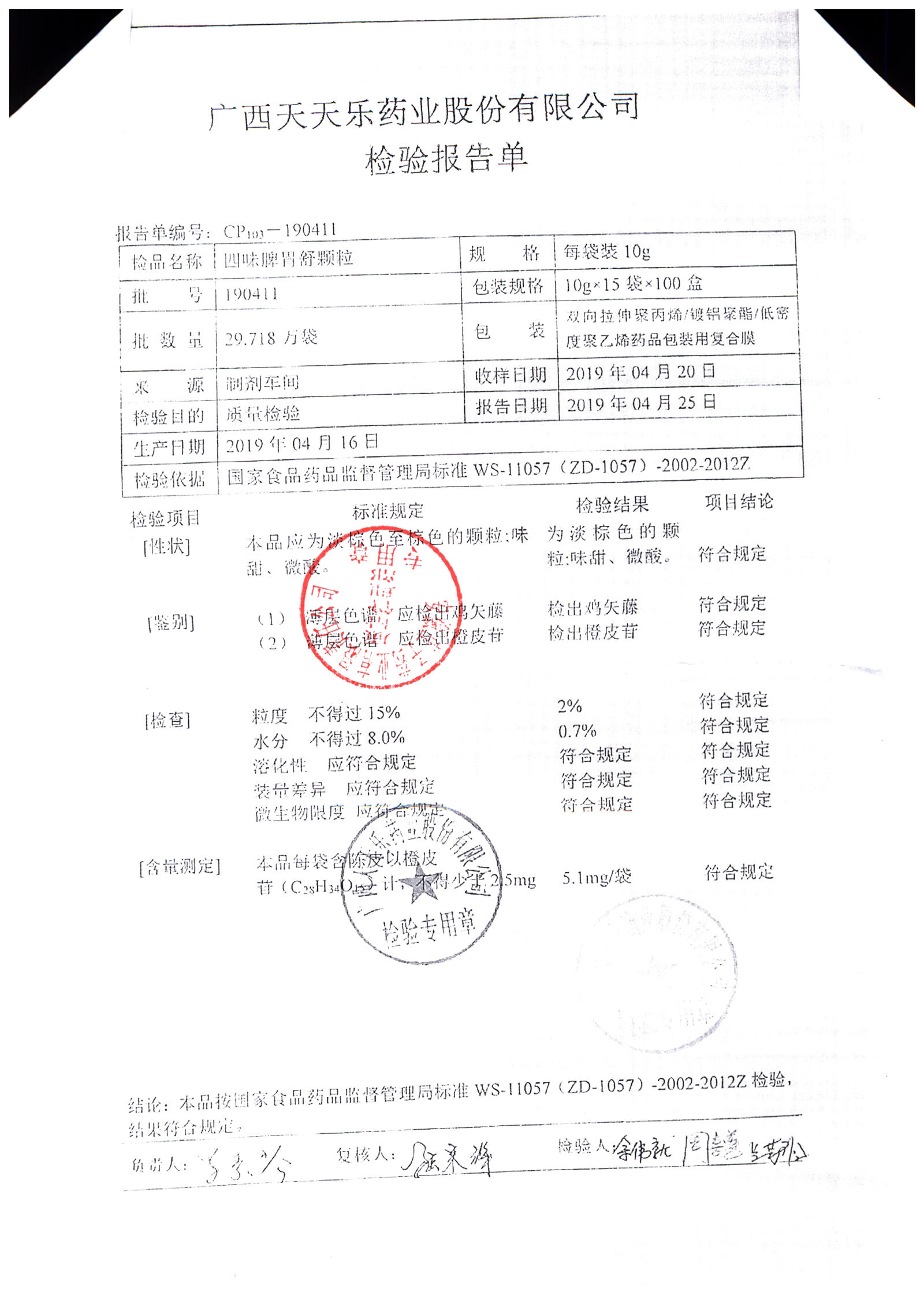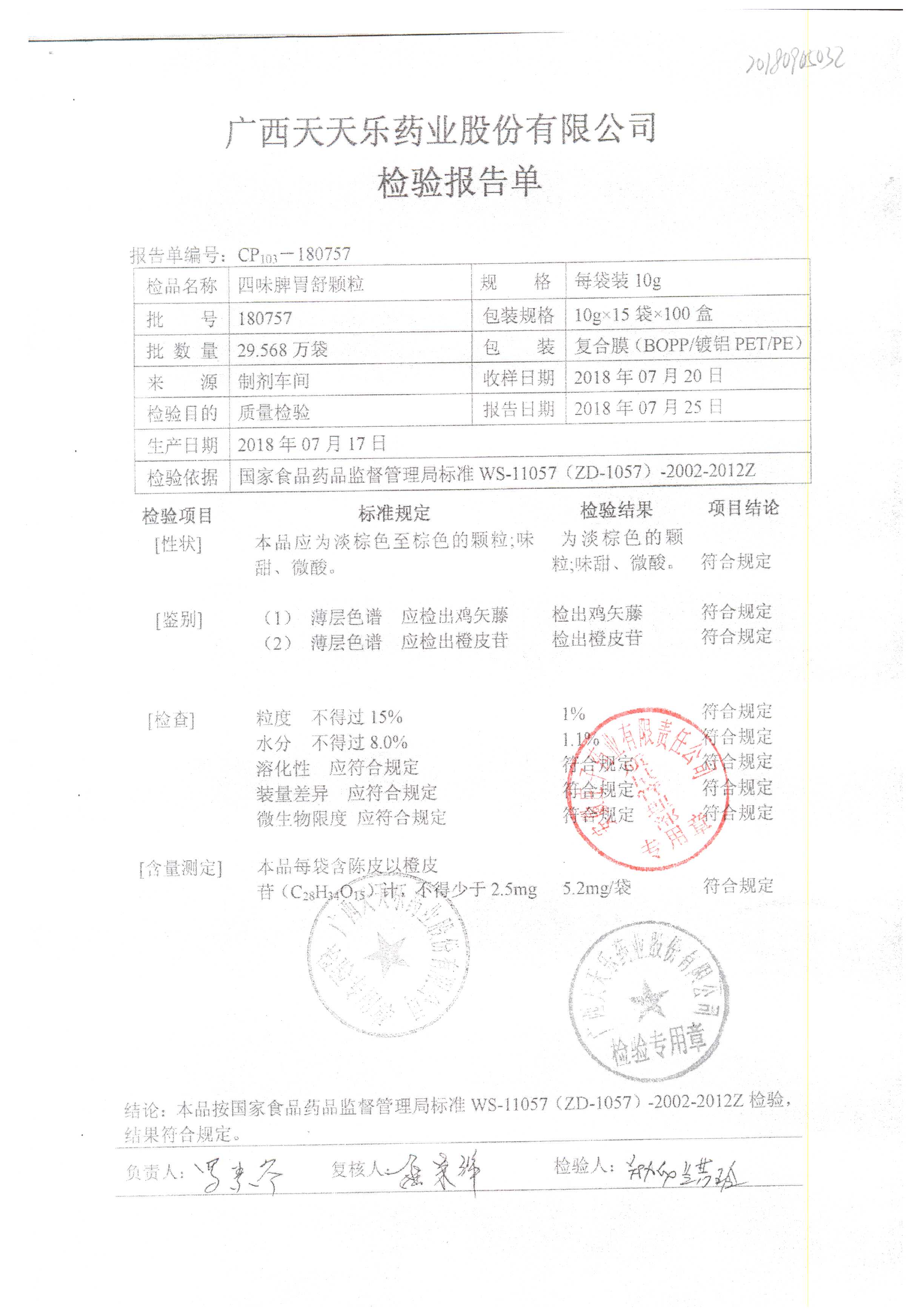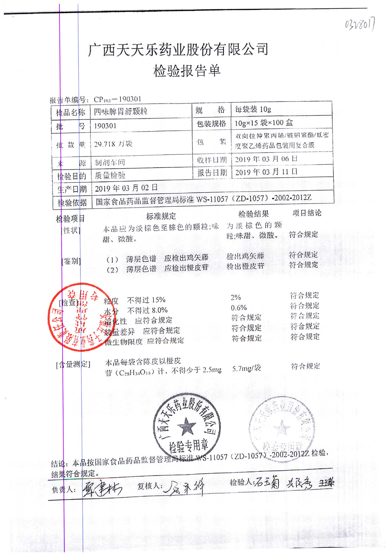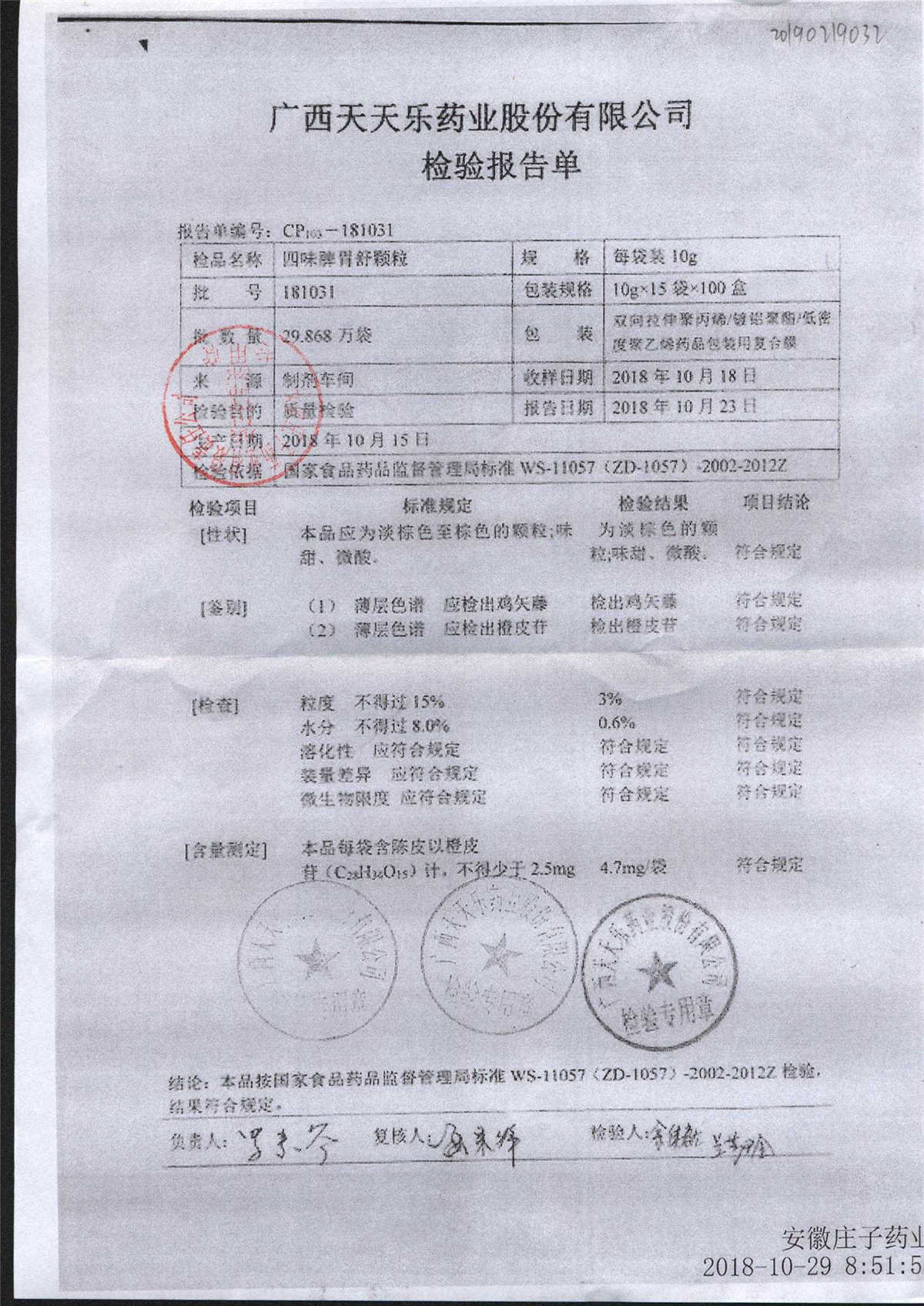 四味脾胃舒颗粒 | 10g*15袋 | 190604 | 查看详情 |