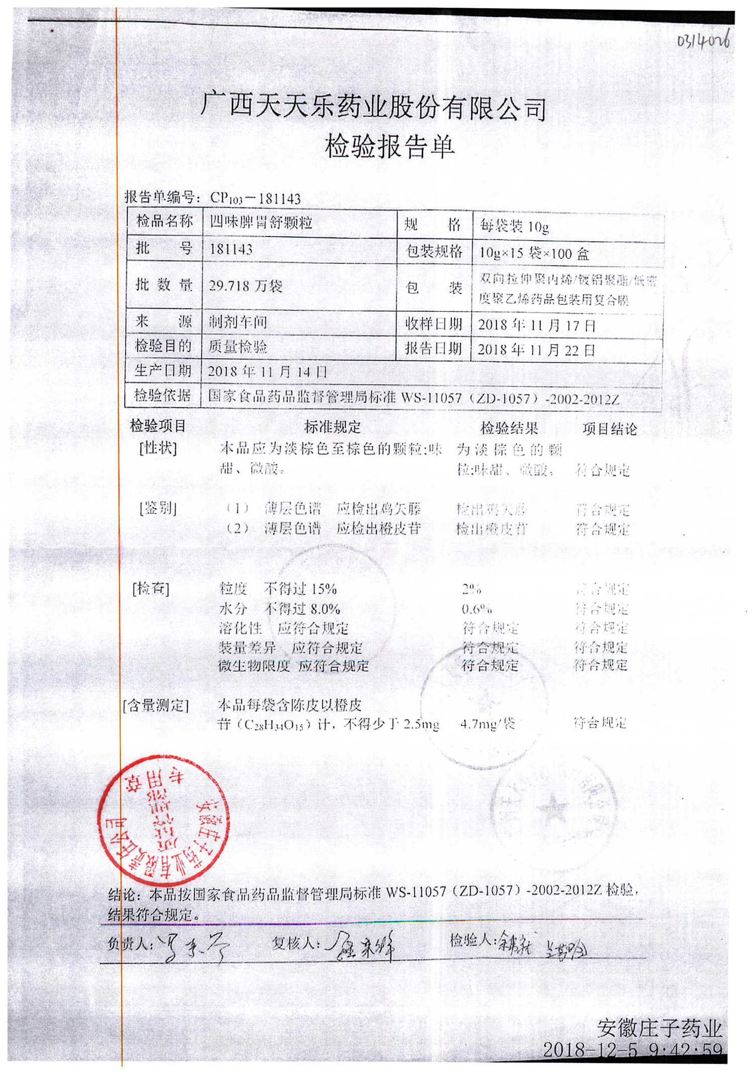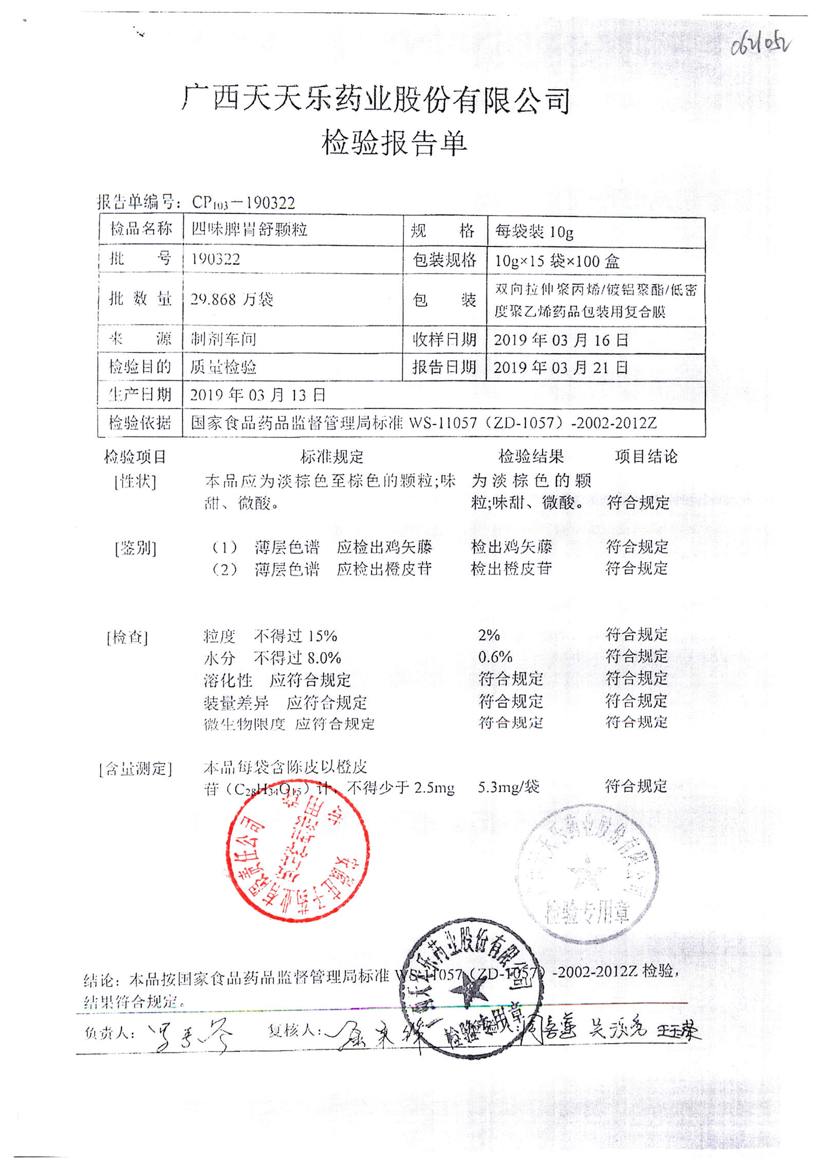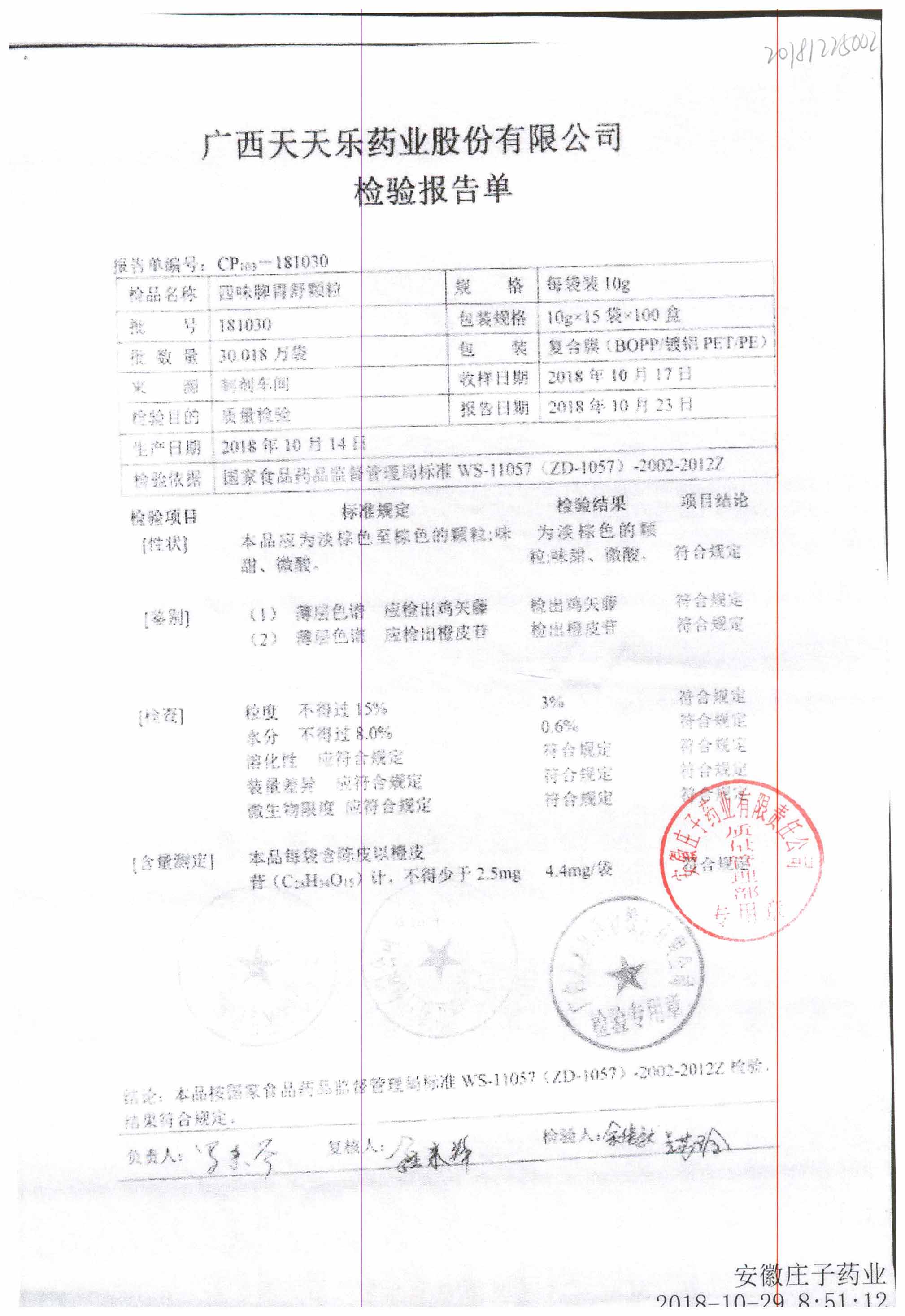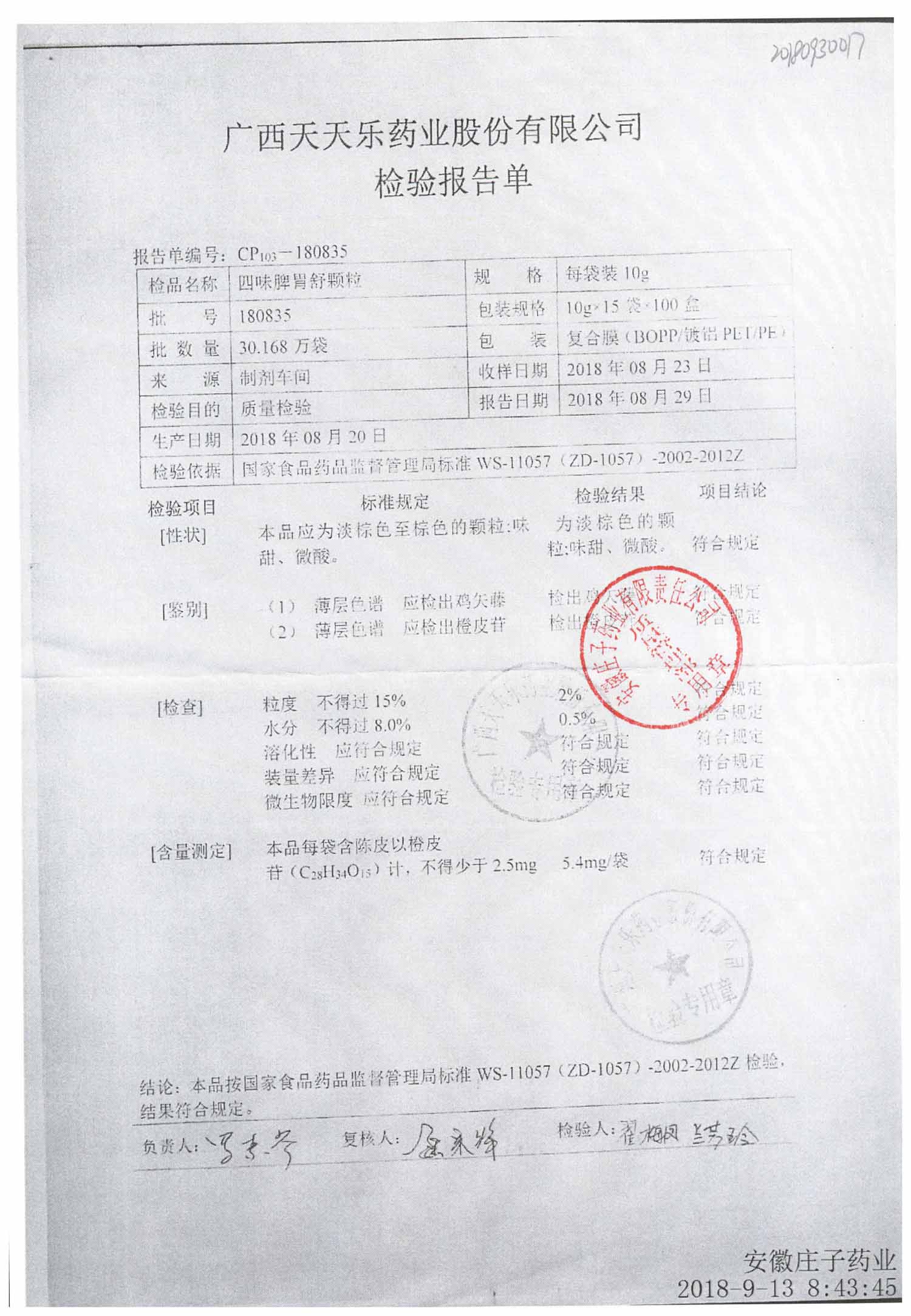 四味脾胃舒颗粒 | 10g*15袋 | 190604 | 查看详情 |