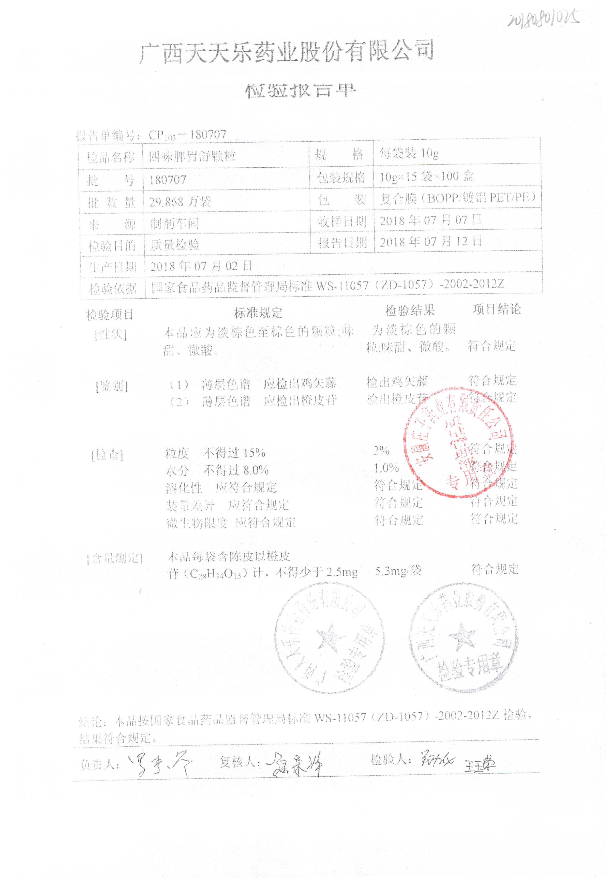 四味脾胃舒颗粒 | 10g*15袋 | 180707 | 查看详情 |