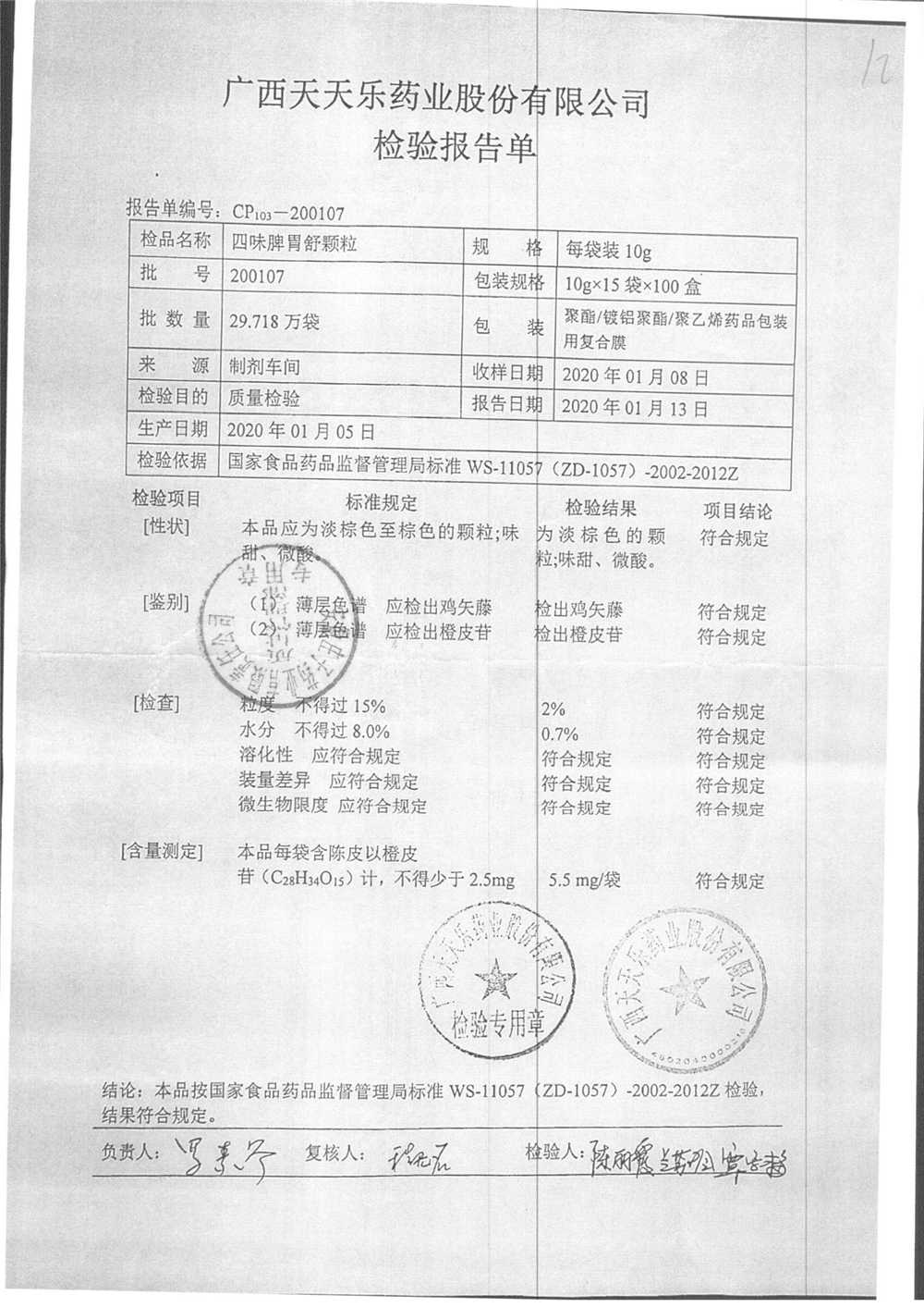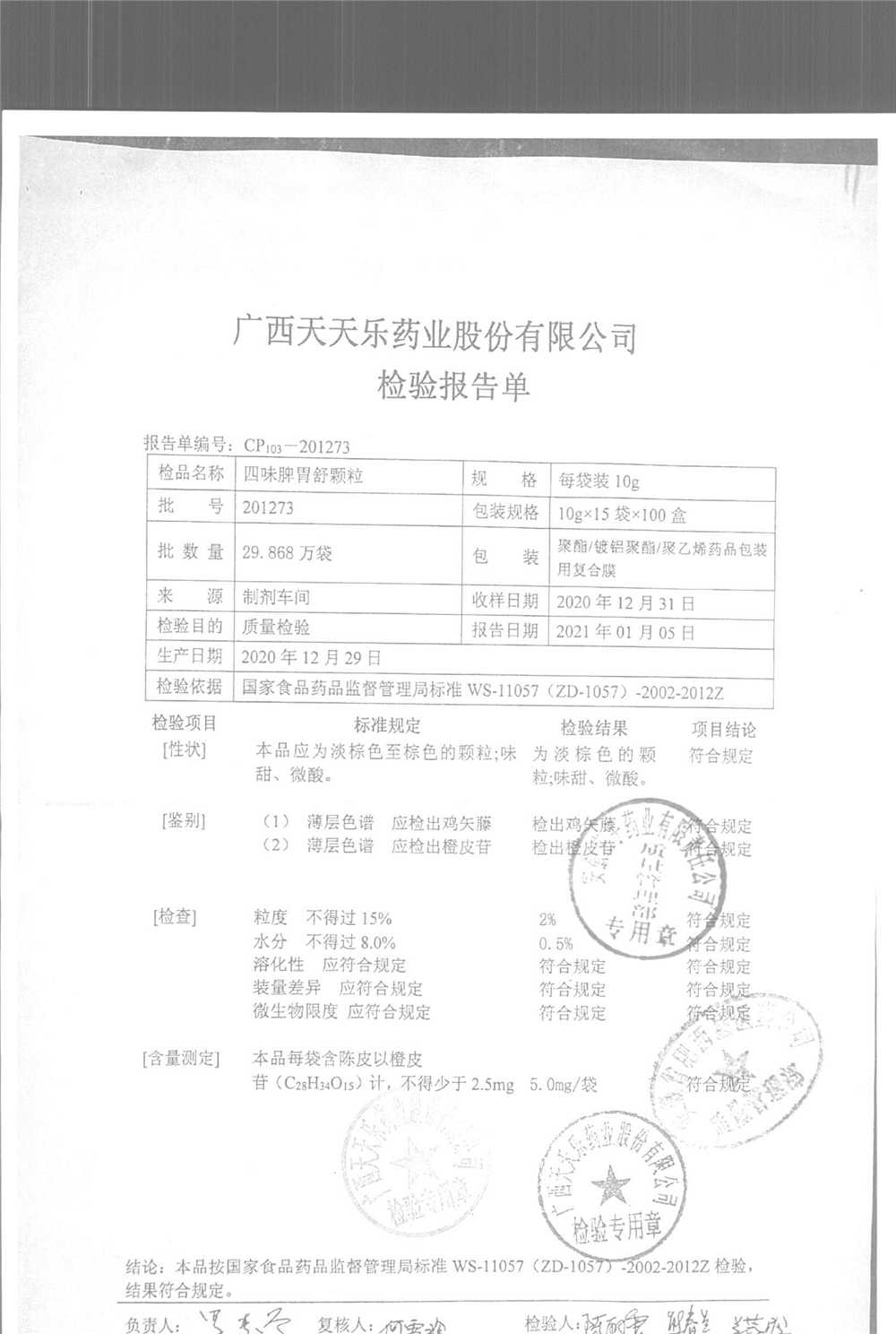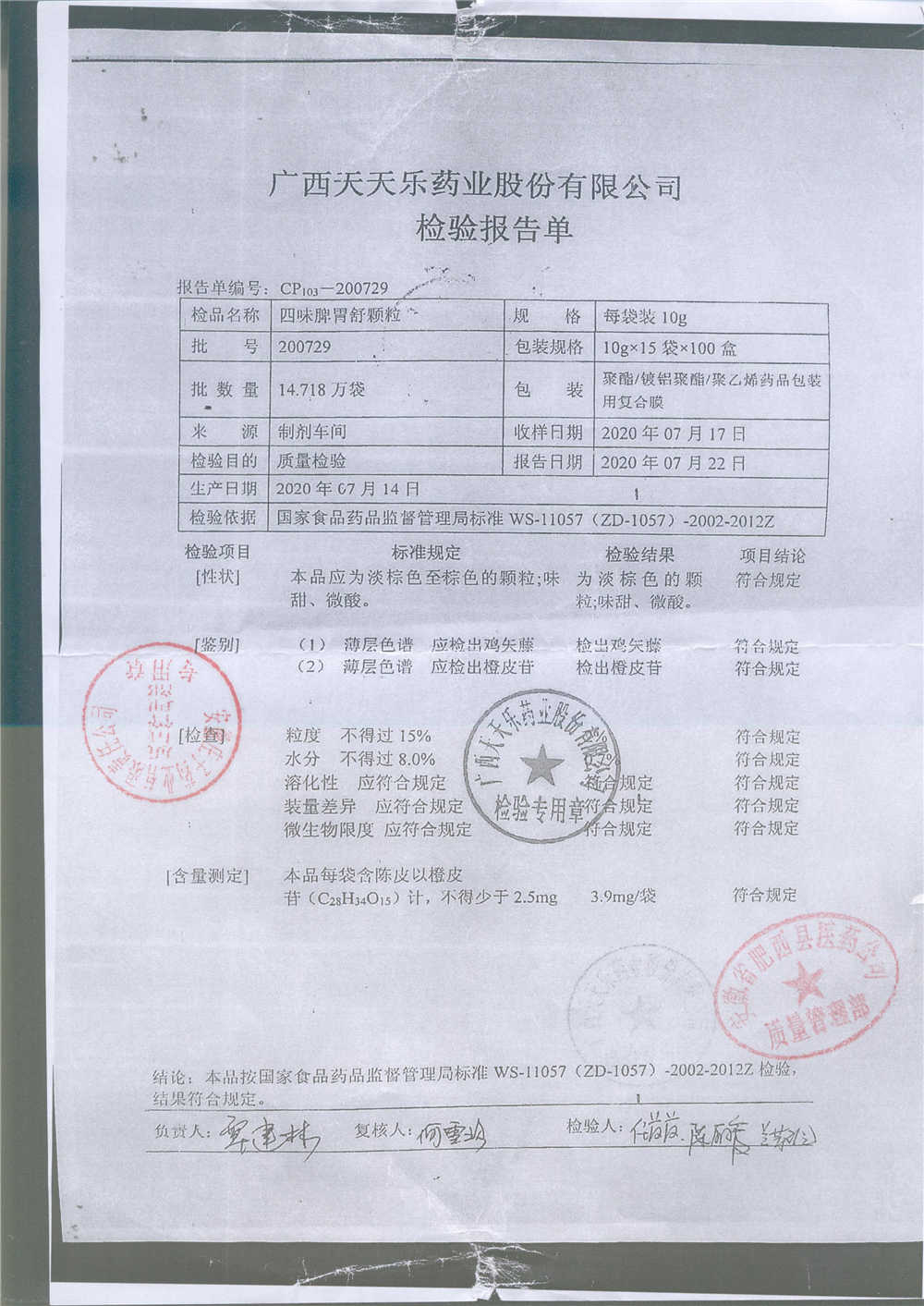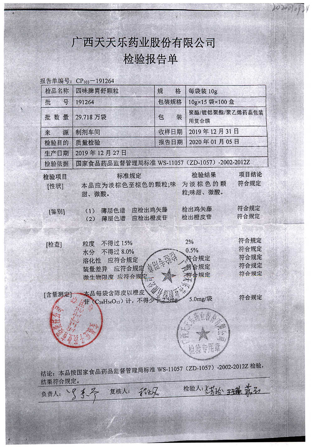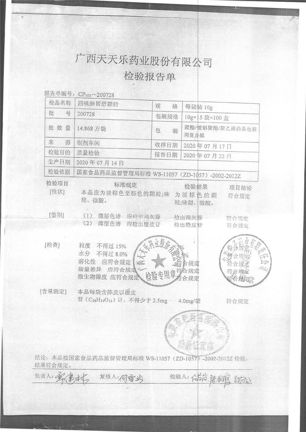 四味脾胃舒颗粒 | 10g*15袋 | 200728 | 查看详情 |