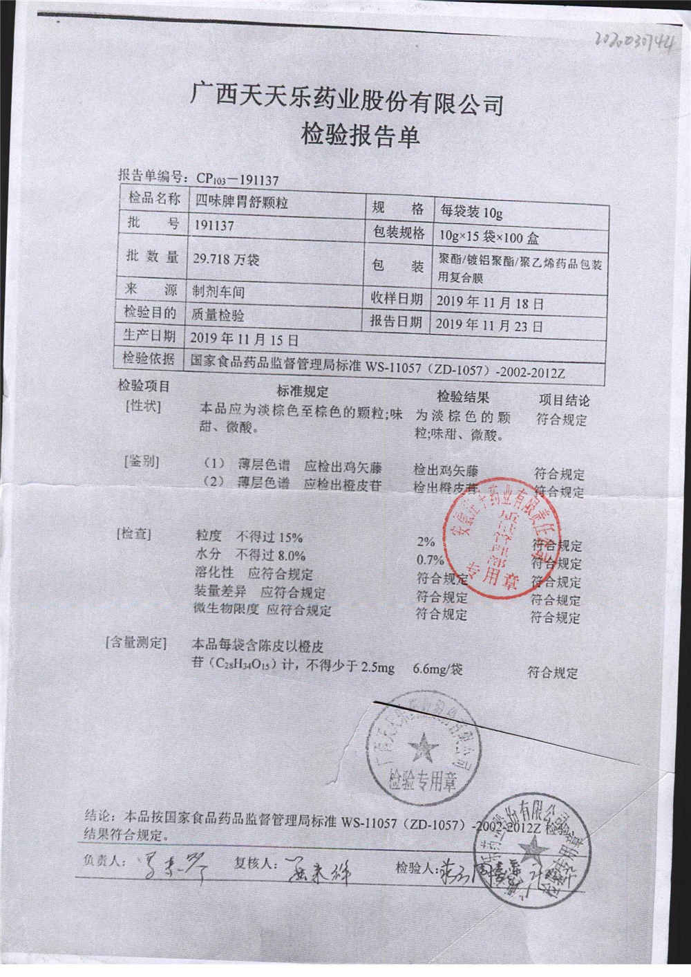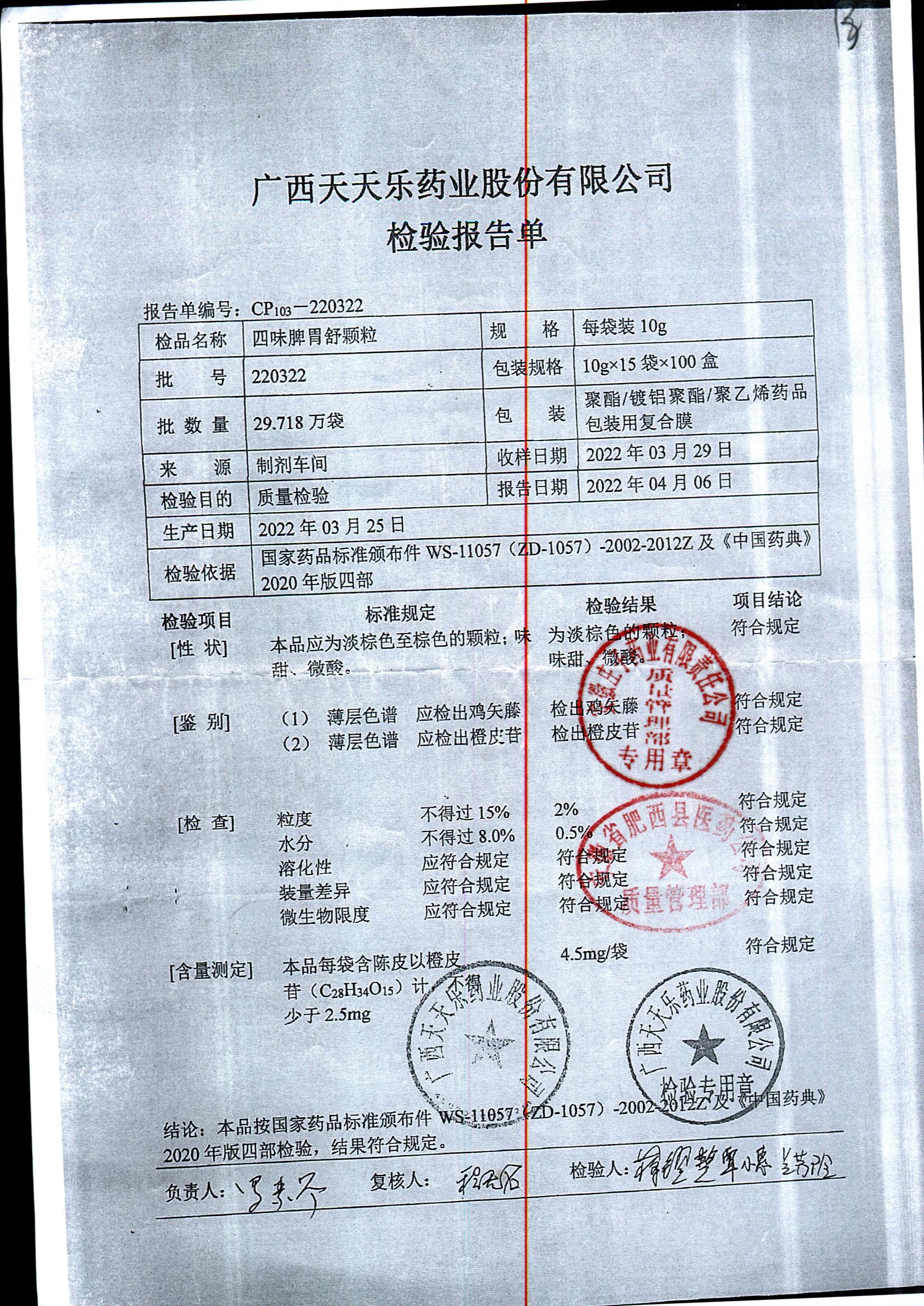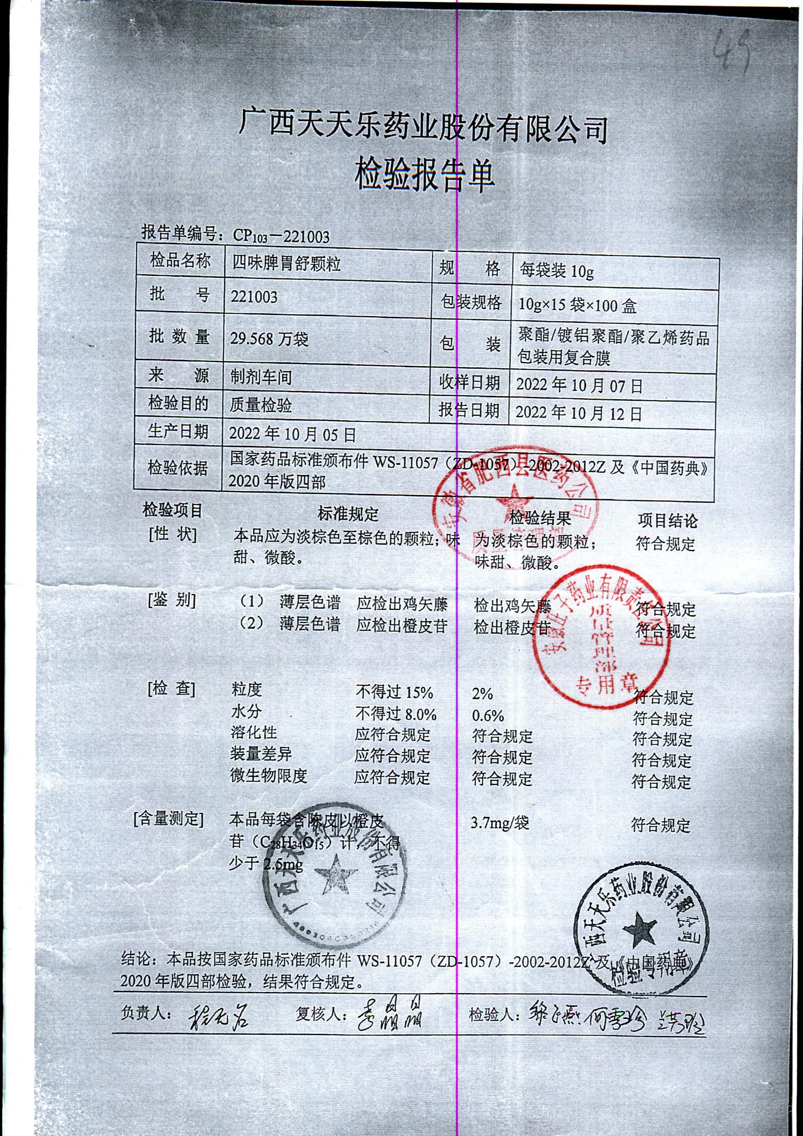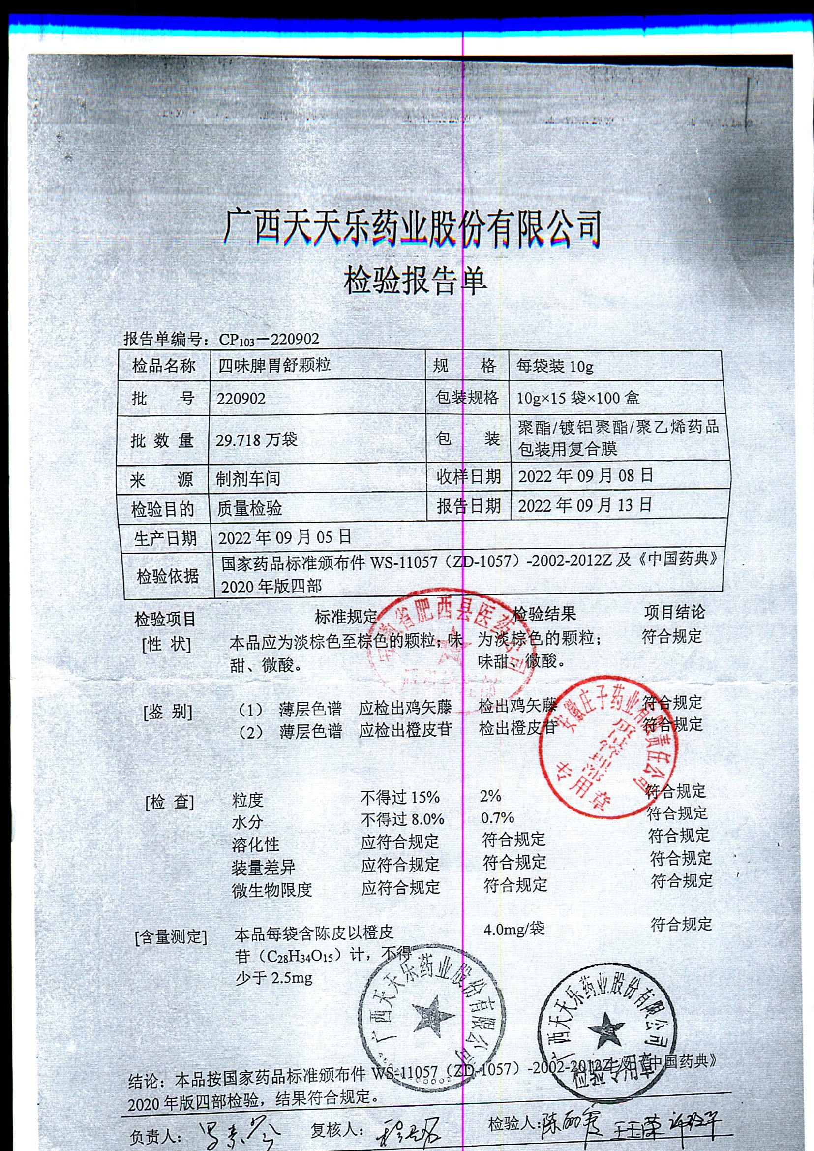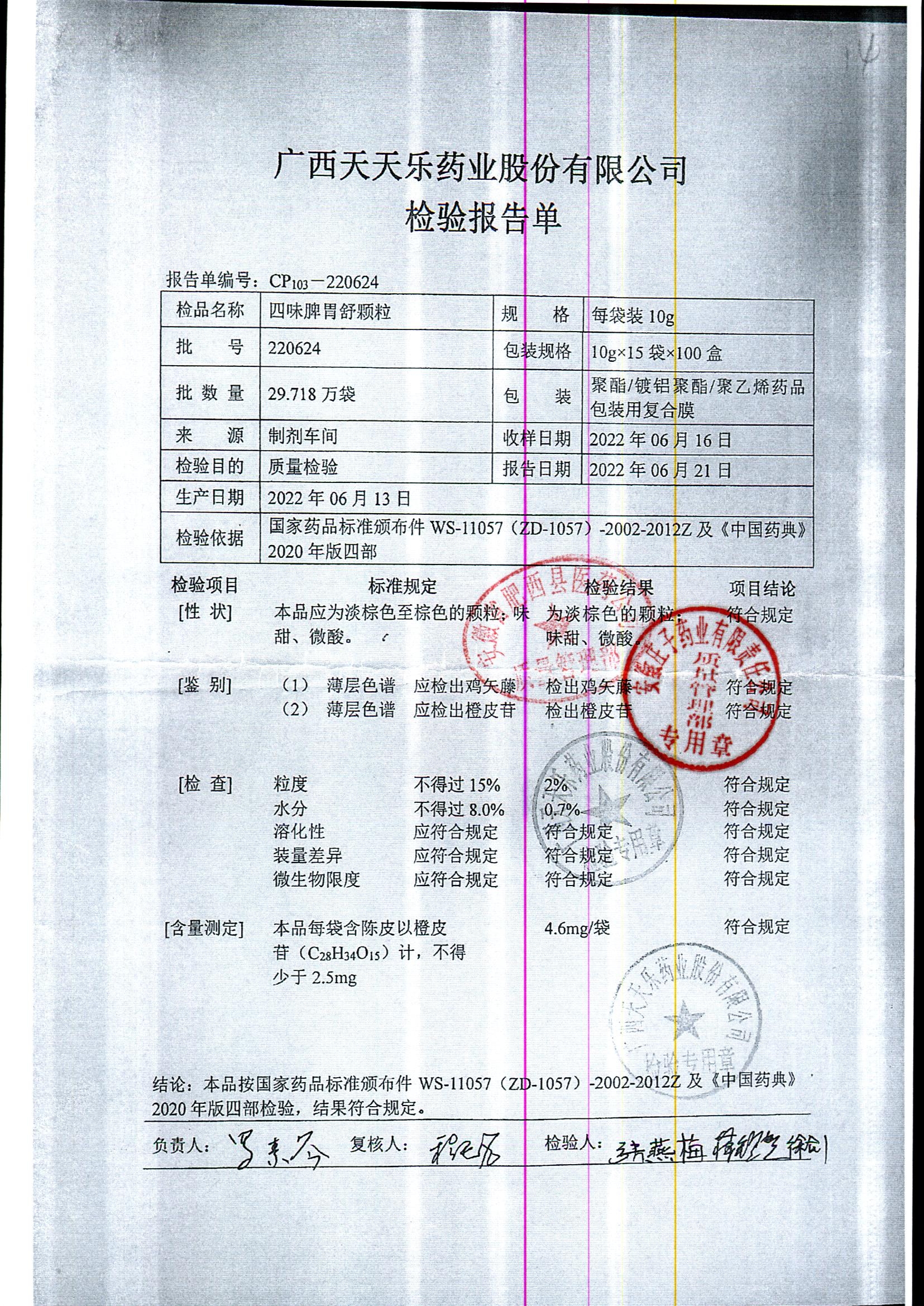 四味脾胃舒颗粒 | 10g*15袋 | 220322 | 查看详情 |