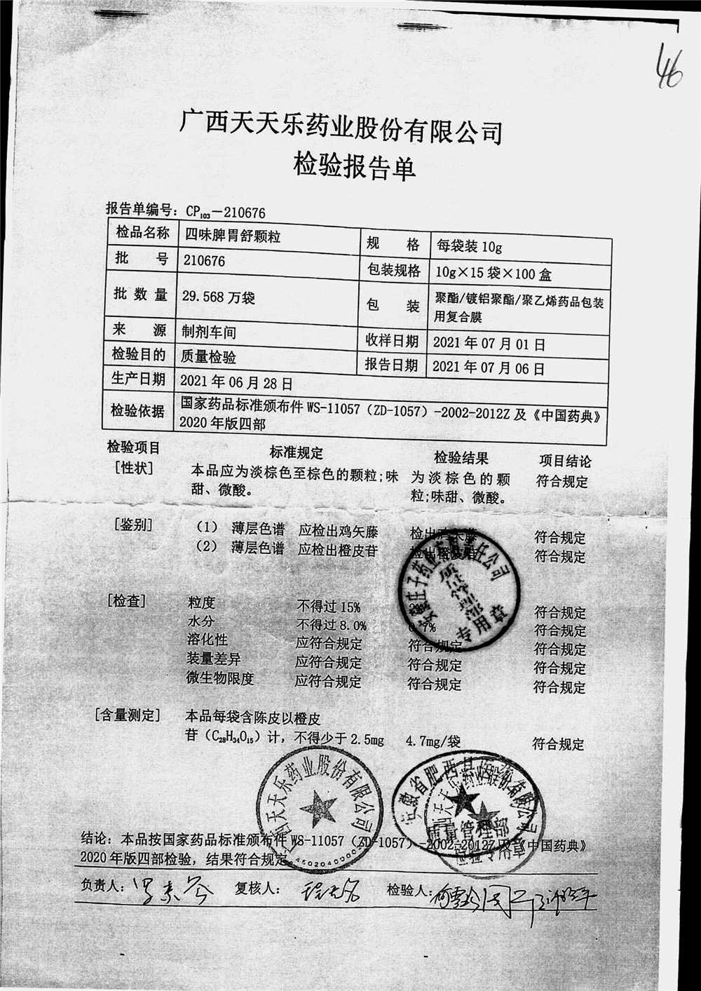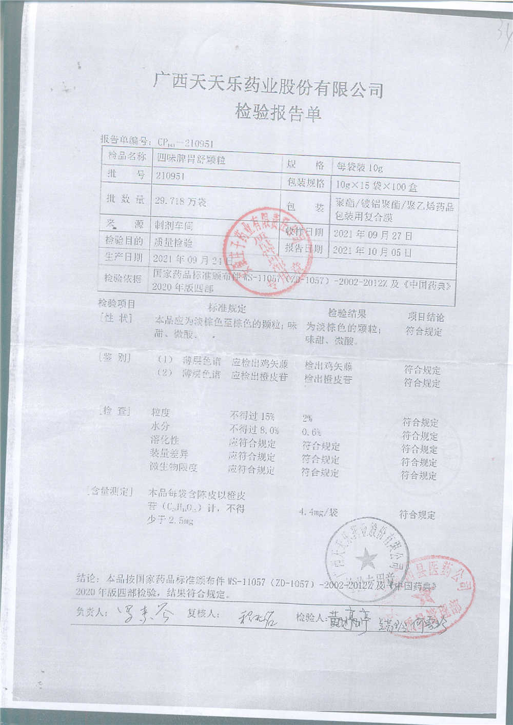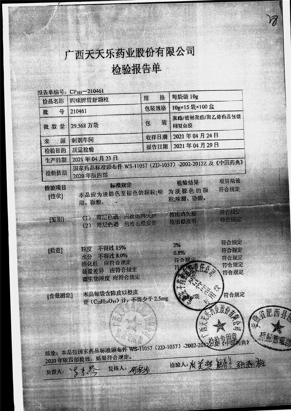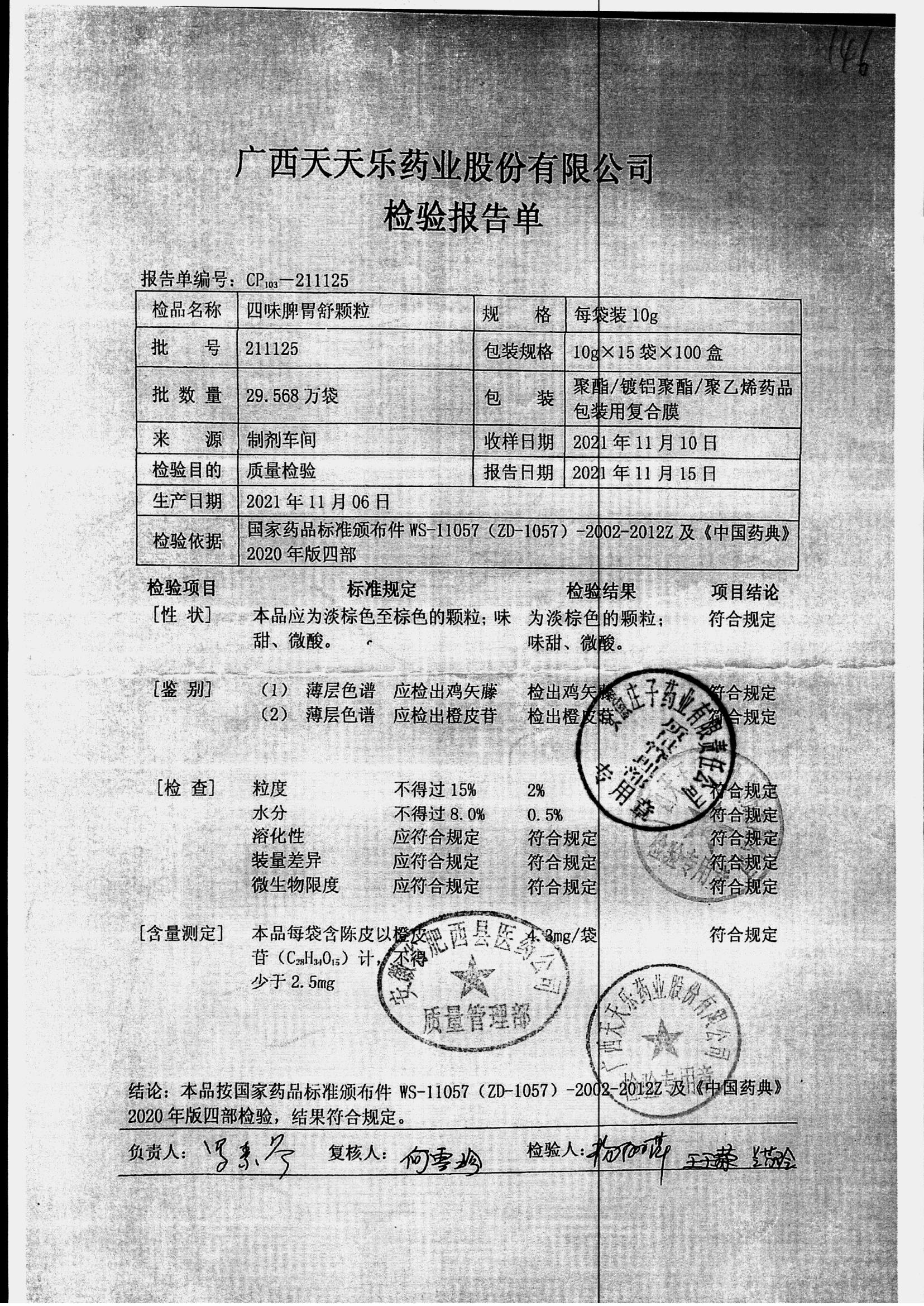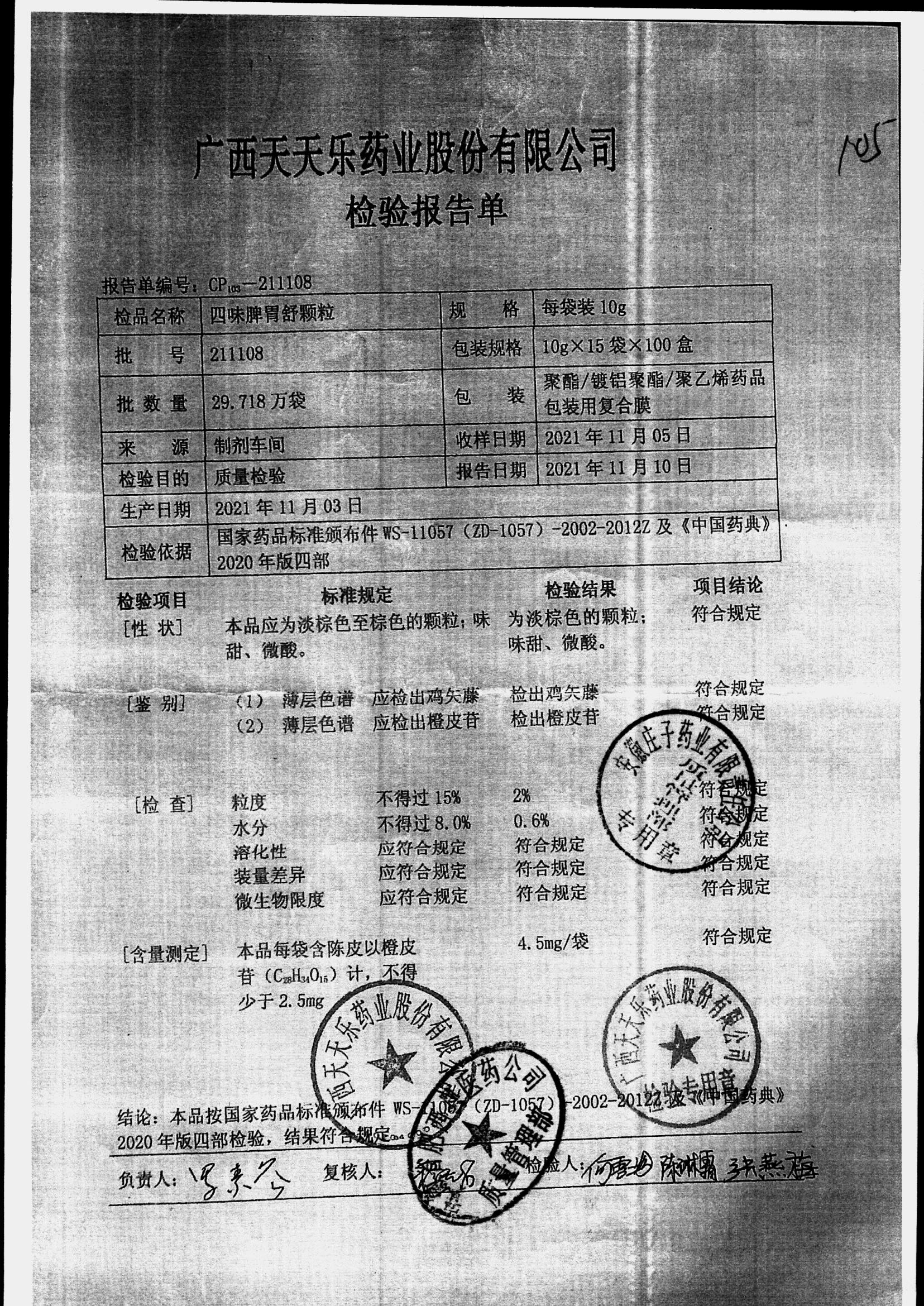 四味脾胃舒颗粒 | 10g*15袋 | 211008 | 查看详情 |