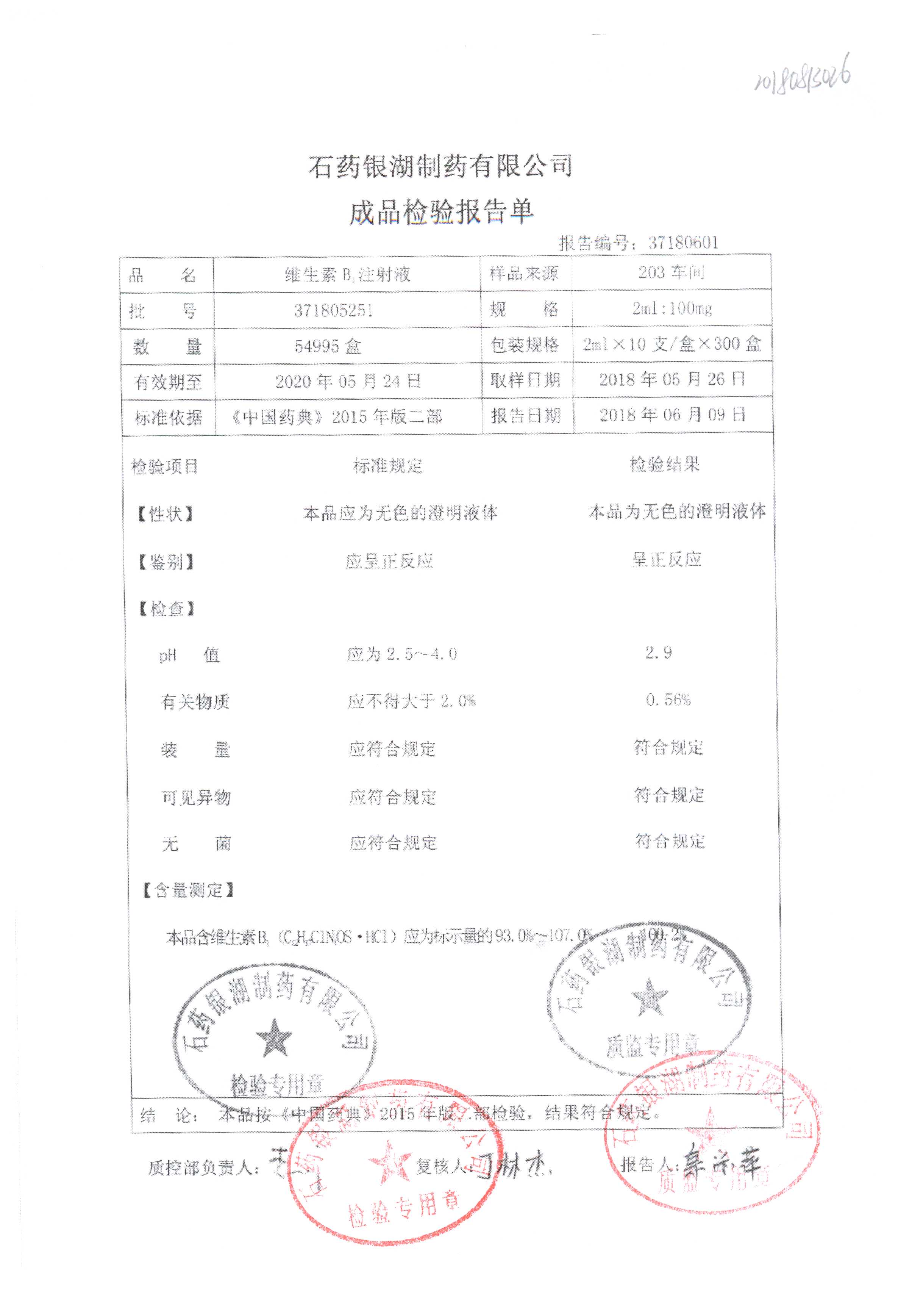 药检报告