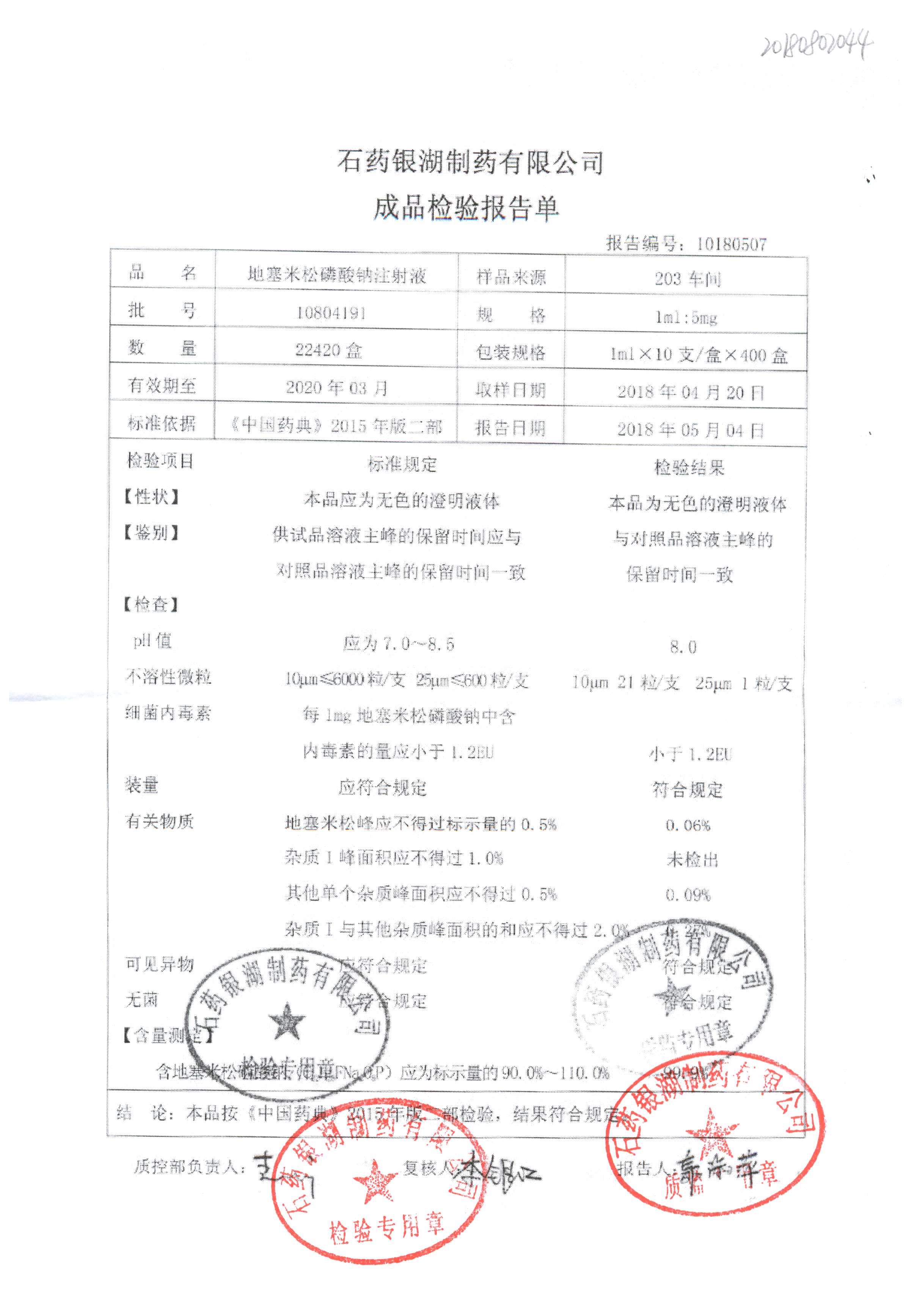 地塞米松磷酸钠注射液 | 1ml:5mg | 102011043 | 查看详情 |