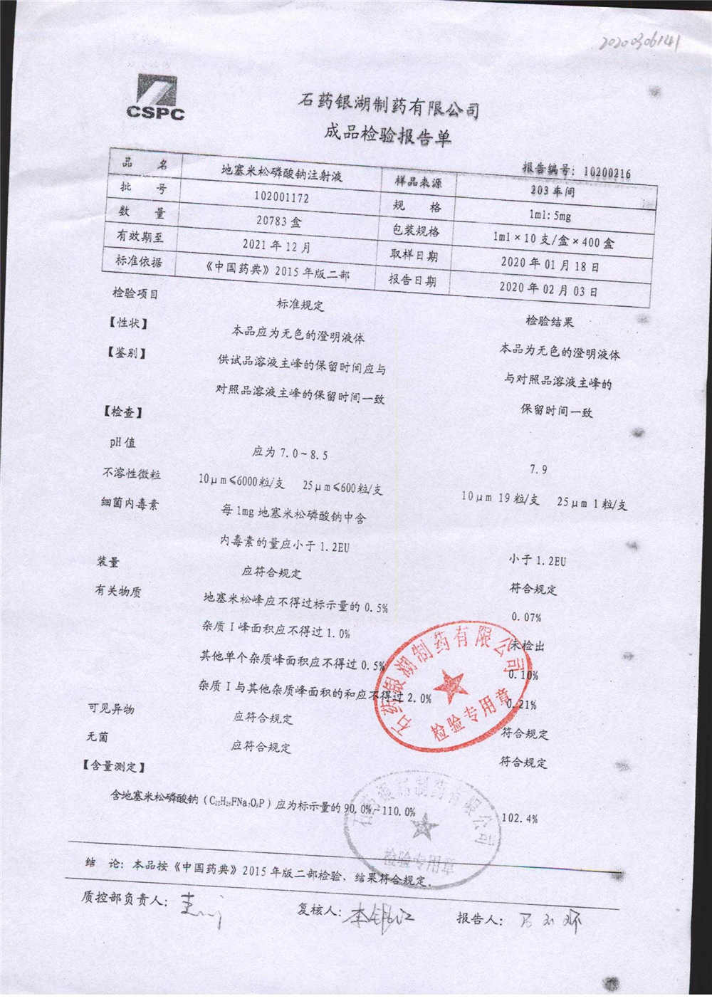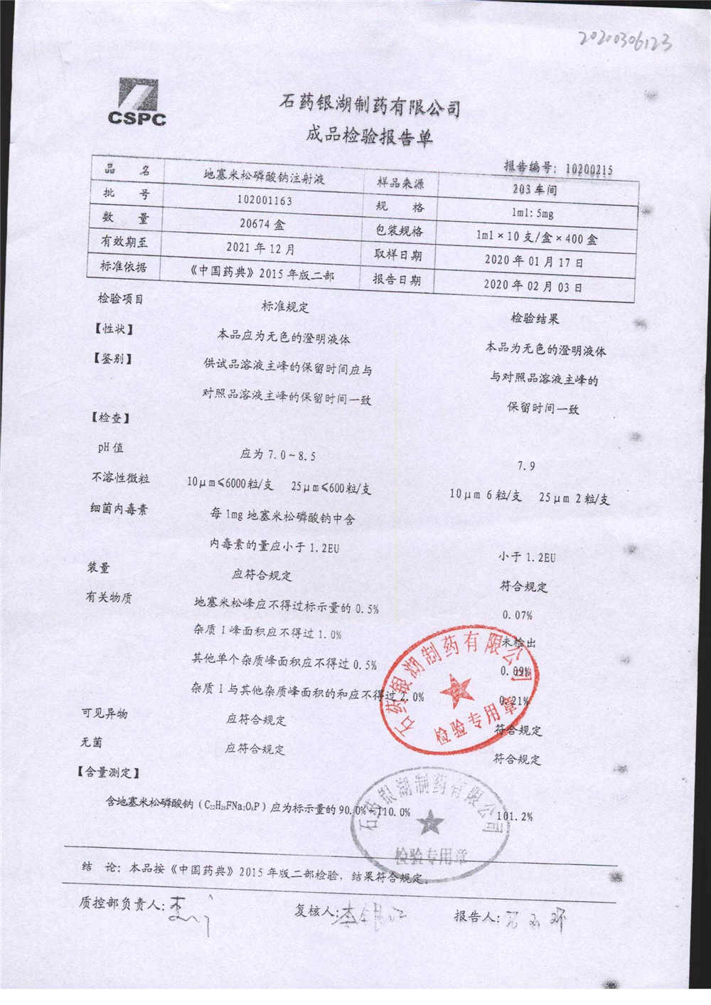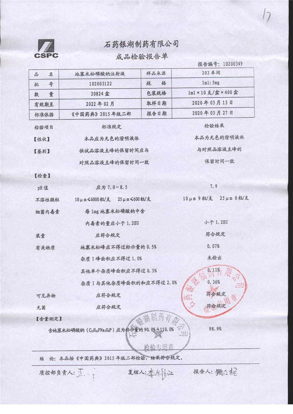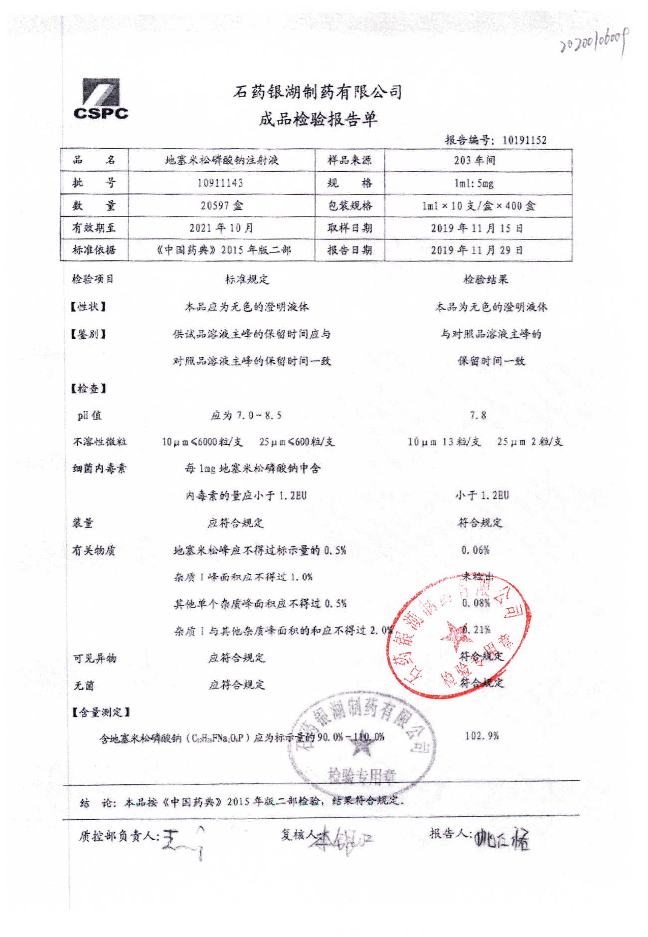 地塞米松磷酸钠注射液 | 1ml:5mg | 102011041 | 查看详情 |