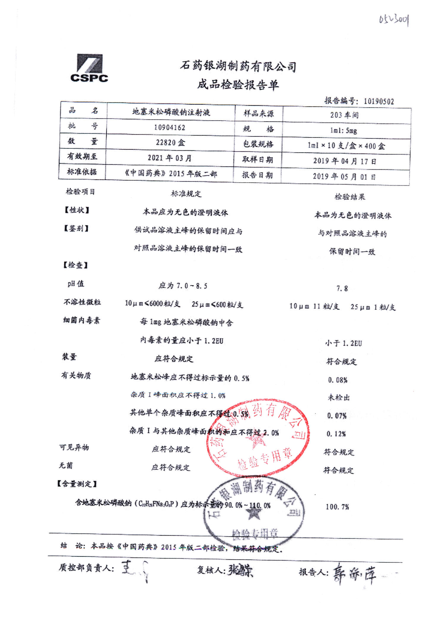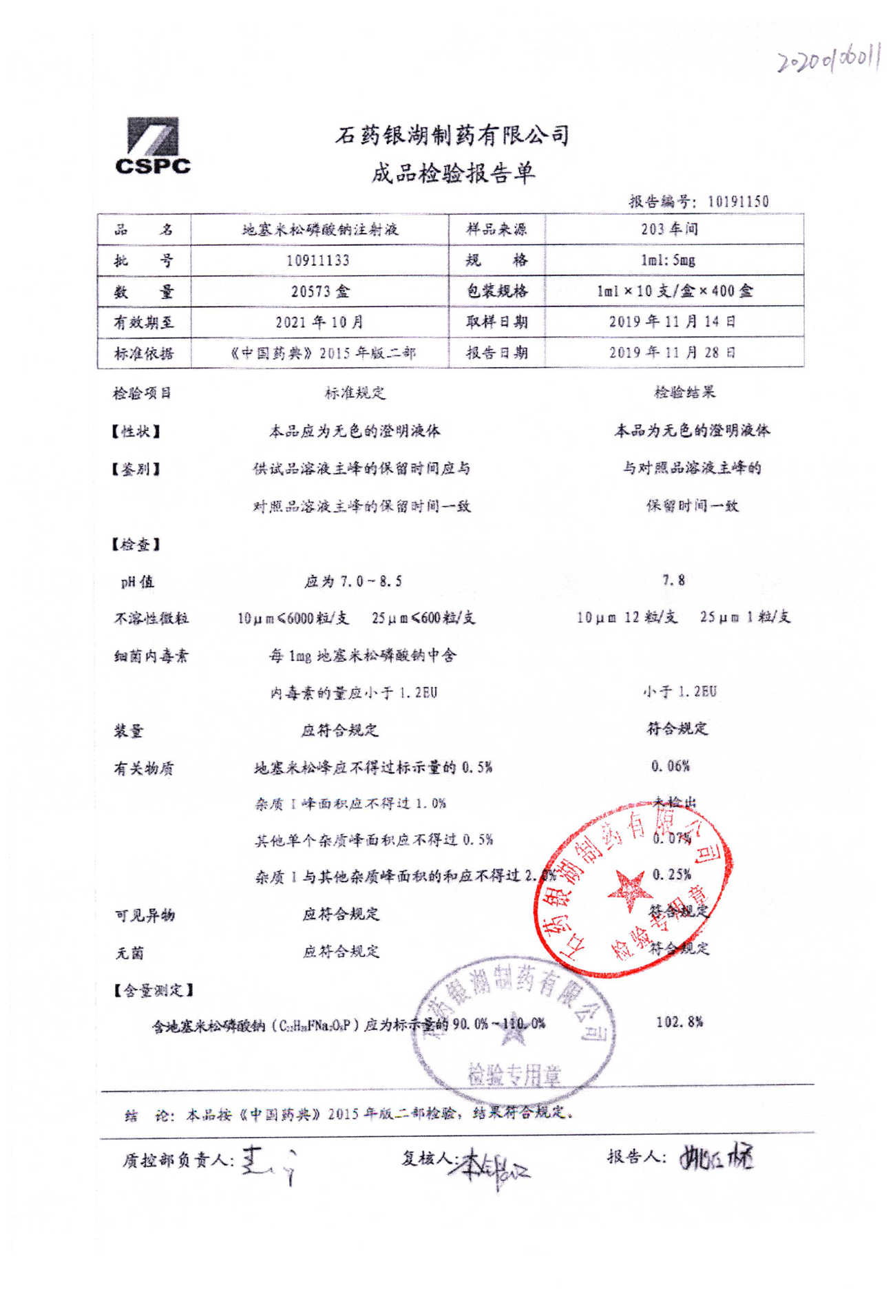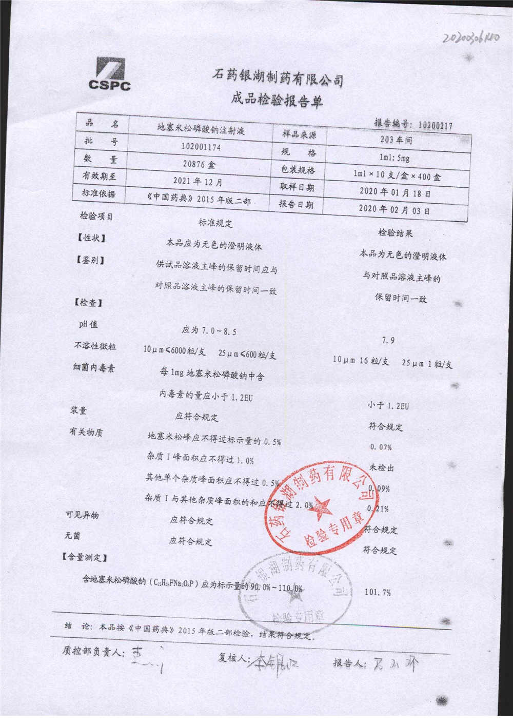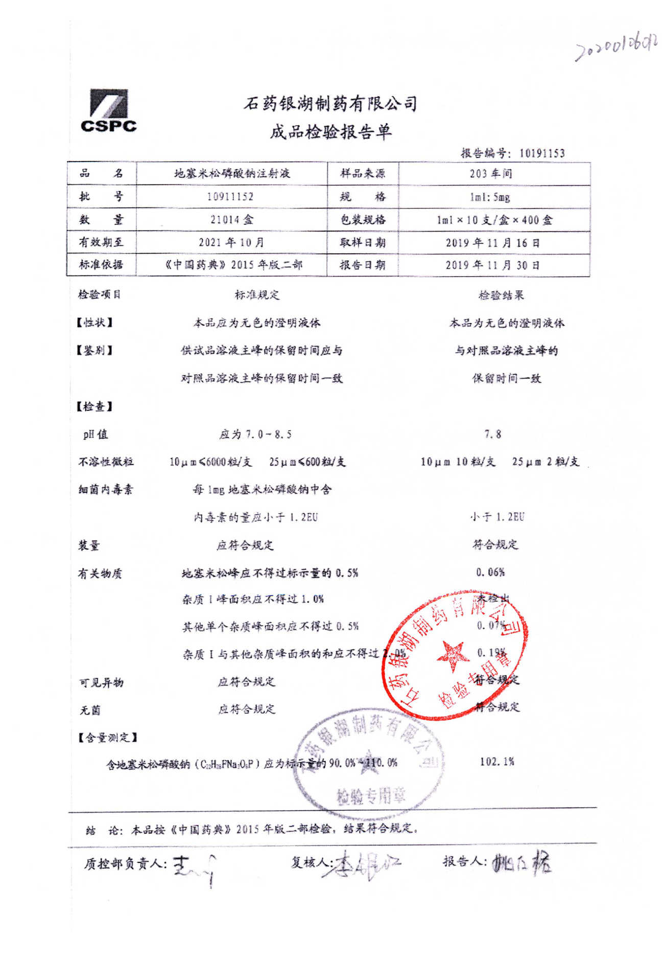 地塞米松磷酸钠注射液 | 1ml:5mg | 102011041 | 查看详情 |