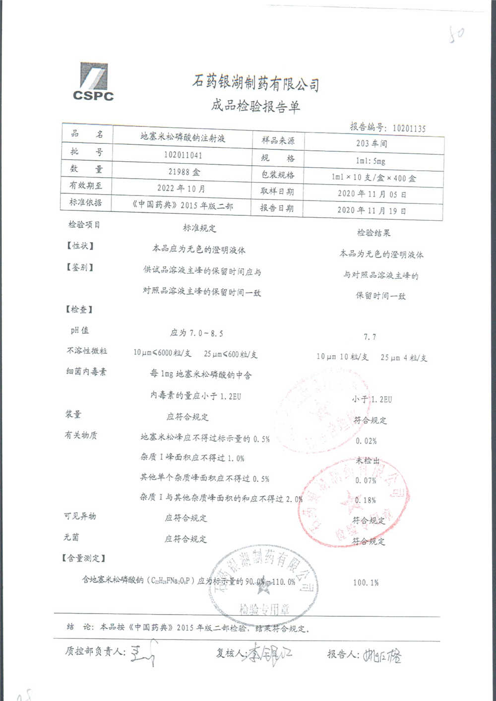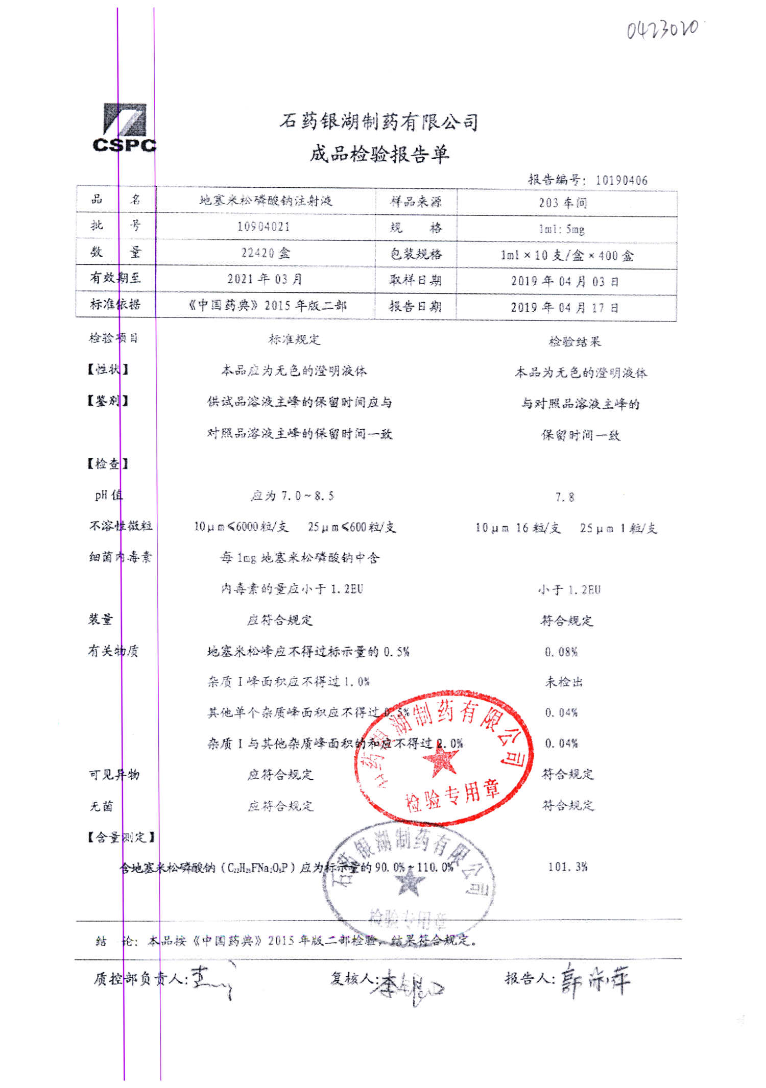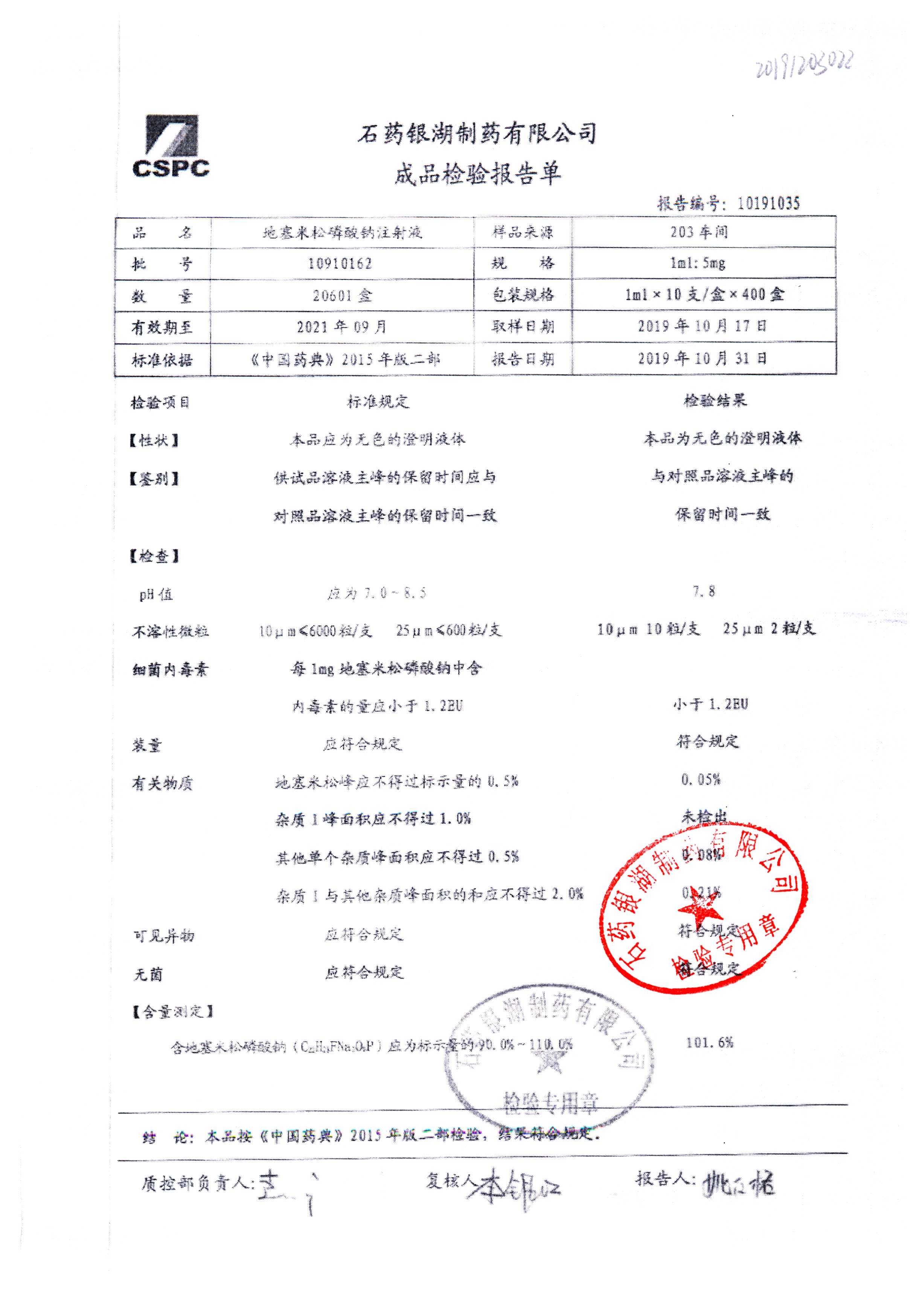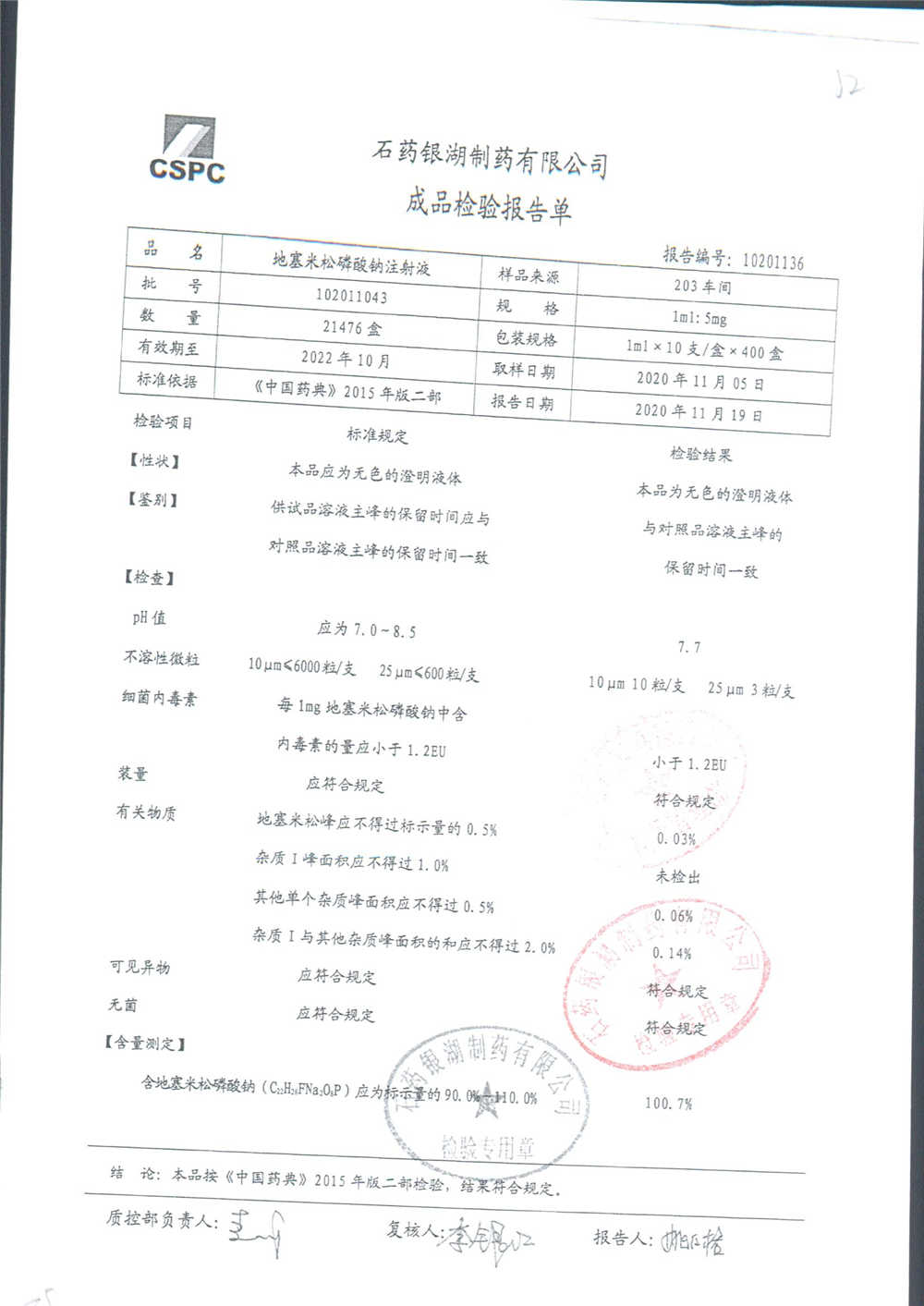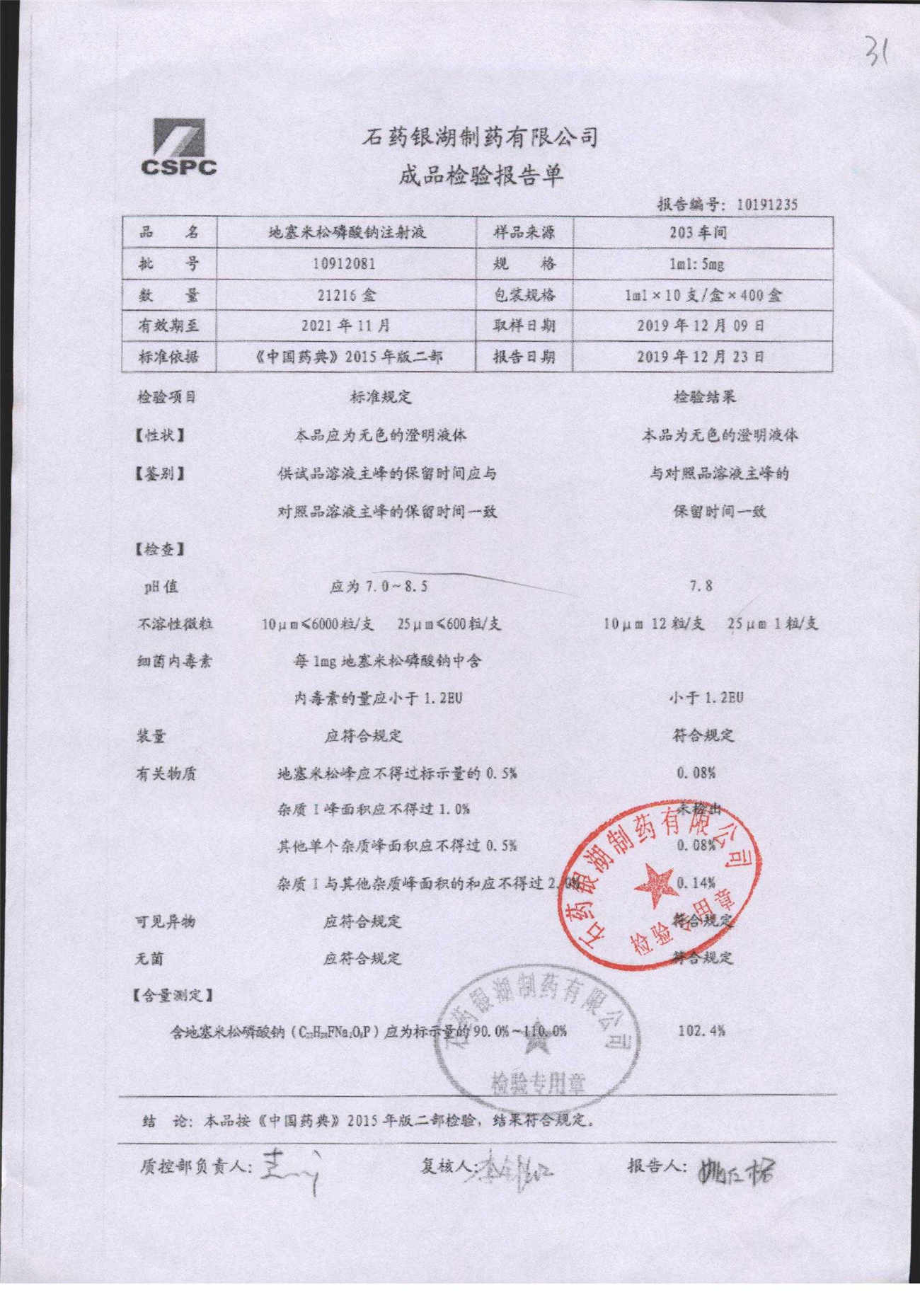 地塞米松磷酸钠注射液 | 1ml:5mg | 102011041 | 查看详情 |