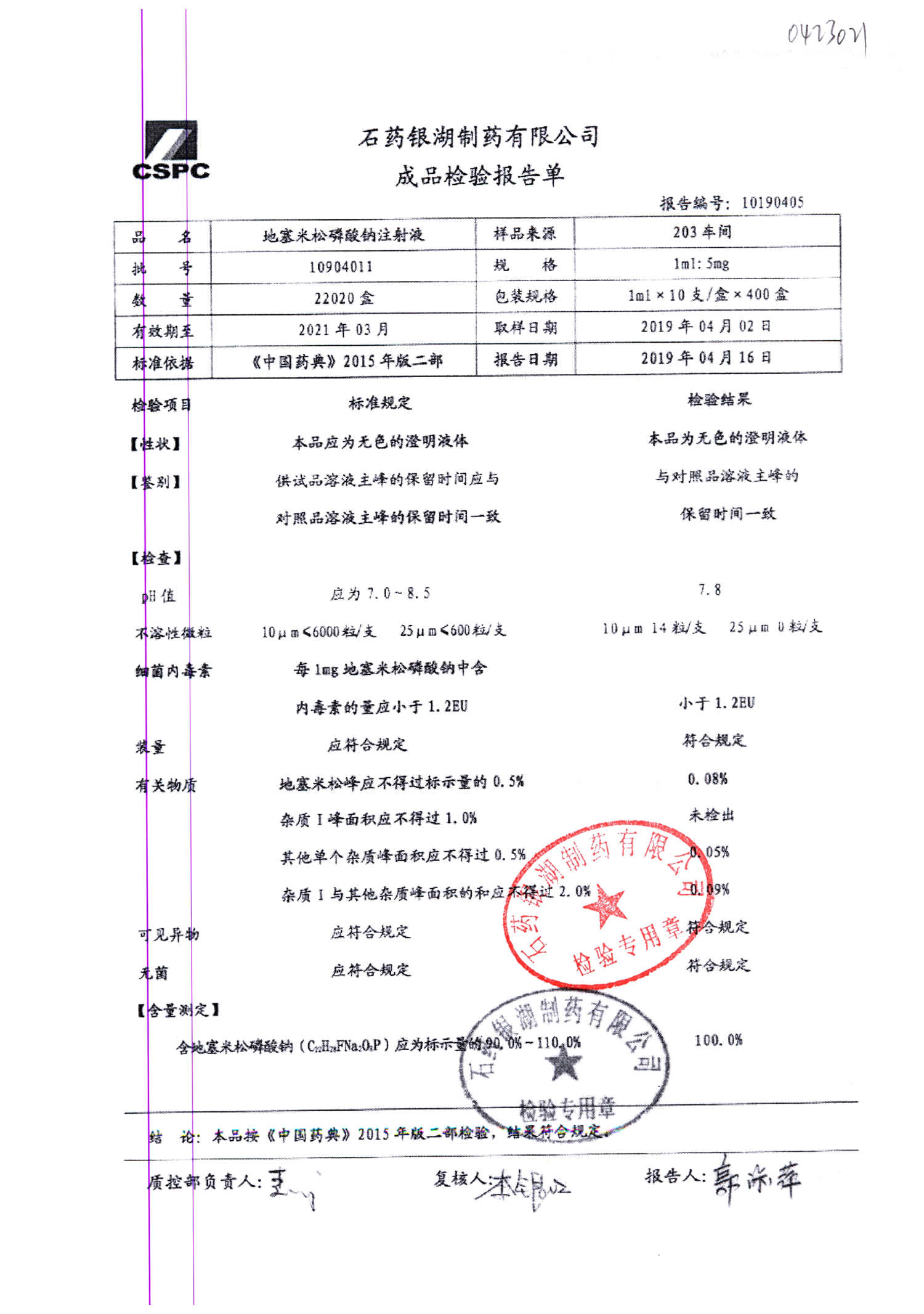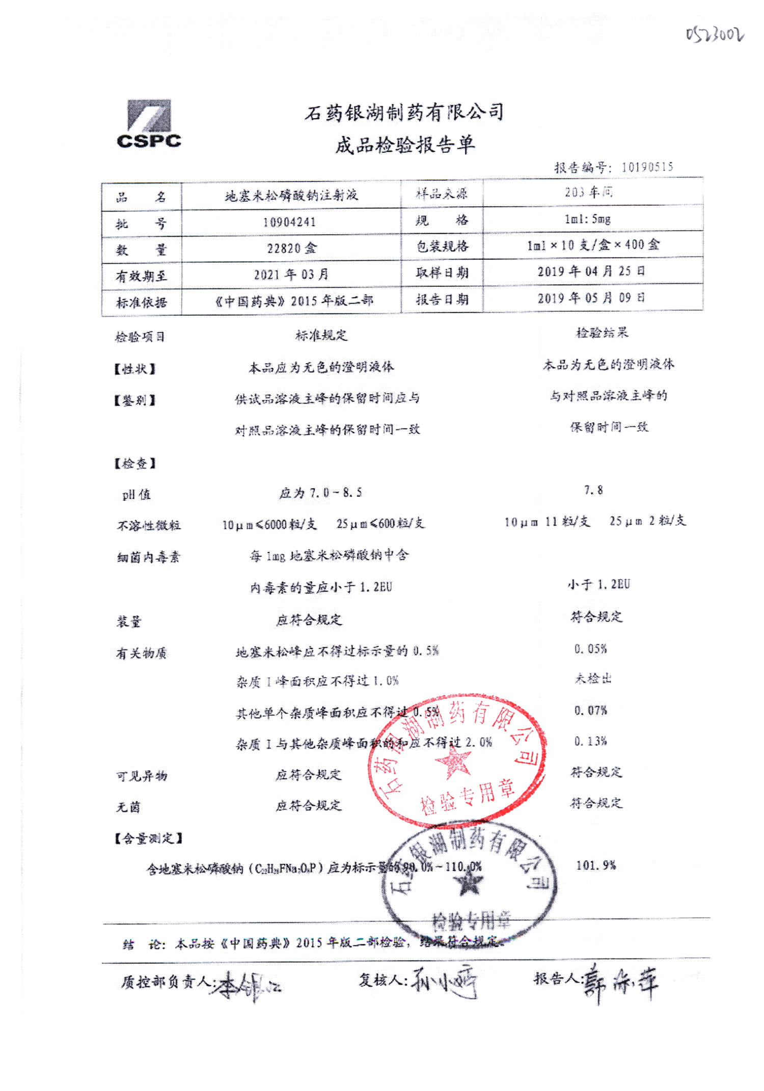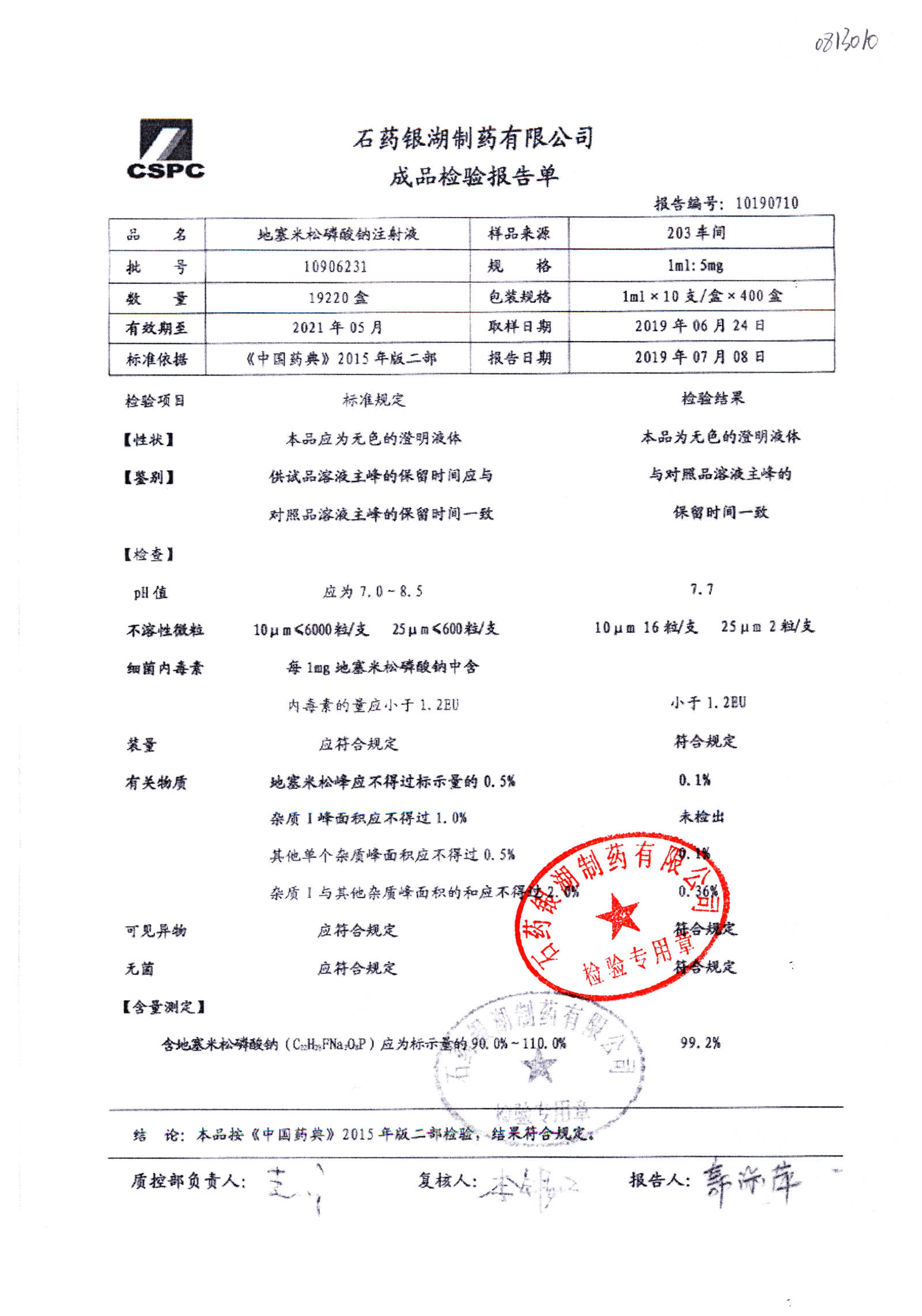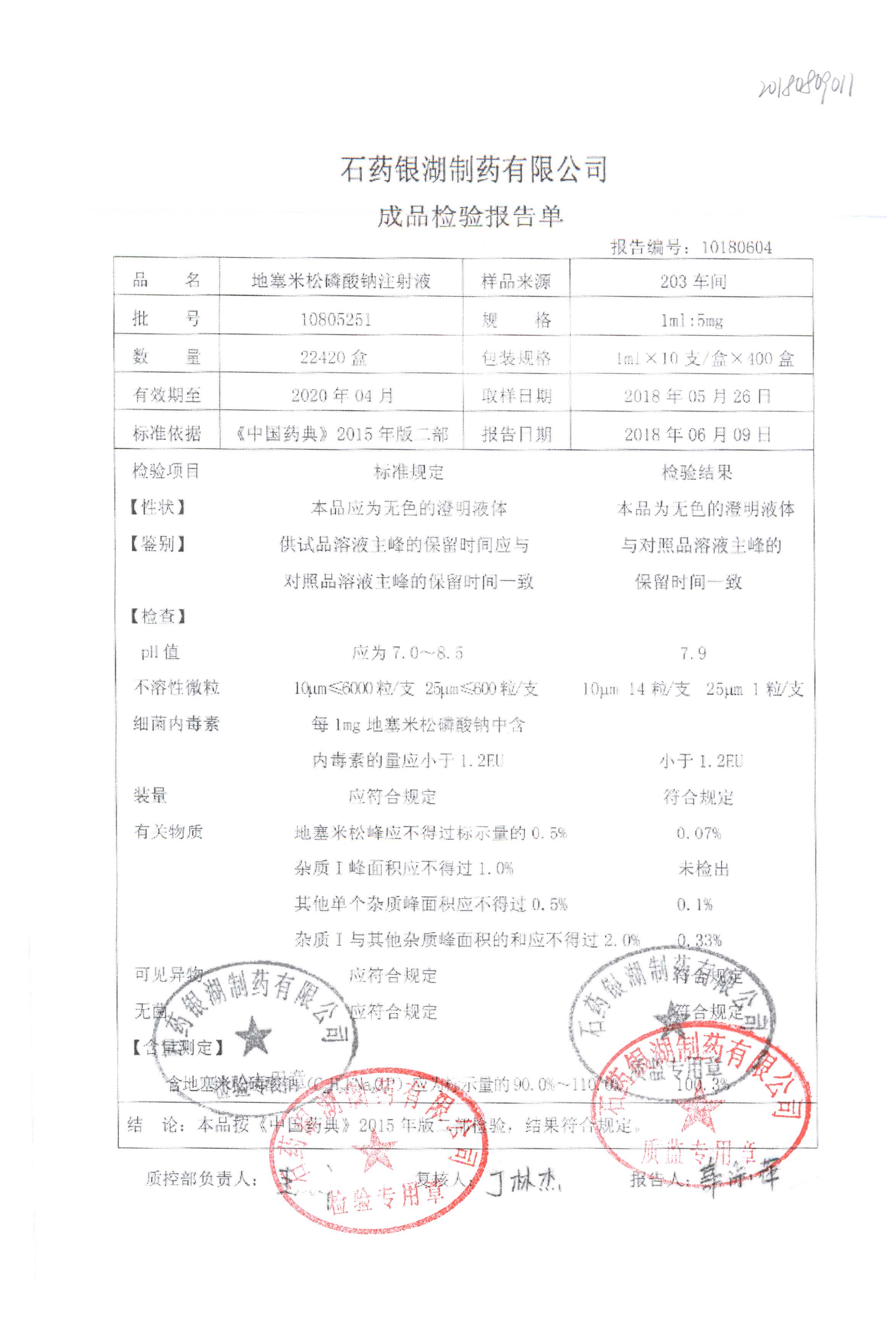地塞米松磷酸钠注射液 | 1ml:5mg | 102011041 | 查看详情 |