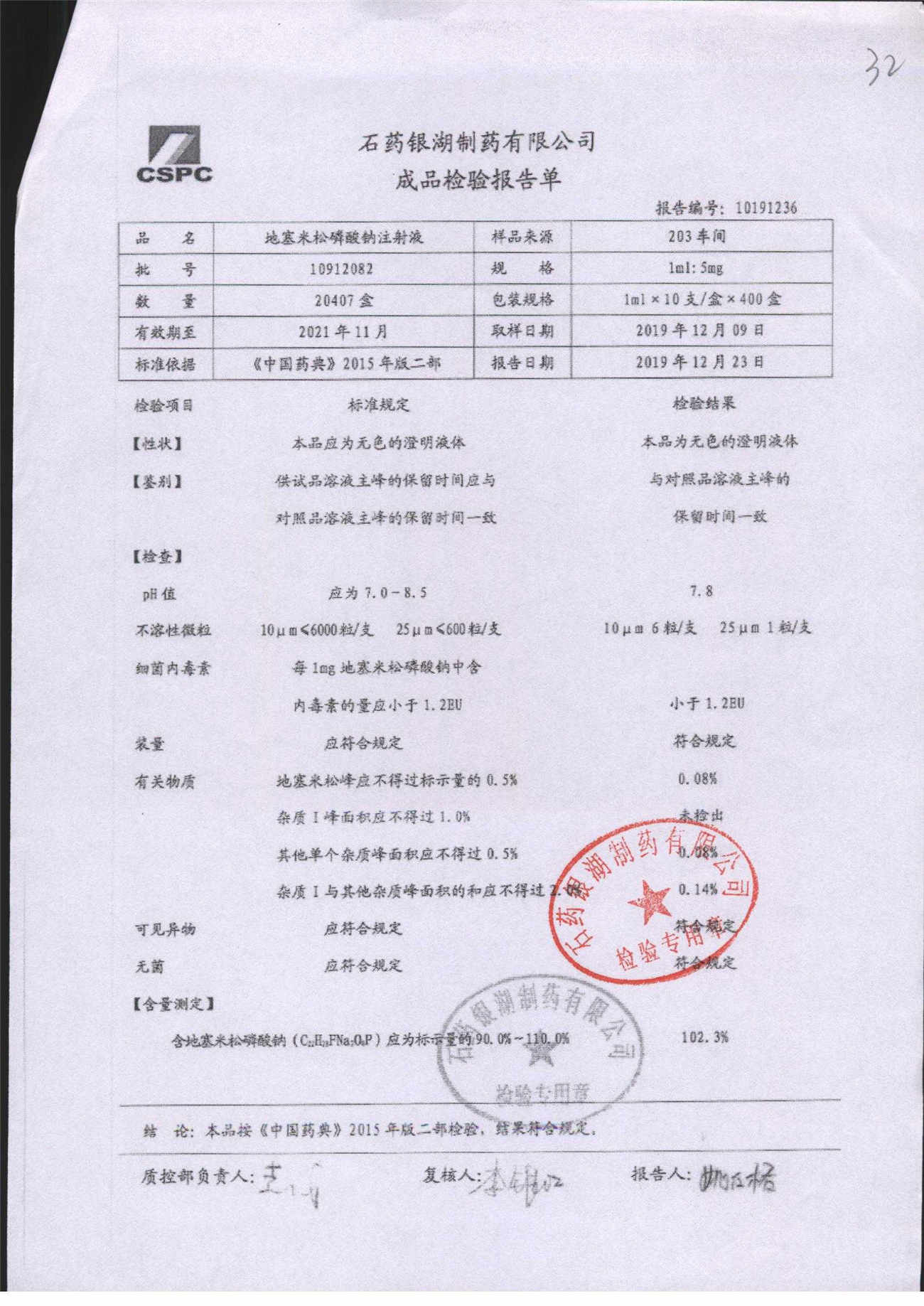 地塞米松磷酸钠注射液 | 1ml:5mg | 102011032 | 查看详情 |