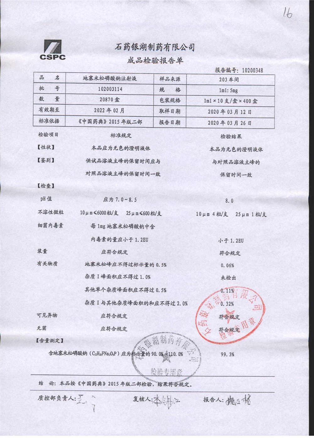 地塞米松磷酸钠注射液 | 1ml:5mg | 102003142 | 查看详情 |