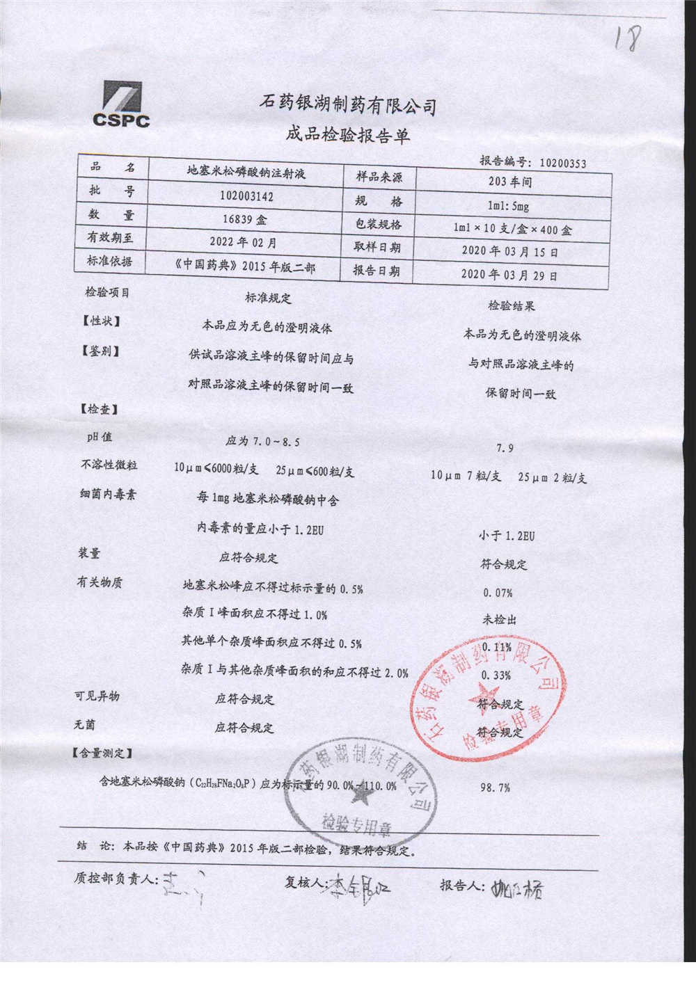 地塞米松磷酸钠注射液 | 1ml:5mg | 102003122 | 查看详情 |