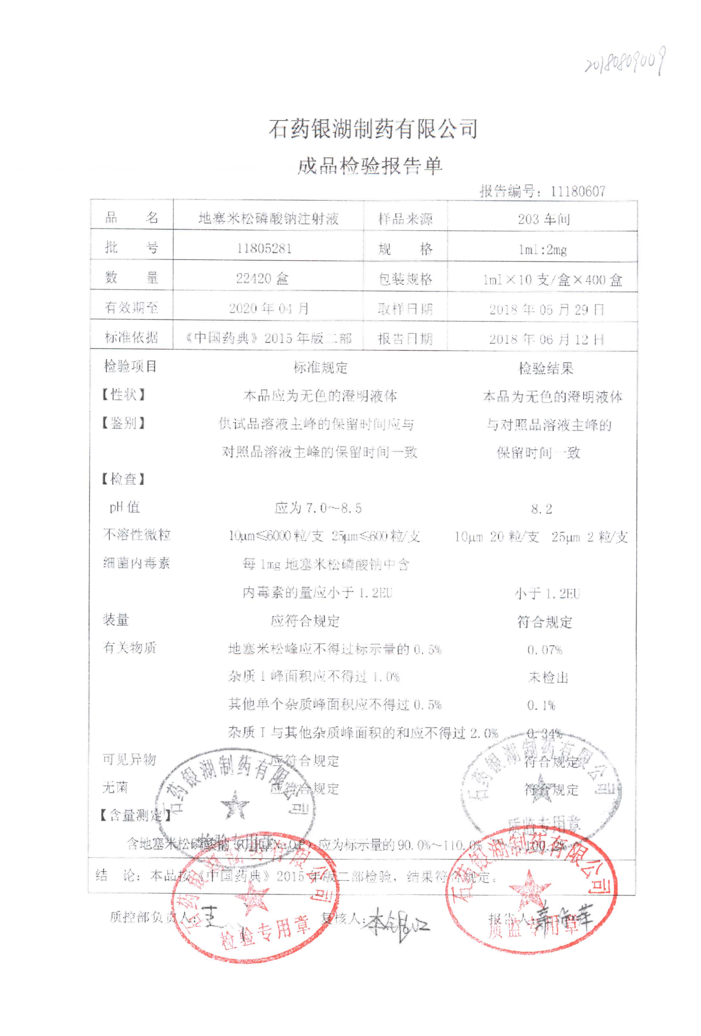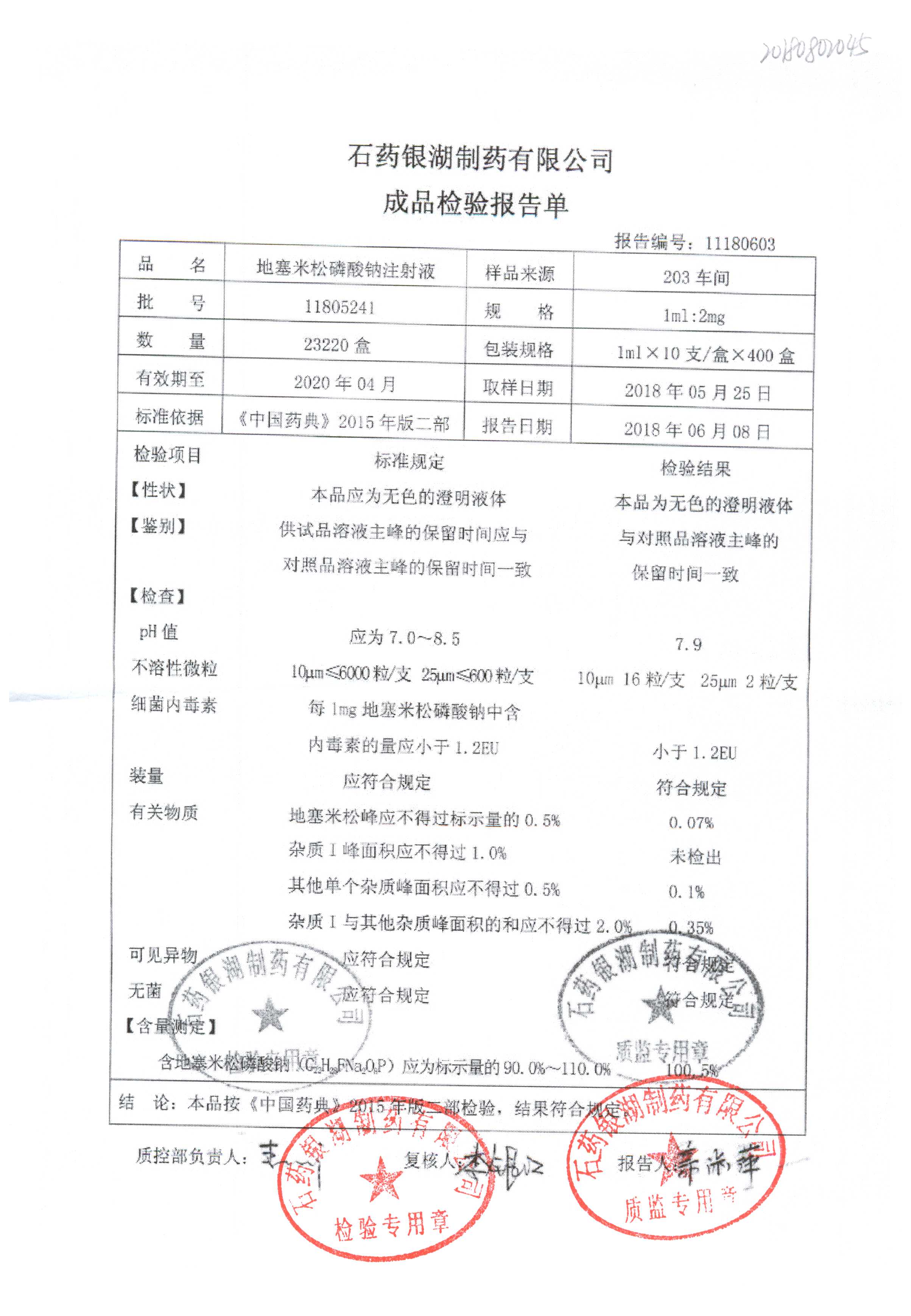地塞米松磷酸钠注射液 | 1ml:2mg | 11805281 | 查看详情 |