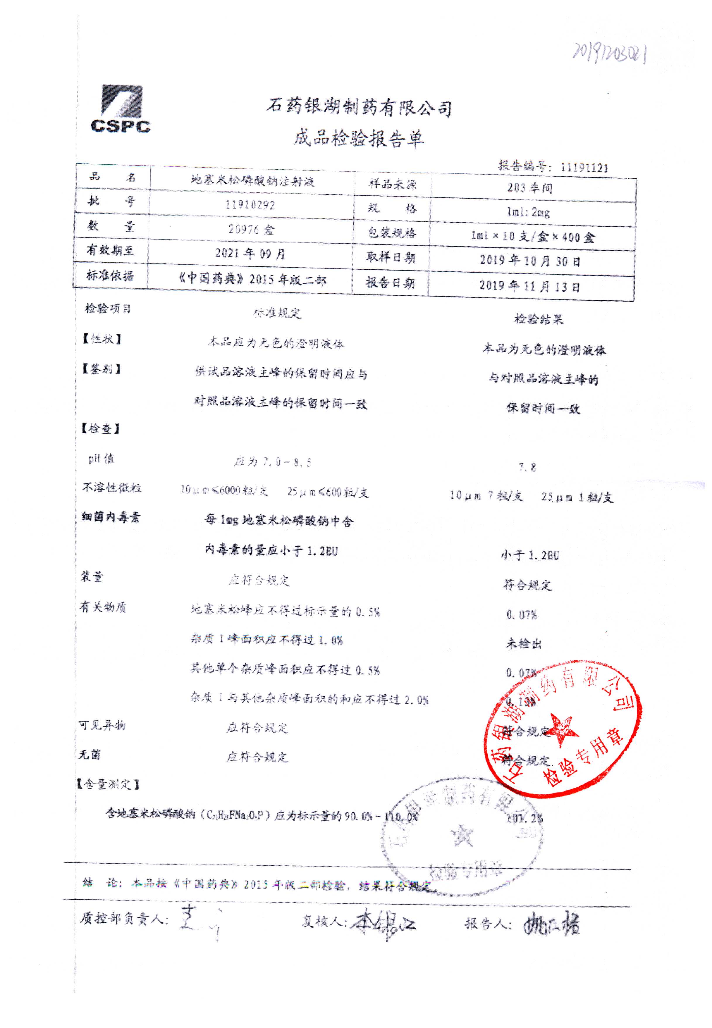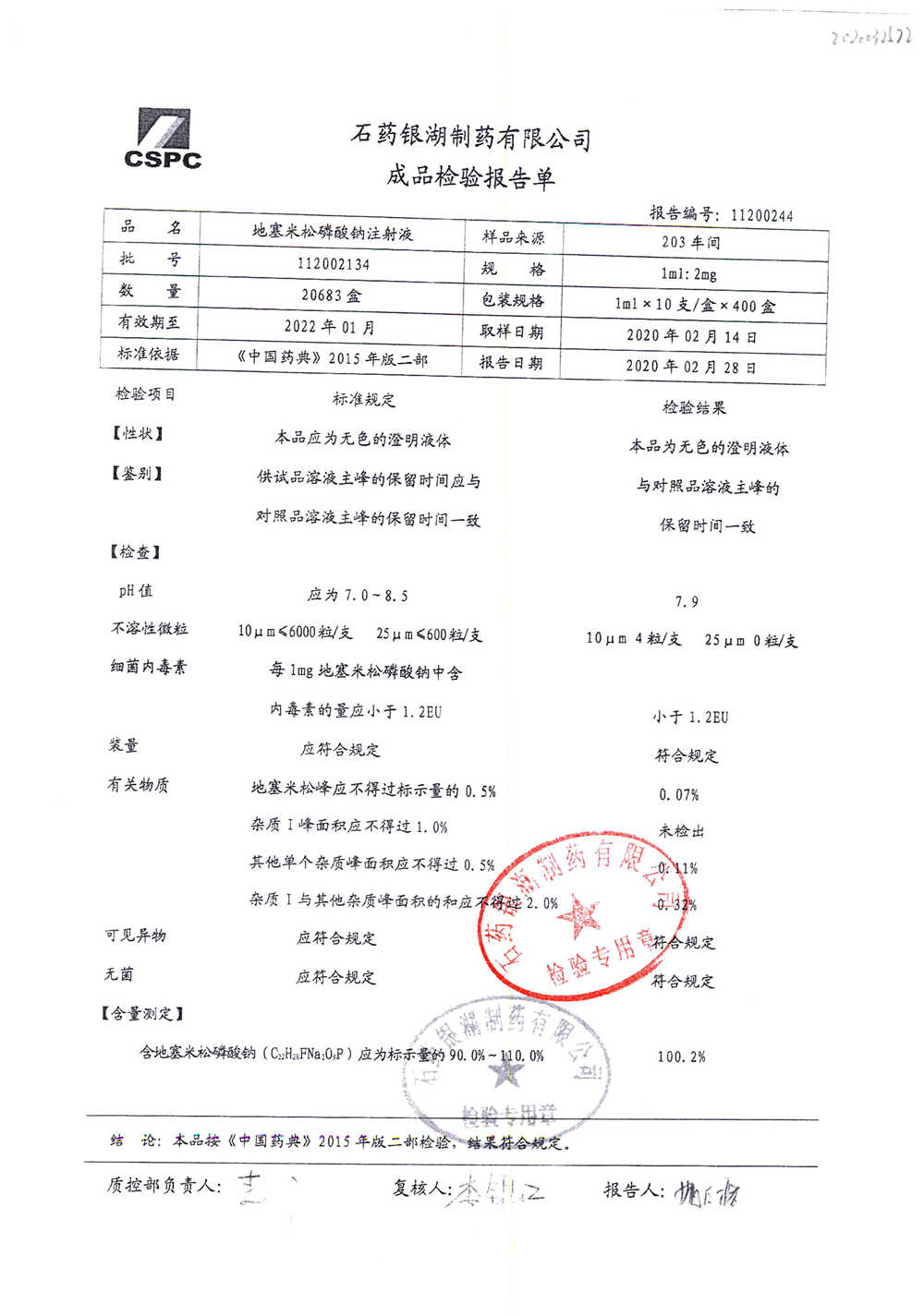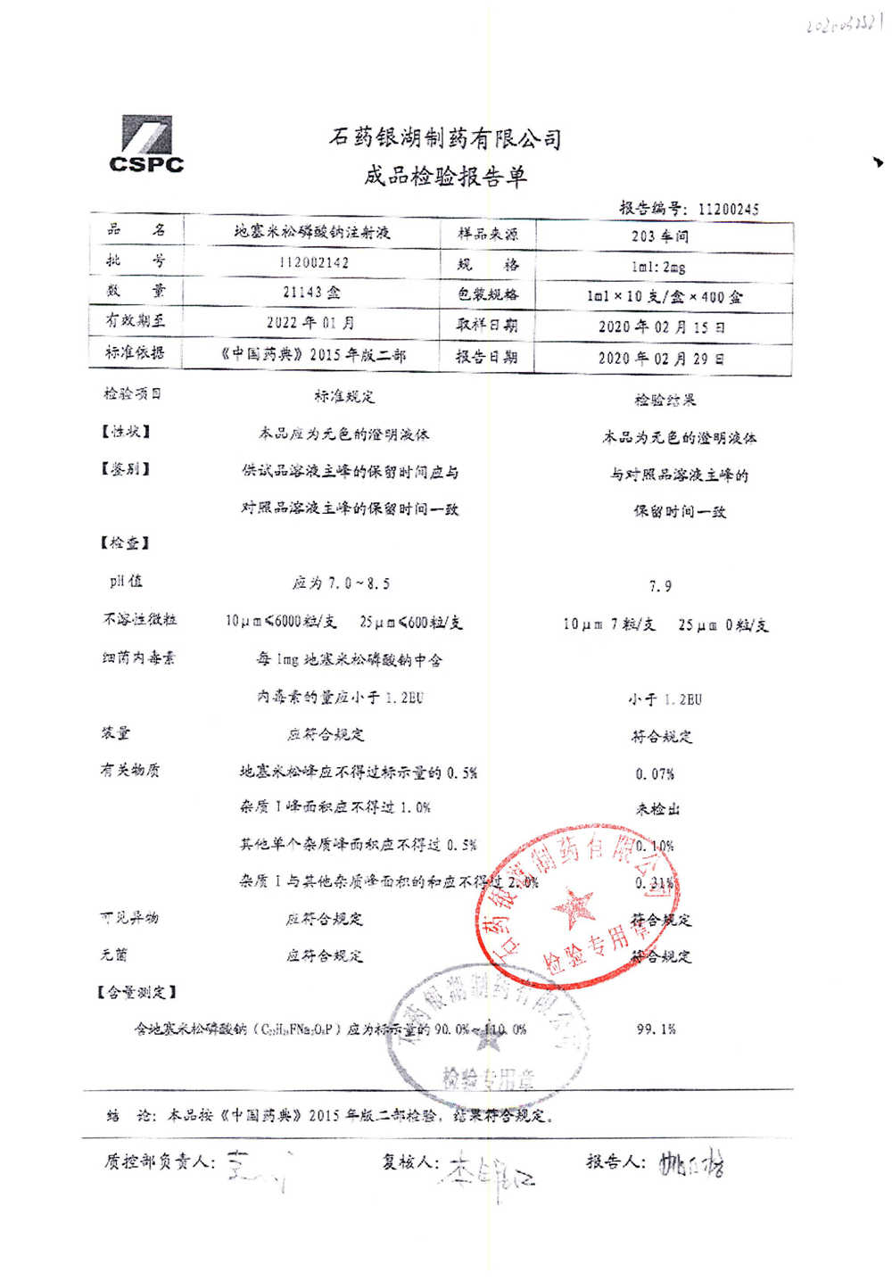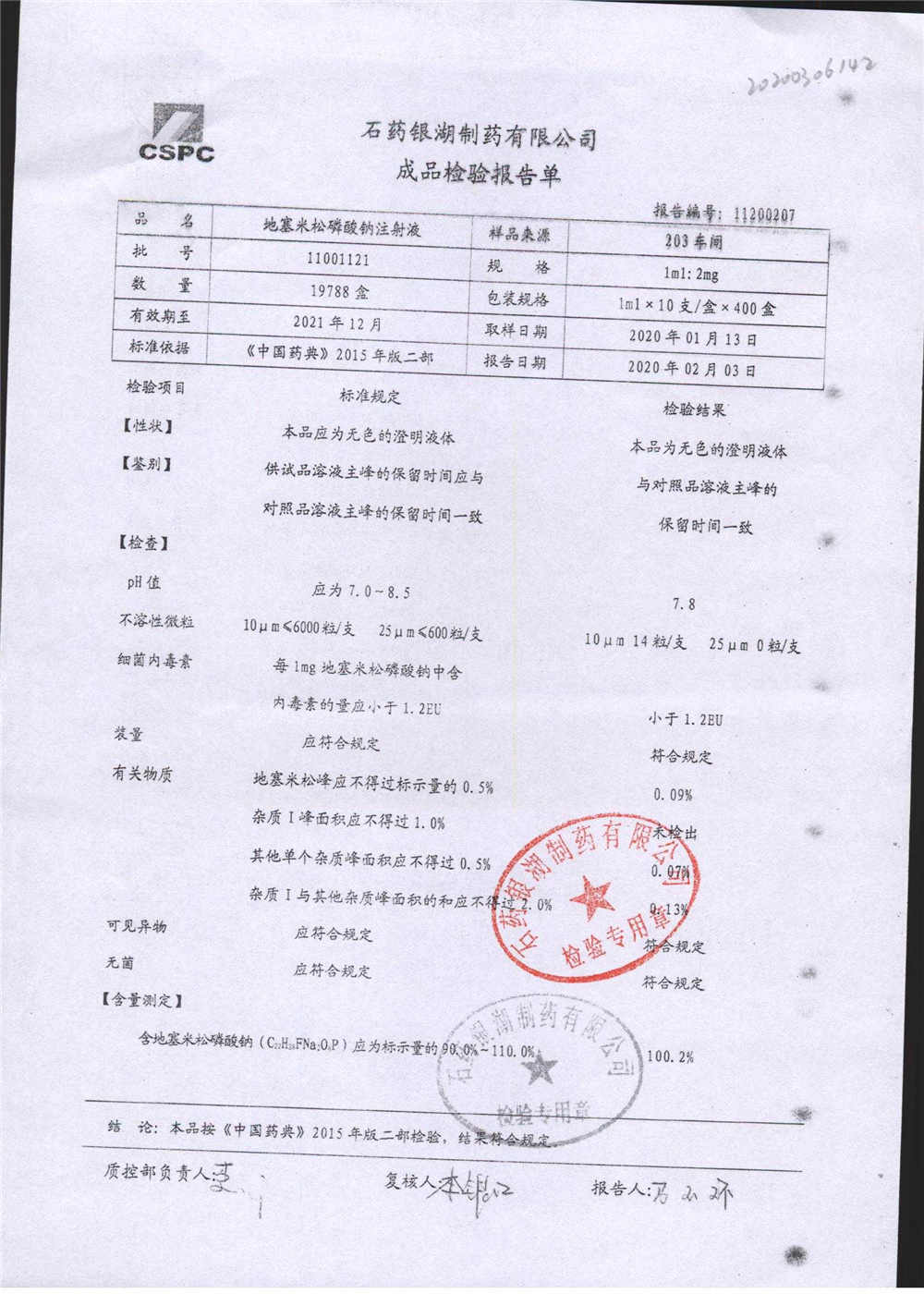地塞米松磷酸钠注射液 | 1ml:2mg | 112001131 | 查看详情 |
