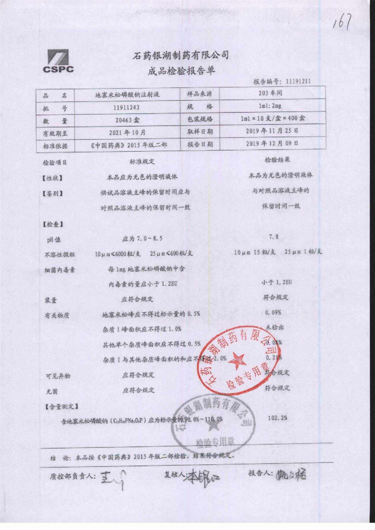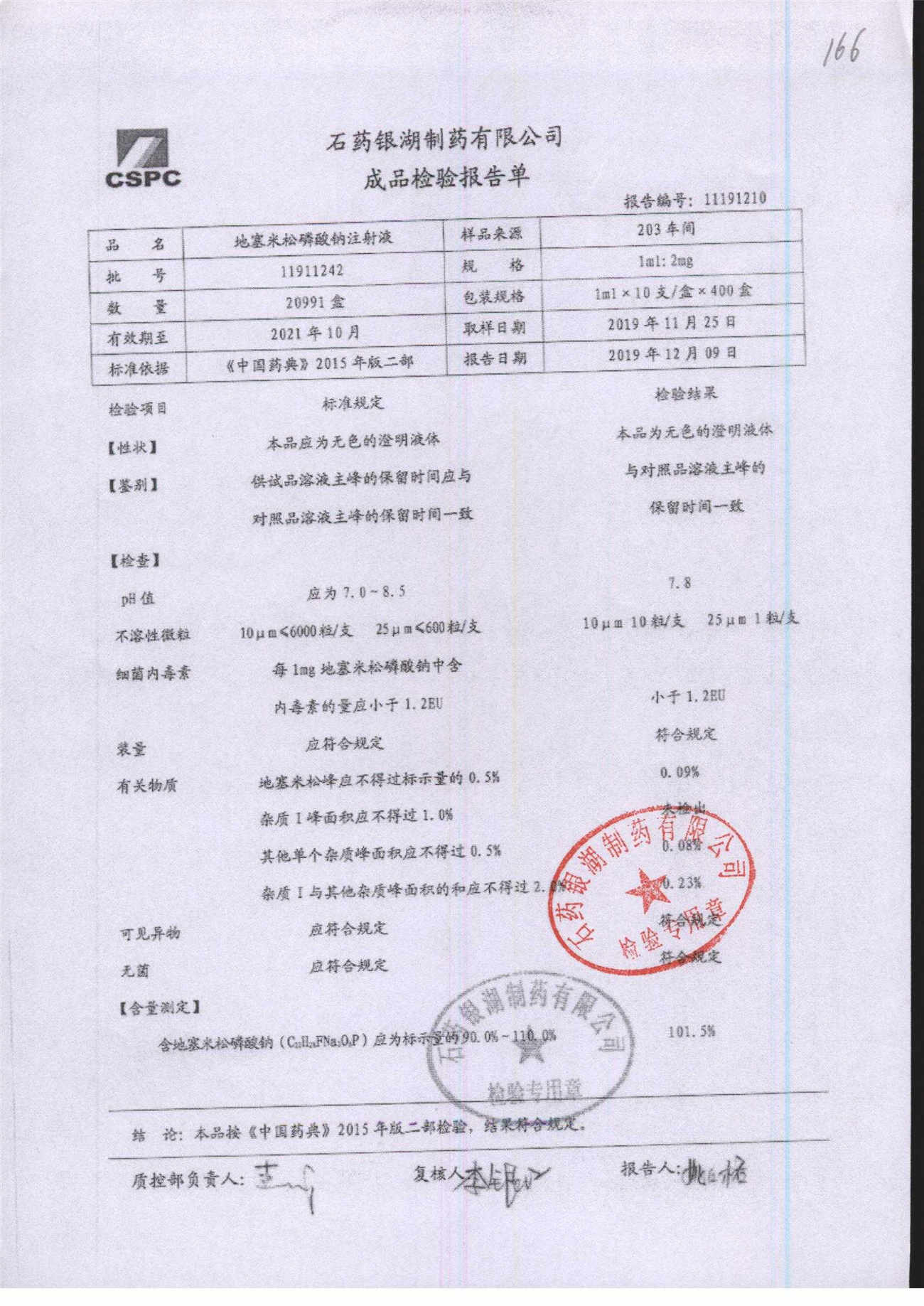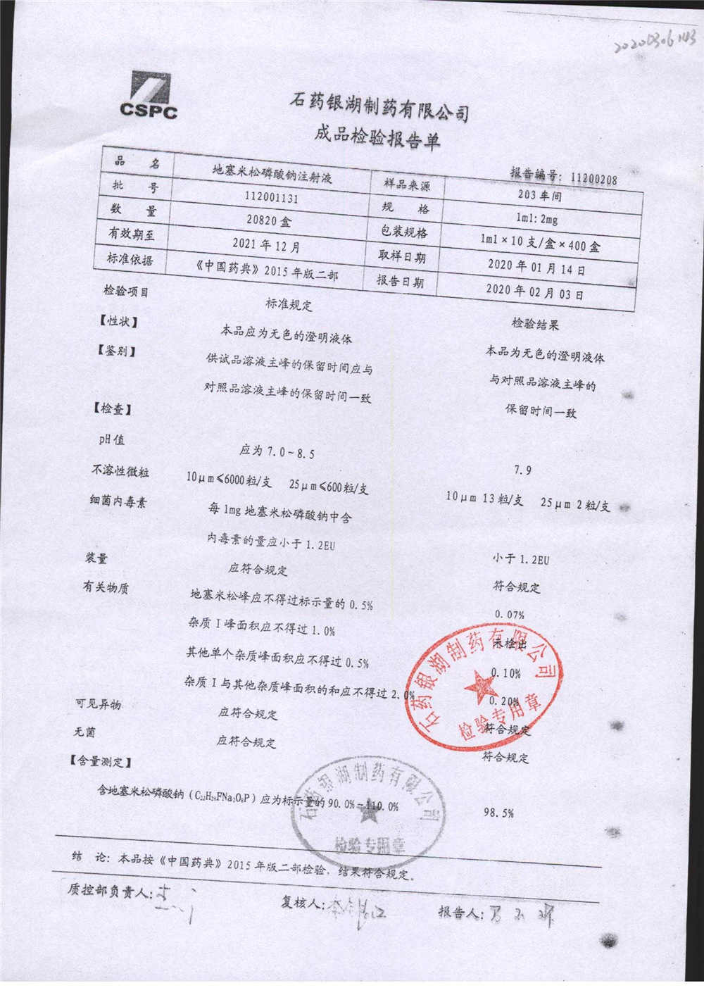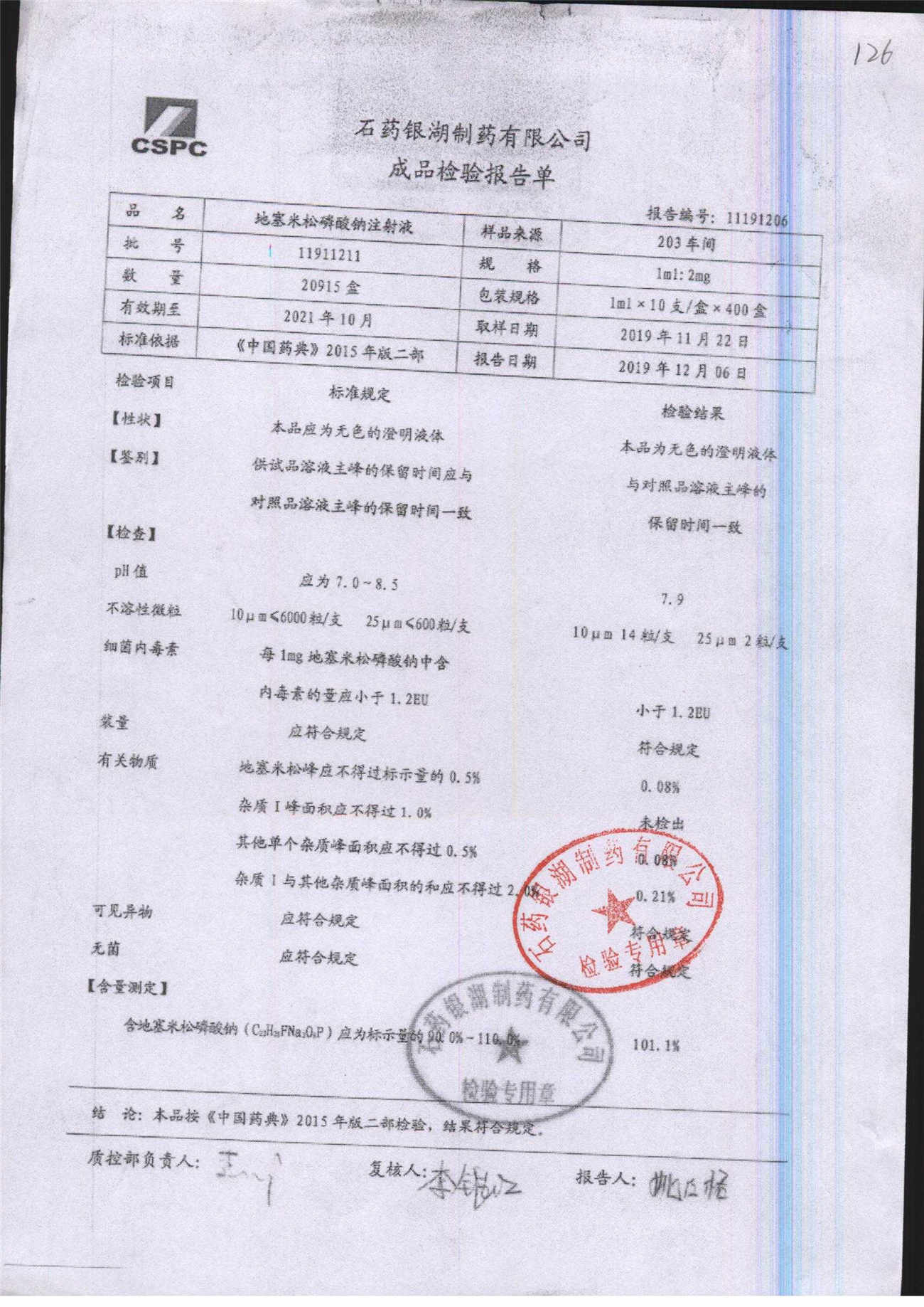 地塞米松磷酸钠注射液 | 1ml:2mg | 112001131 | 查看详情 |