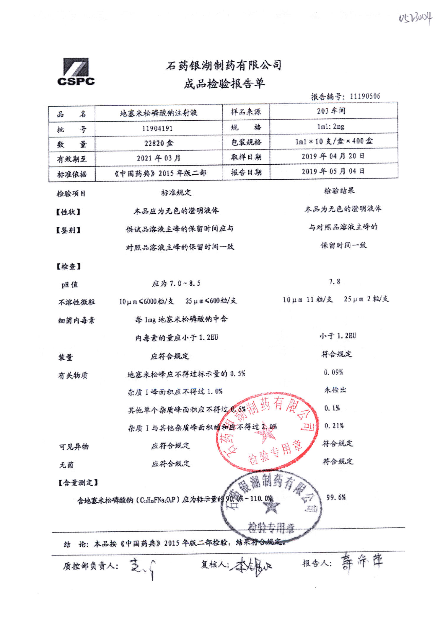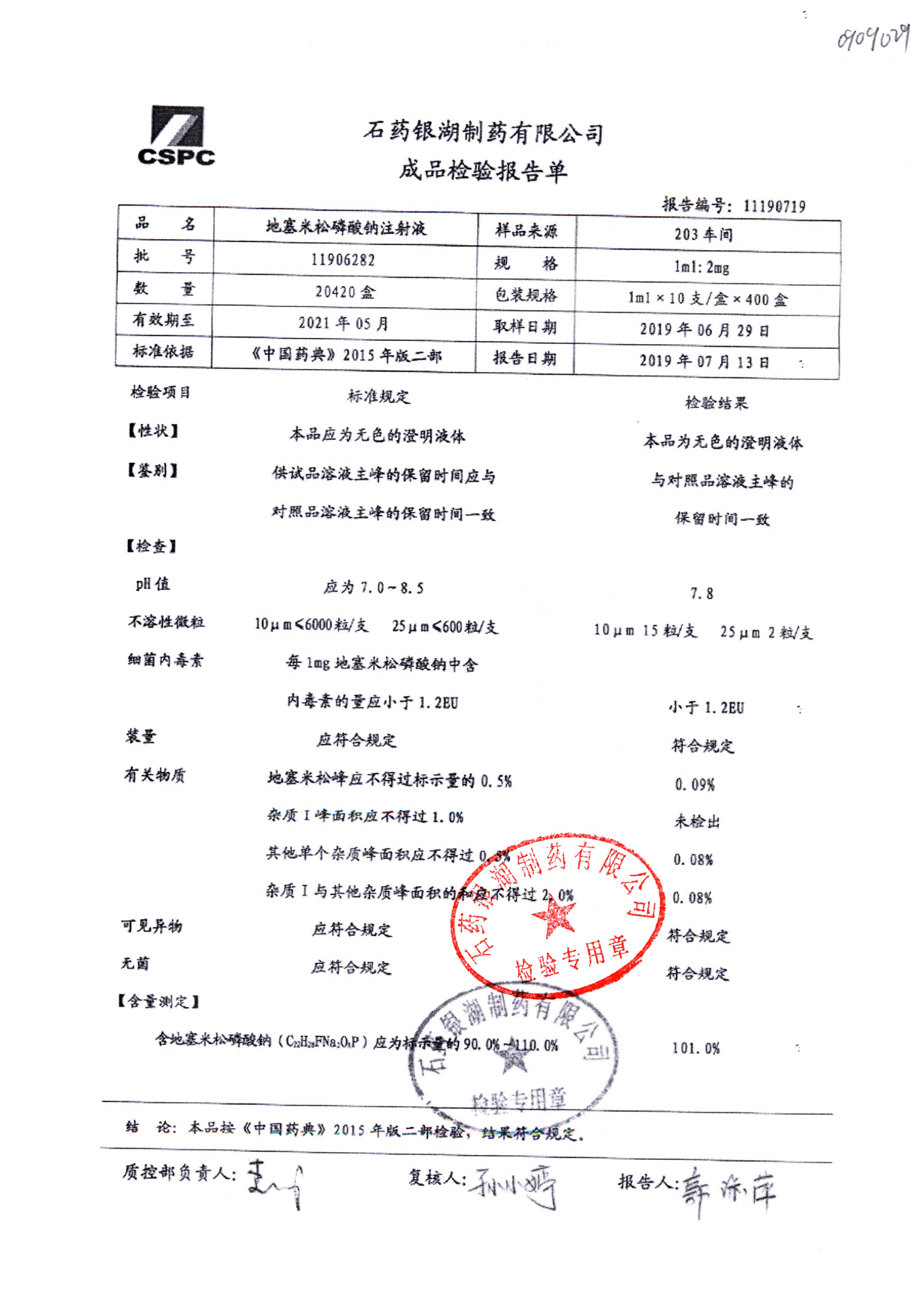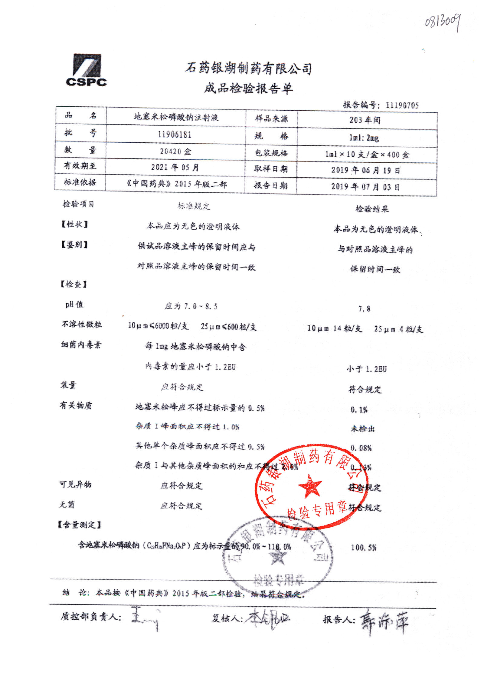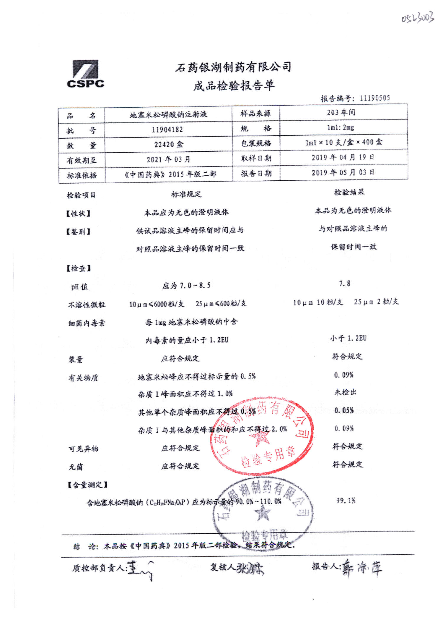 地塞米松磷酸钠注射液 | 1ml:2mg | 112001131 | 查看详情 |
