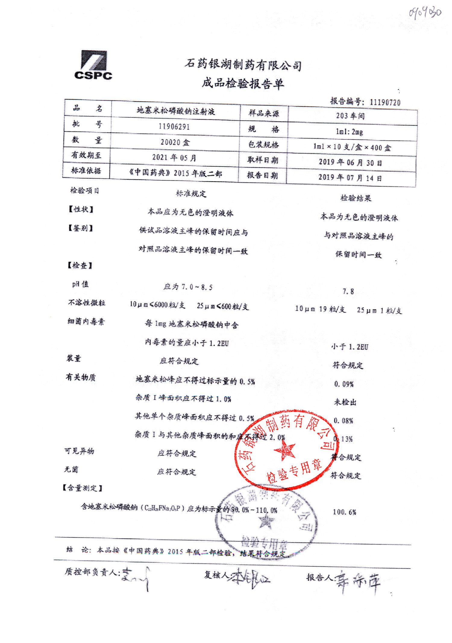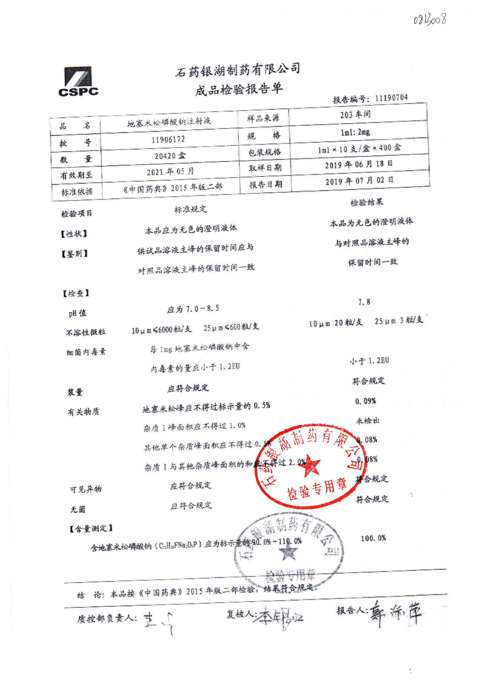 地塞米松磷酸钠注射液 | 1ml:2mg | 112002142 | 查看详情 |