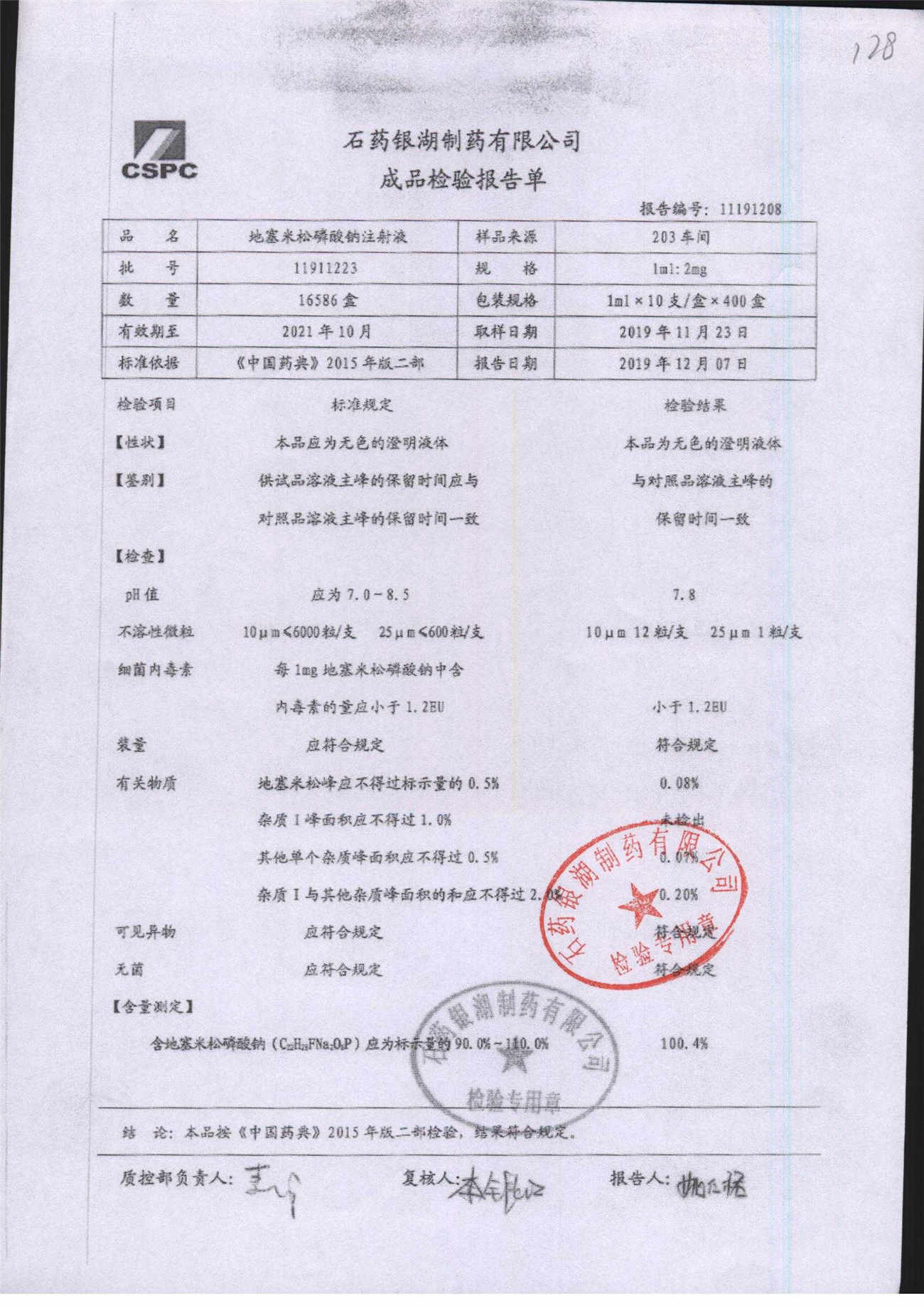 地塞米松磷酸钠注射液 | 1ml:2mg | 11911223 | 查看详情 |