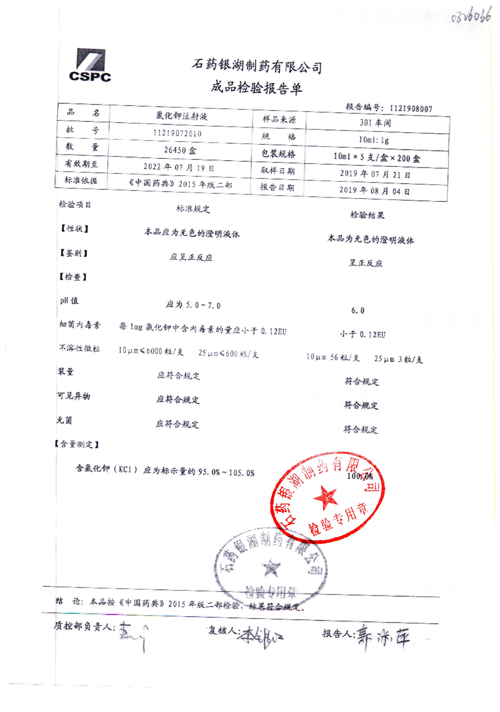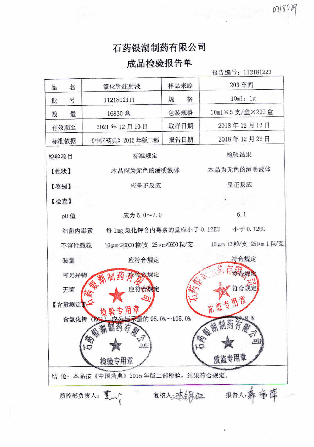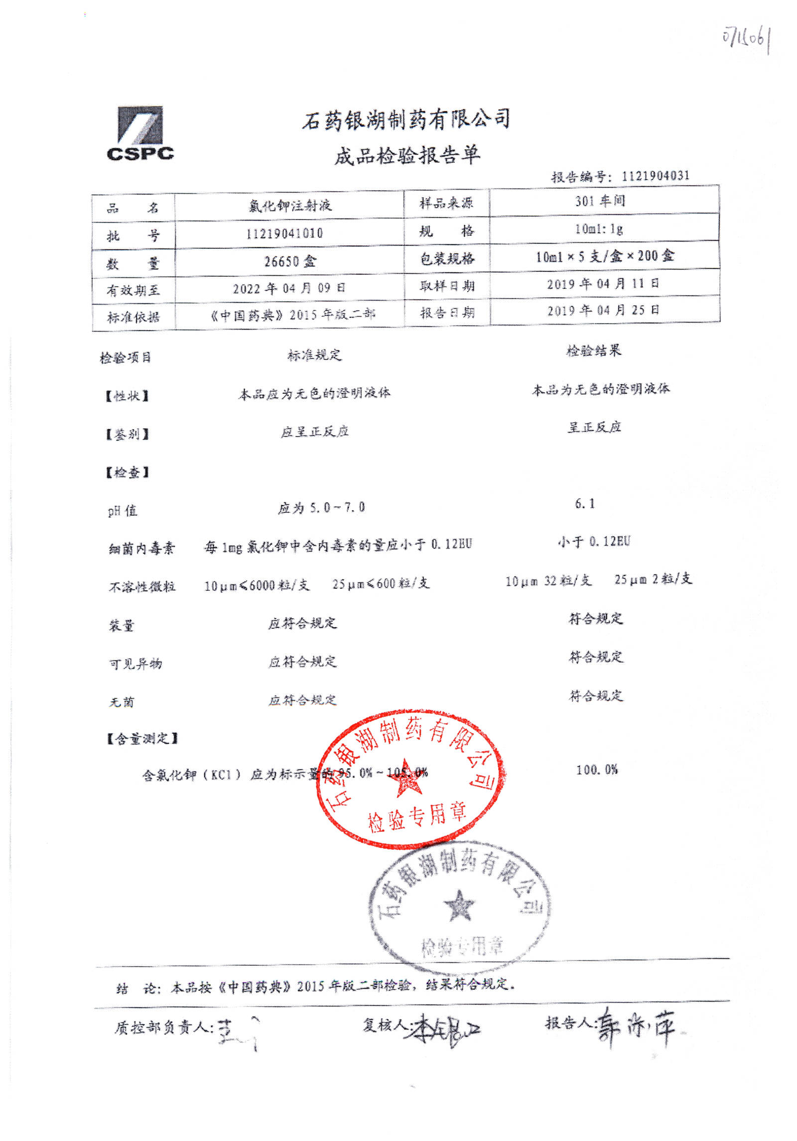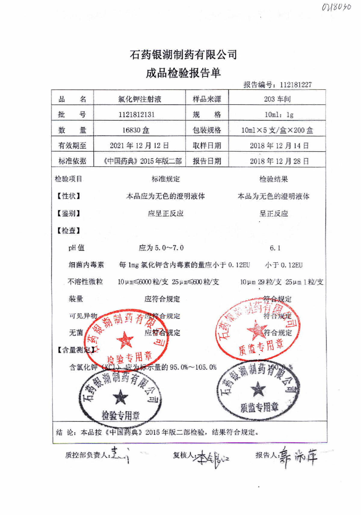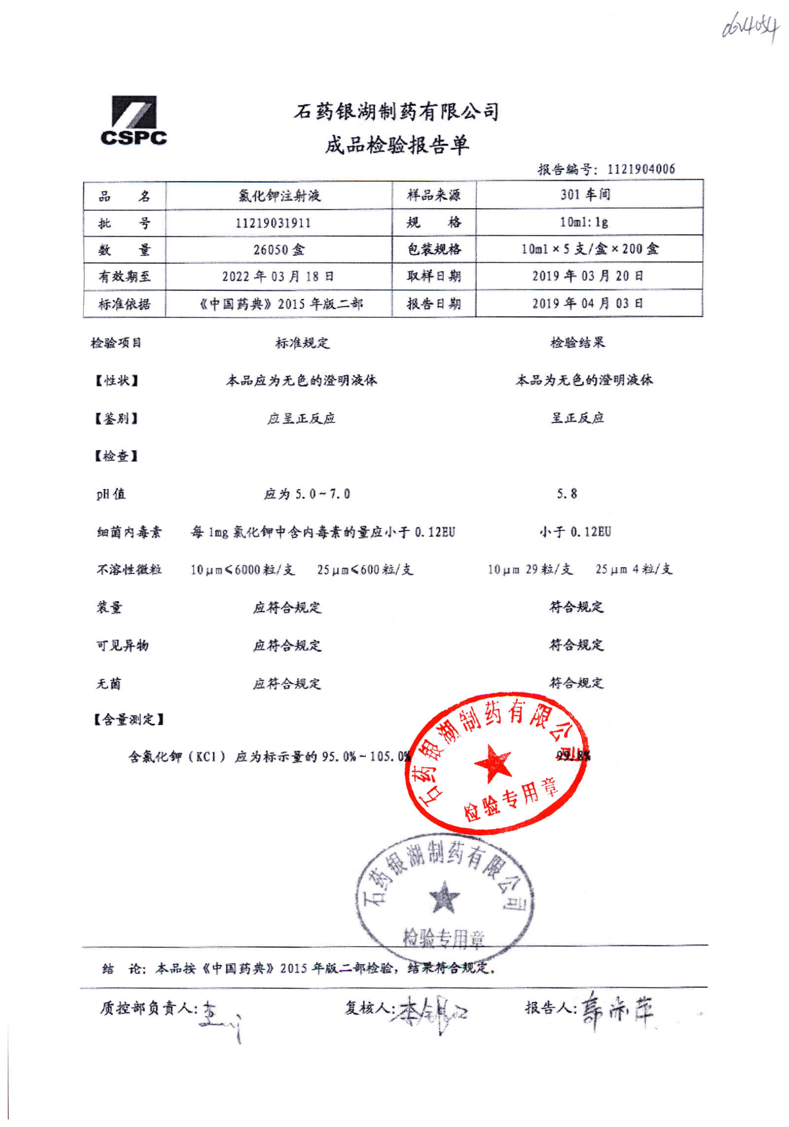 氯化钾注射液 | 10ml:1g | 11219041010 | 查看详情 |