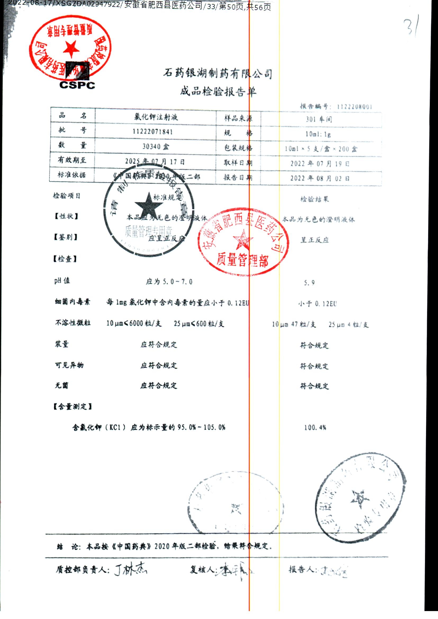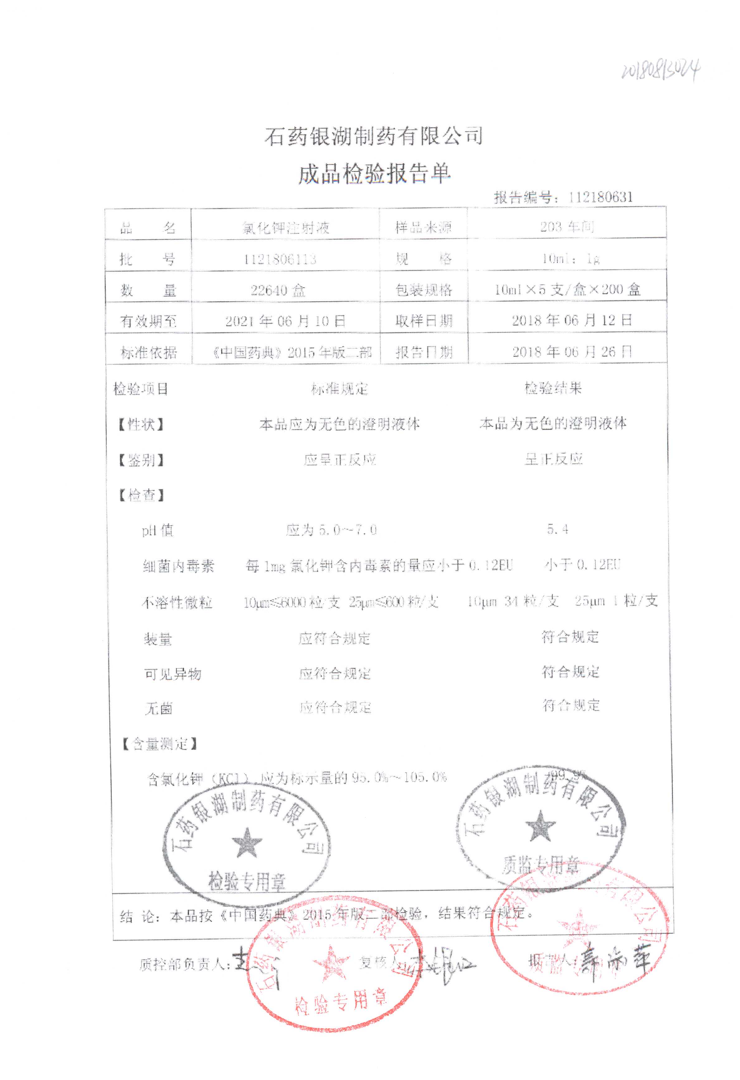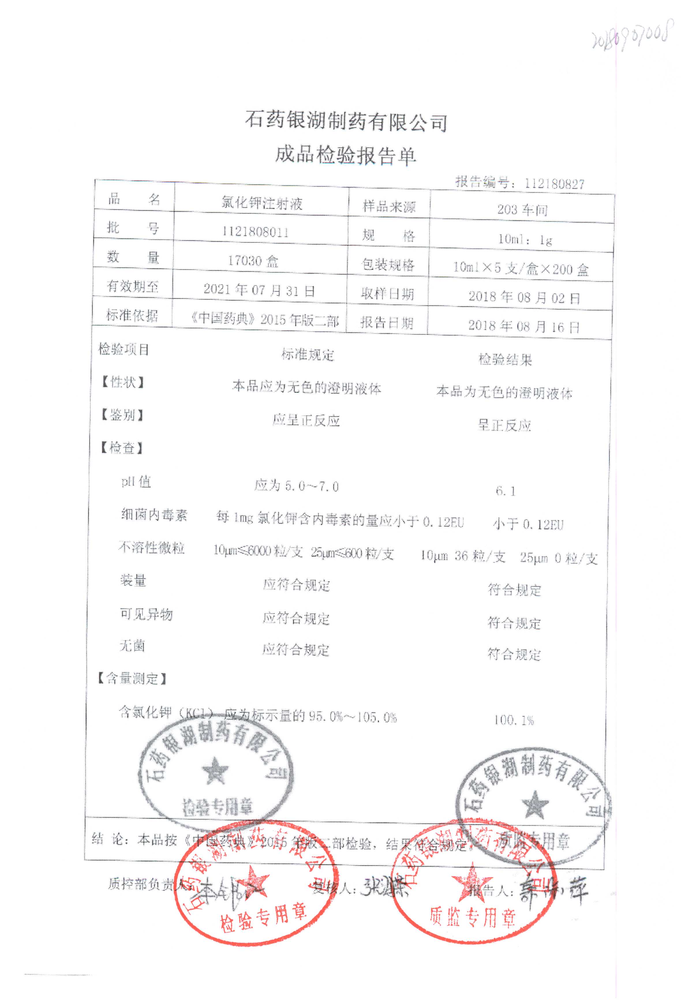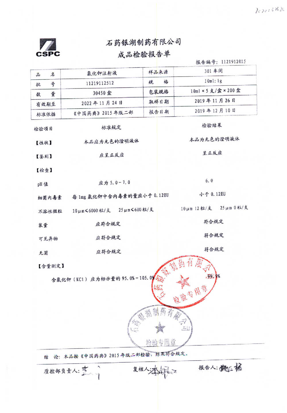 氯化钾注射液 | 10ml:1g | 11219112411 | 查看详情 |