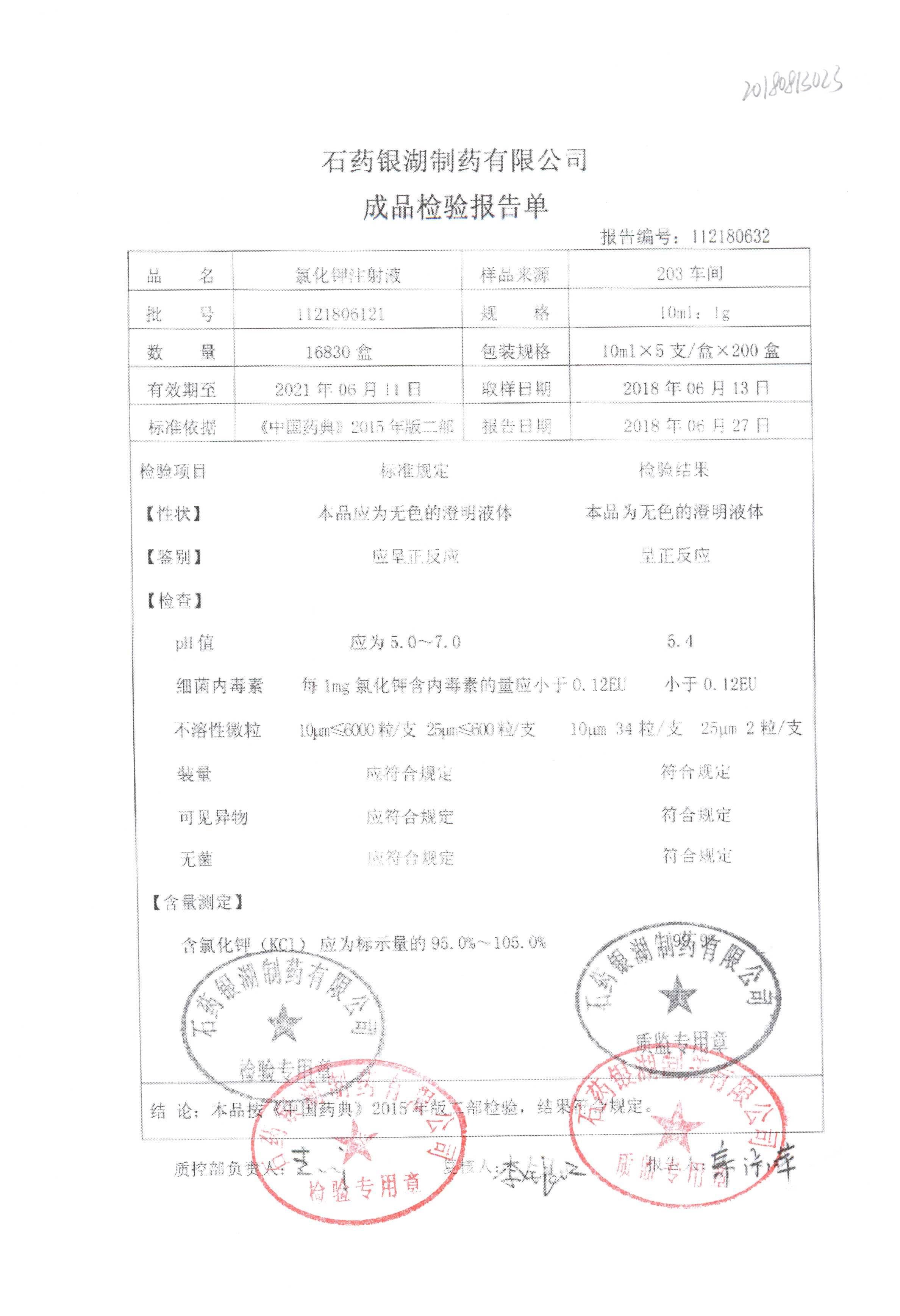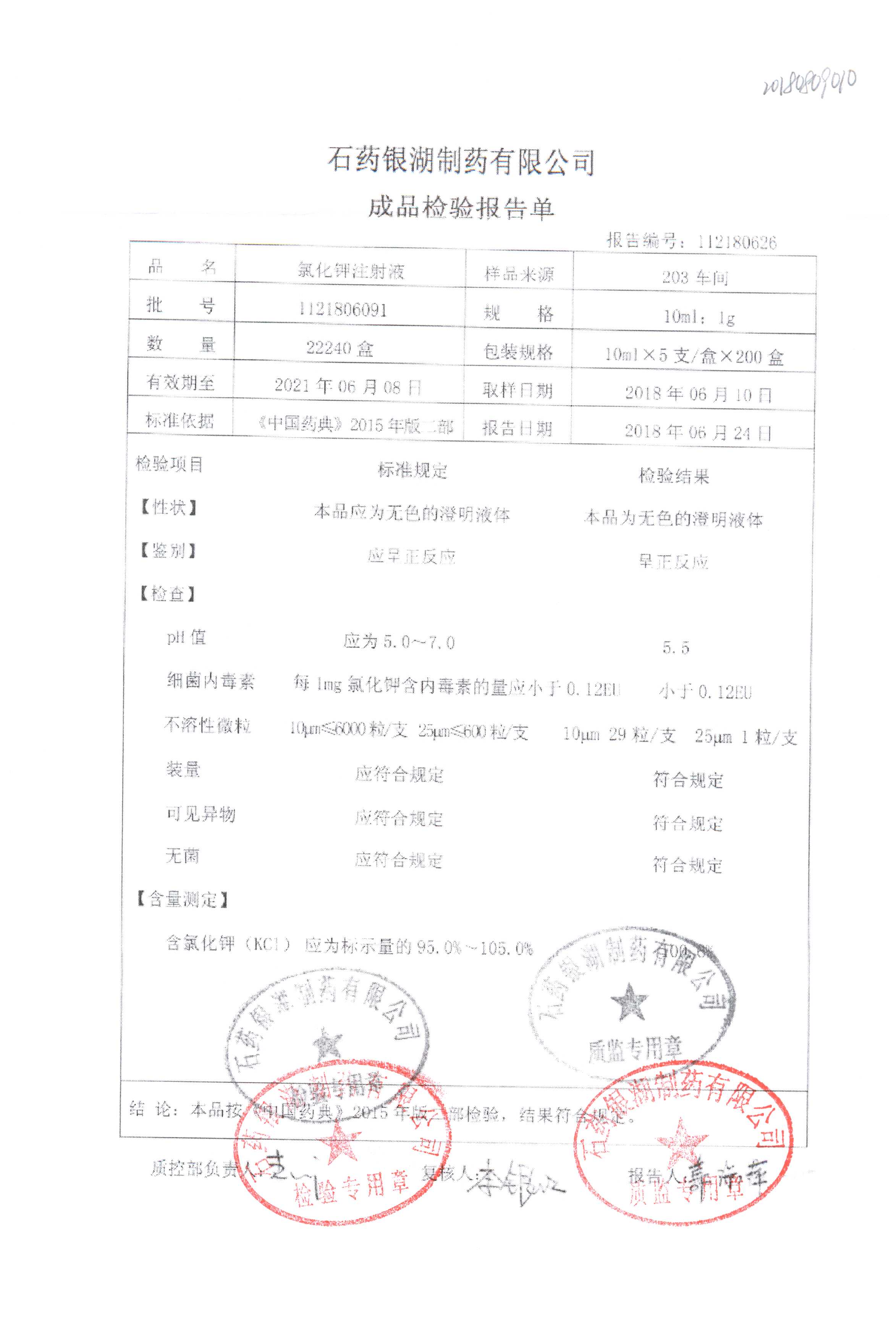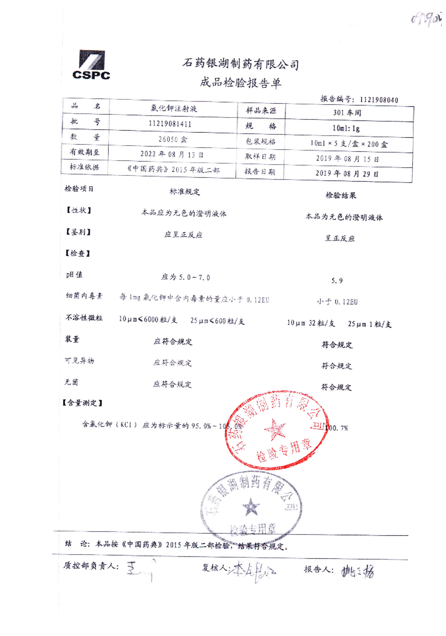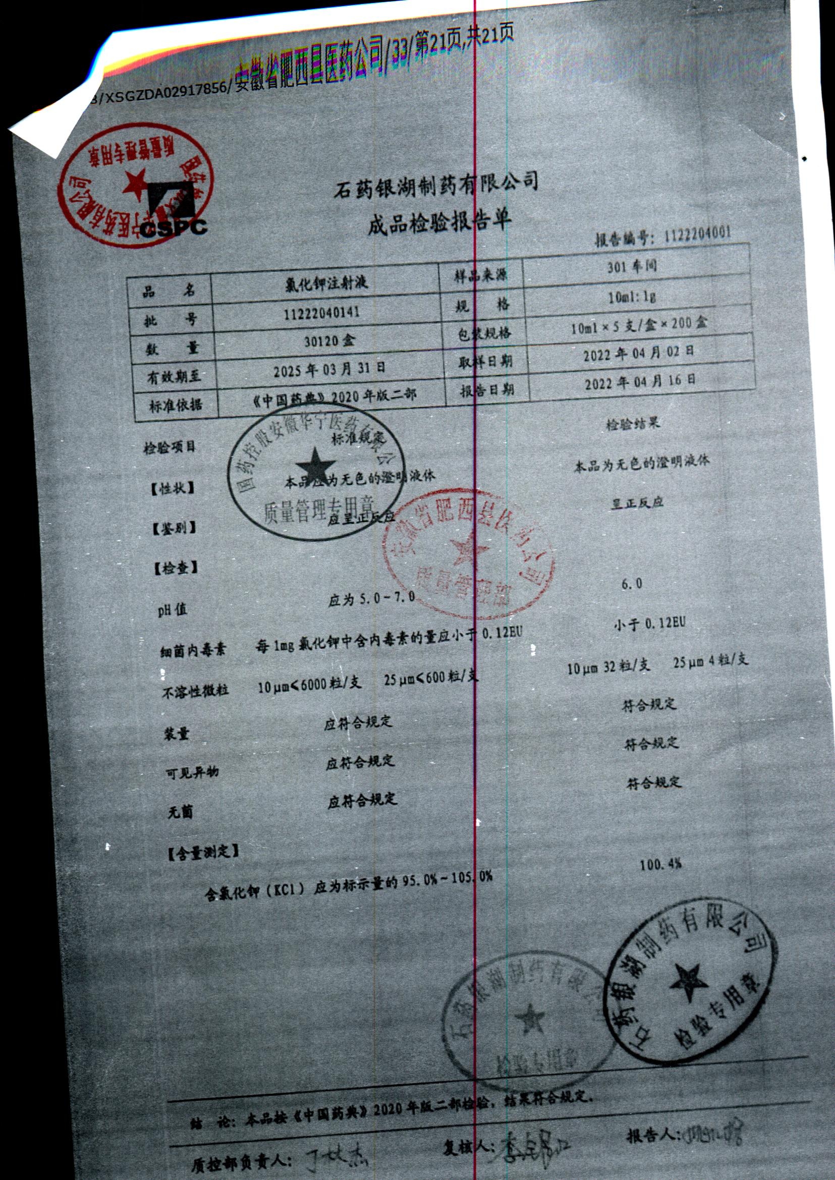 氯化钾注射液 | 10ml:1g | 11219112411 | 查看详情 |