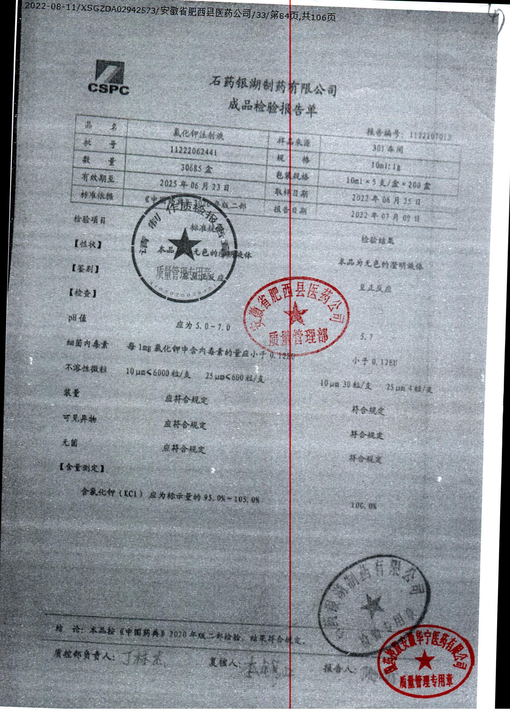 氯化钾注射液 | 10ml:1g | 11222040642 | 查看详情 |
