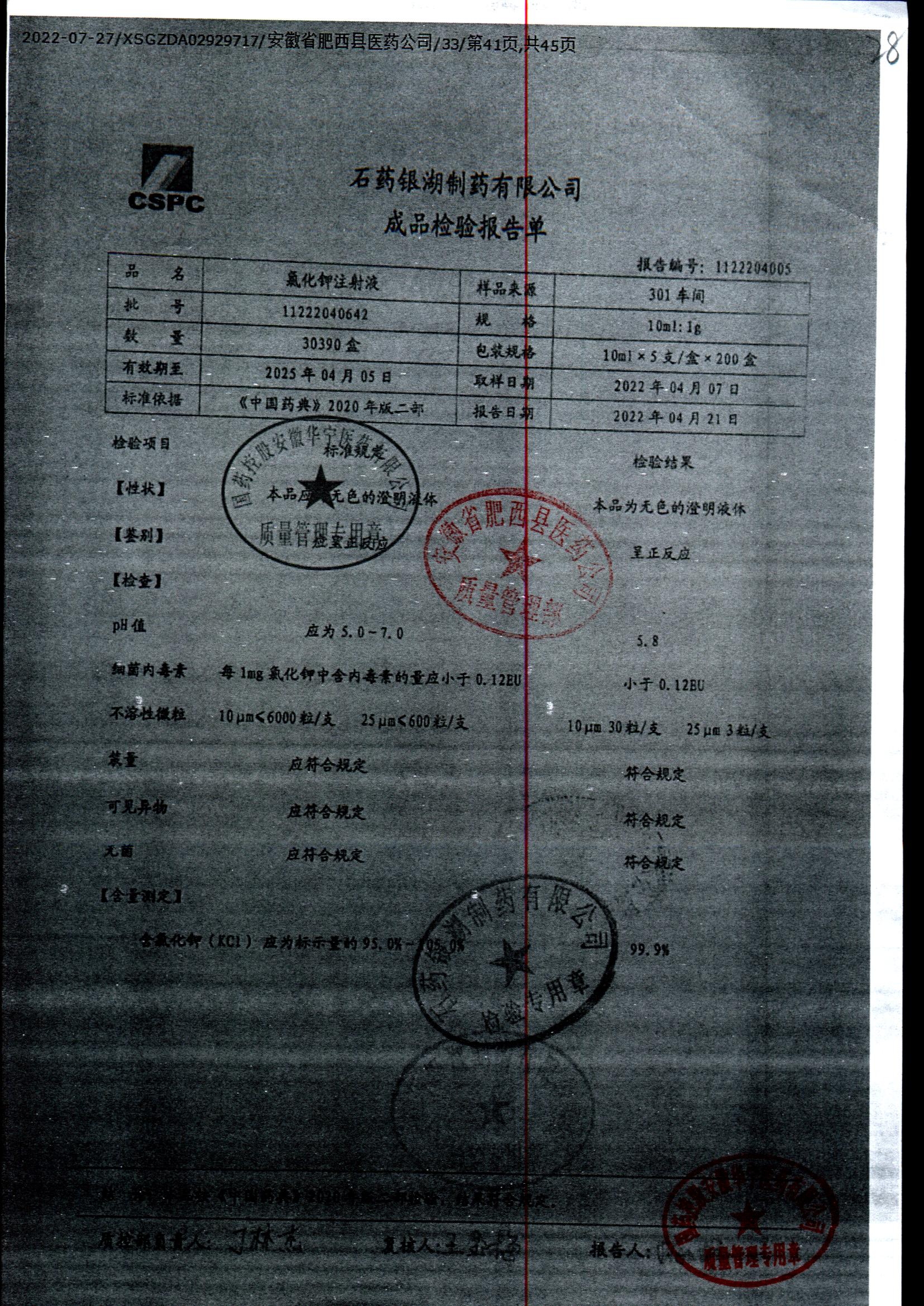 氯化钾注射液 | 10ml:1g | 11220101411 | 查看详情 |