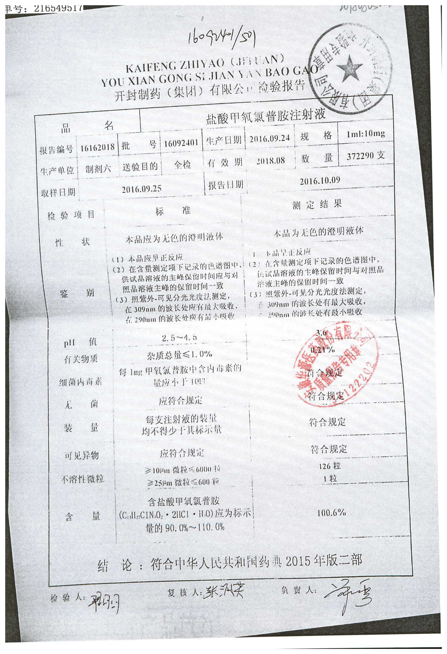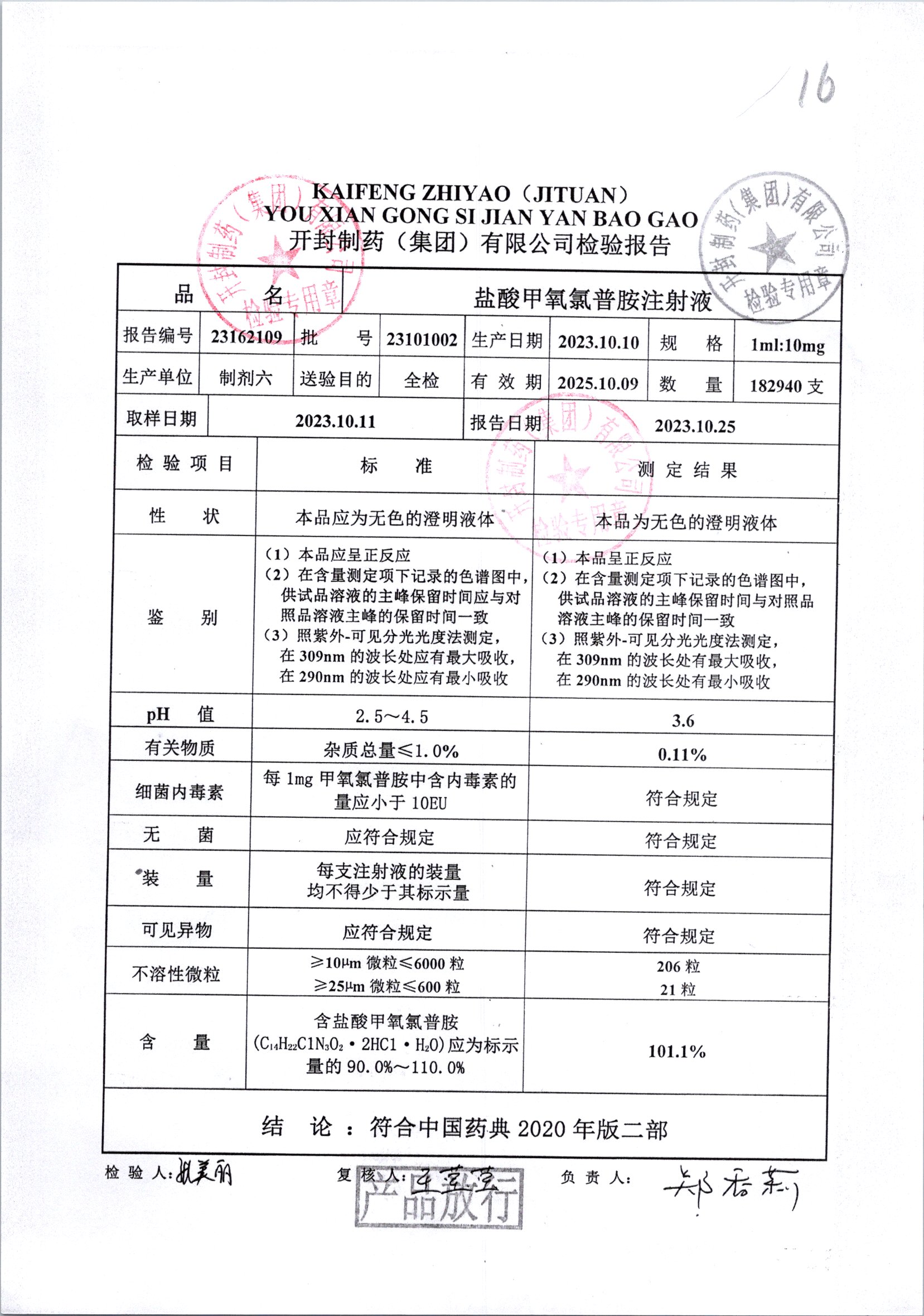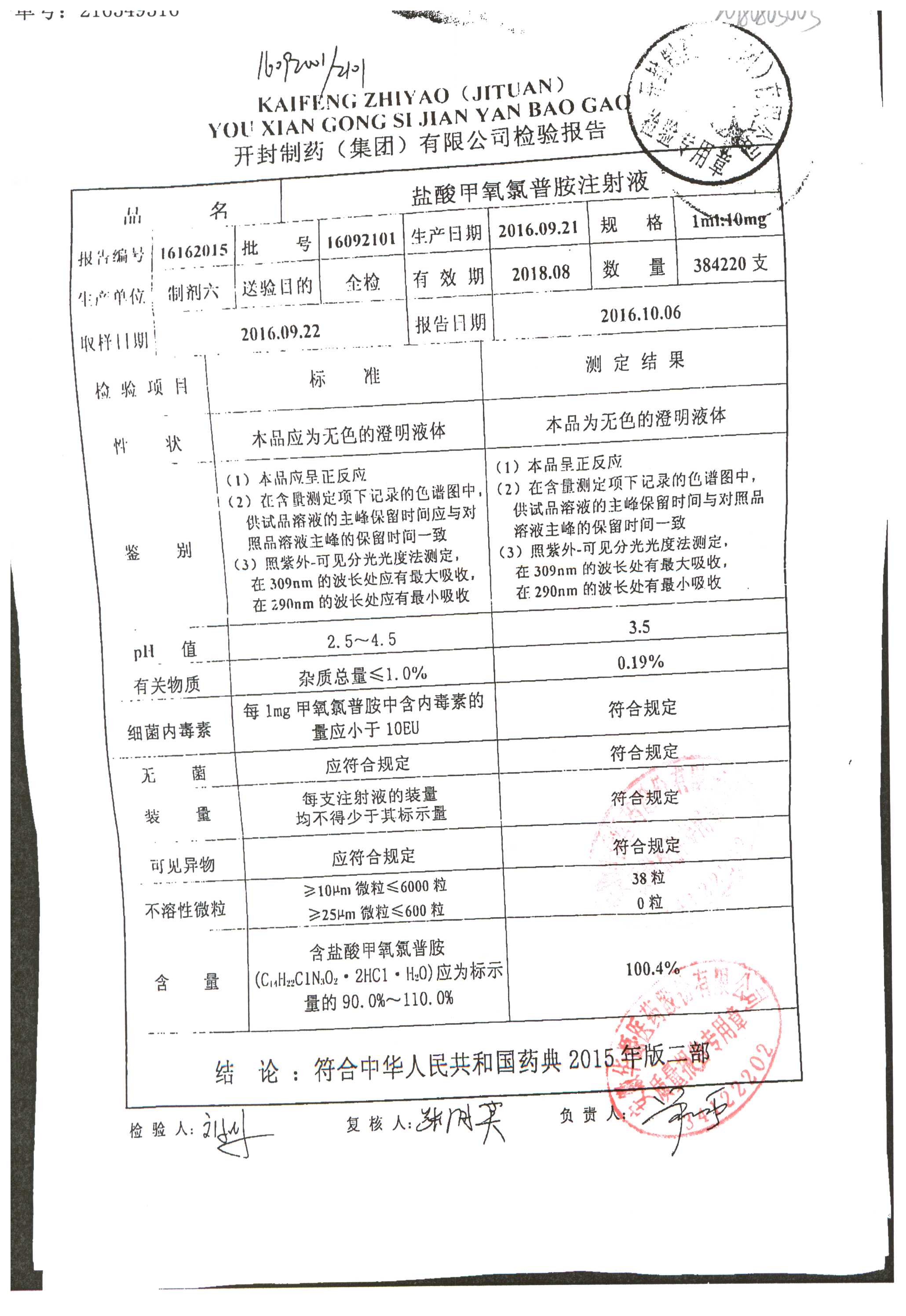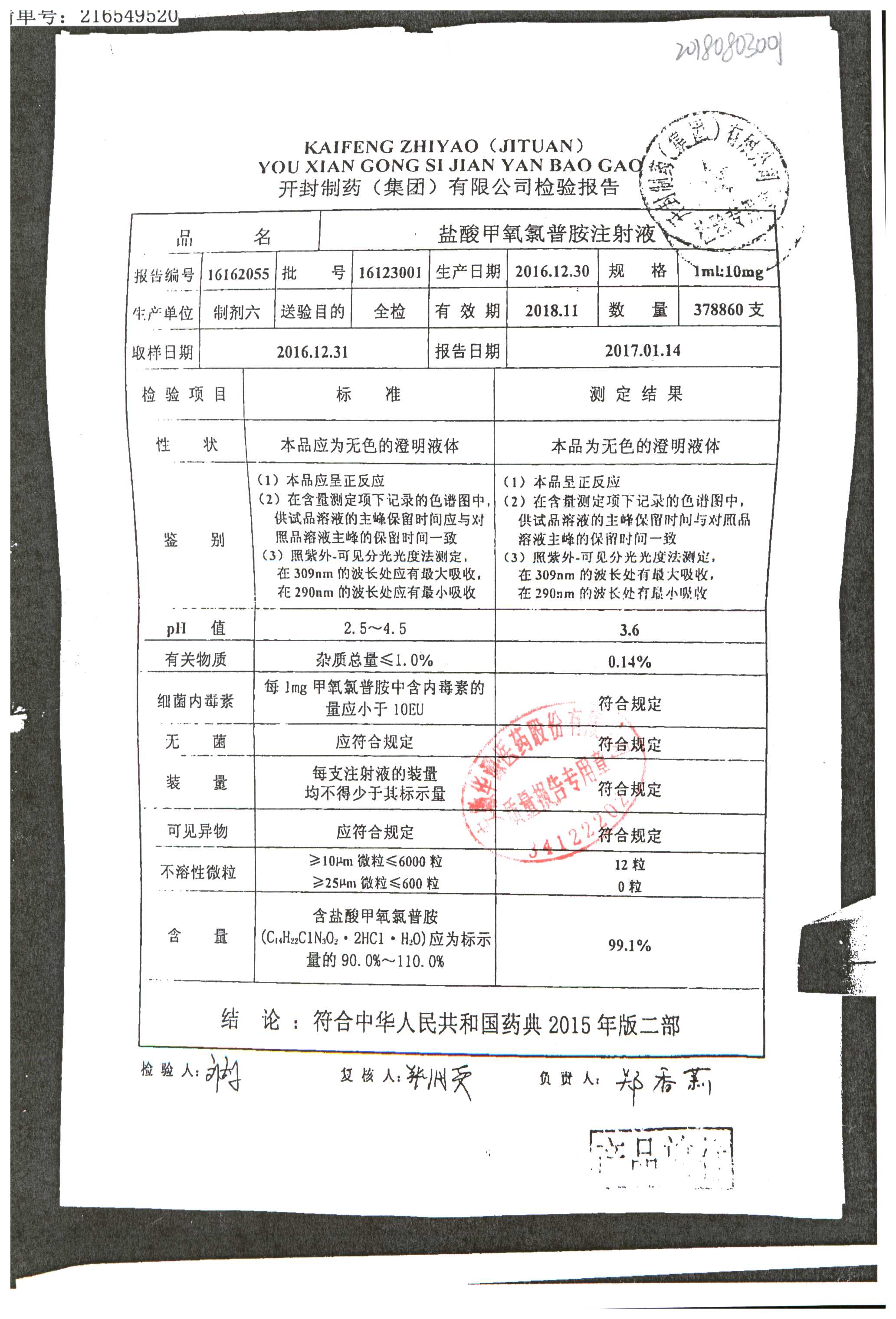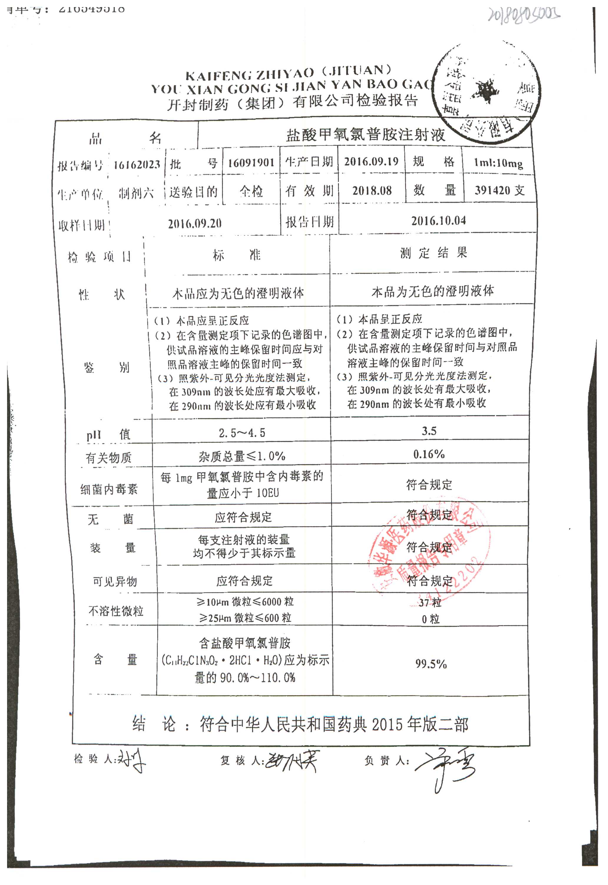 盐酸甲氧氯普胺注射液 | 1ml:10mg | 16092401 | 查看详情 |