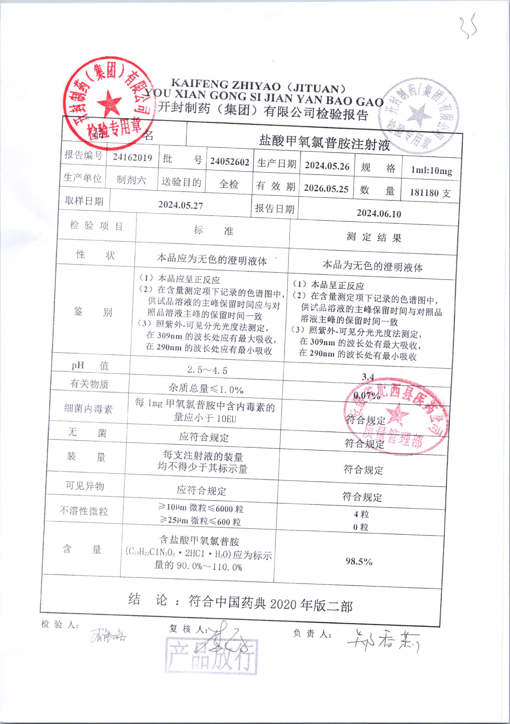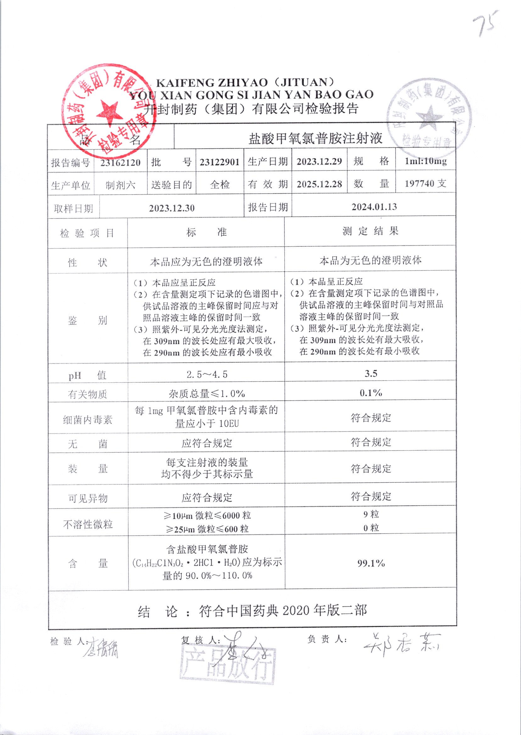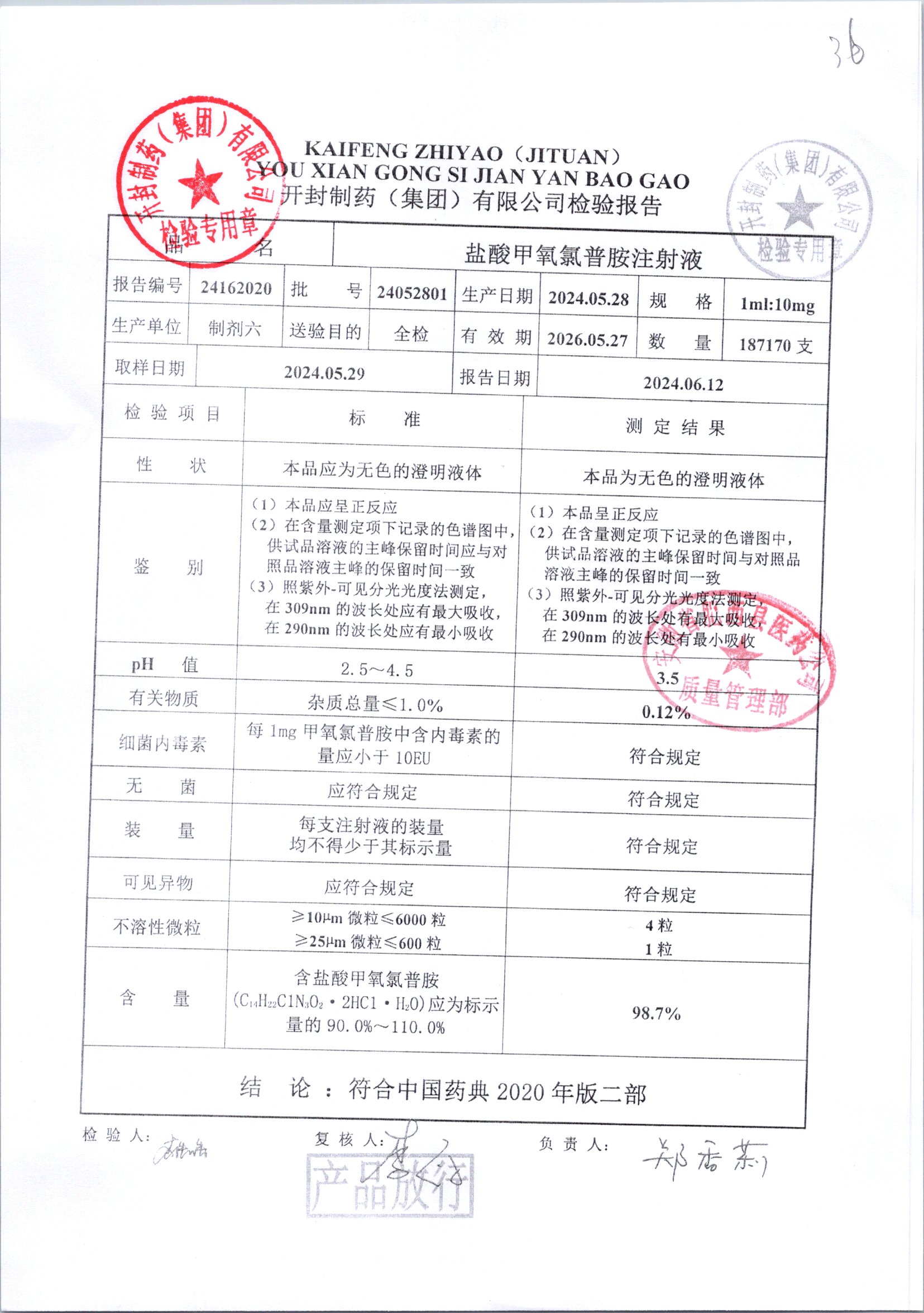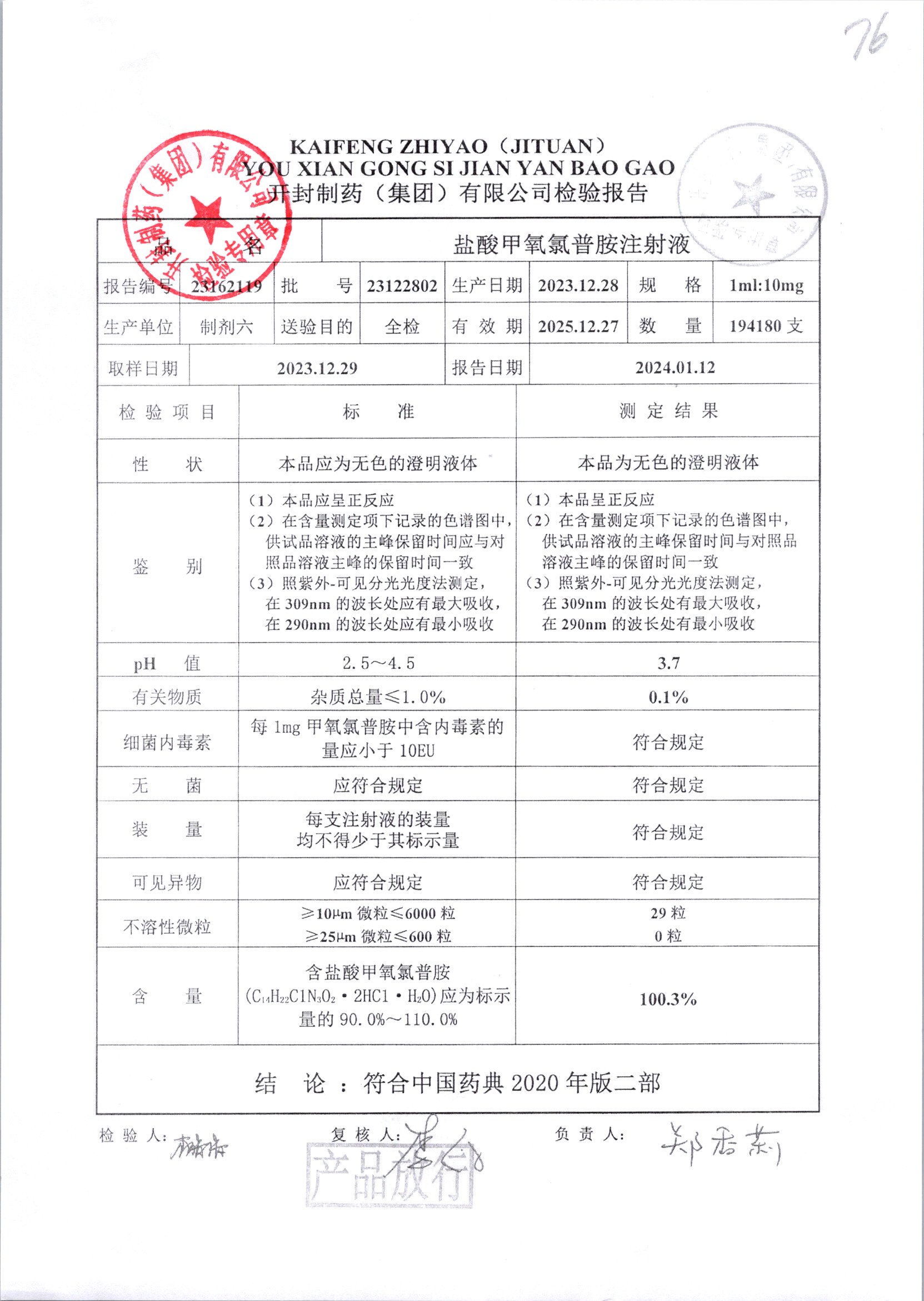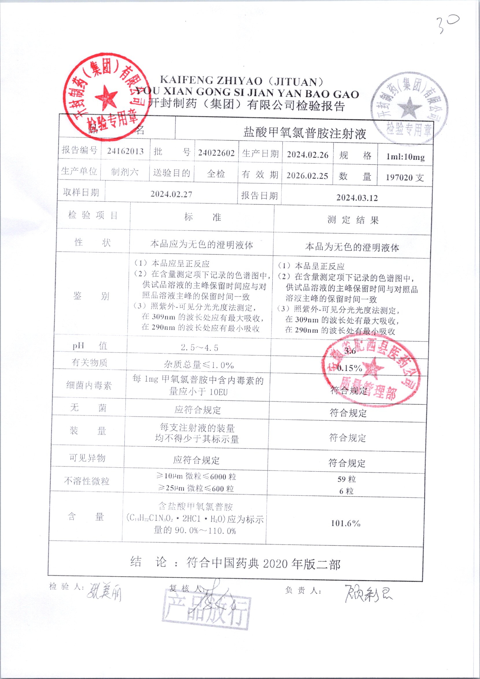 盐酸甲氧氯普胺注射液 | 1ml:10mg | 24062001 | 查看详情 |
