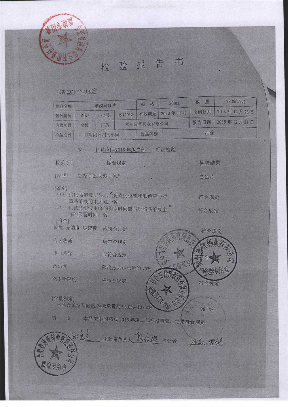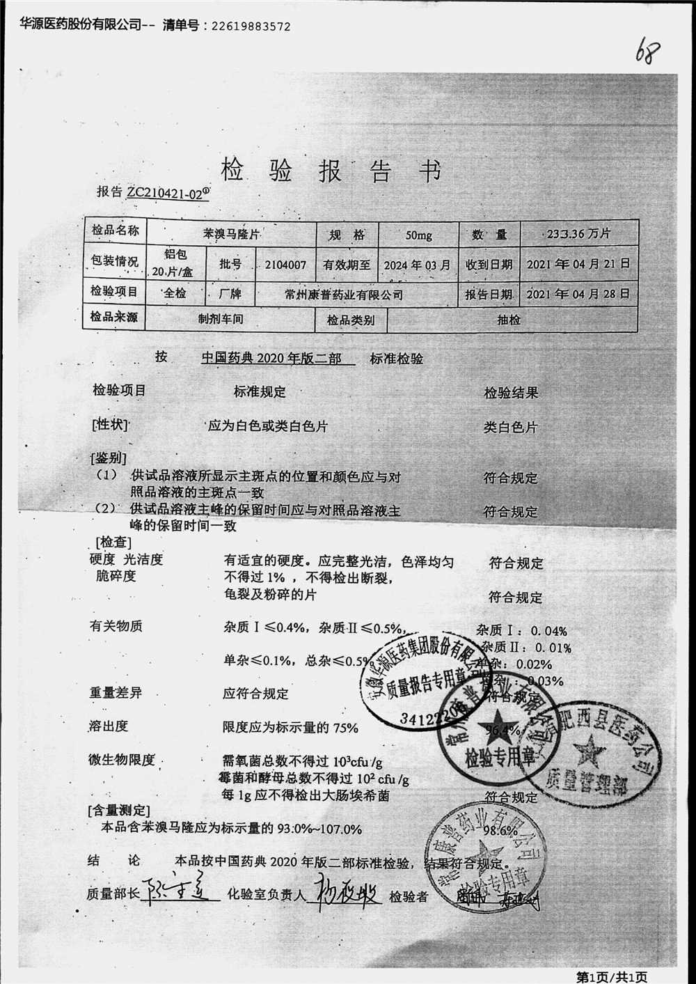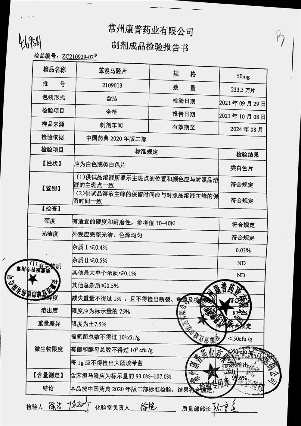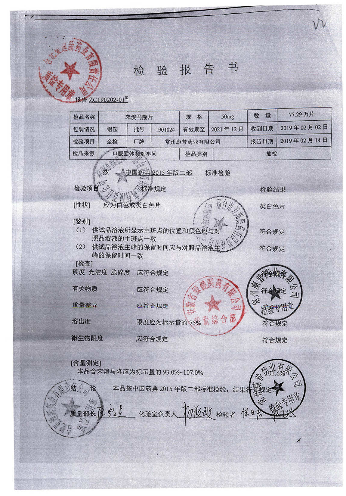 苯溴马隆片 | 50mg | 1912003 | 查看详情 |