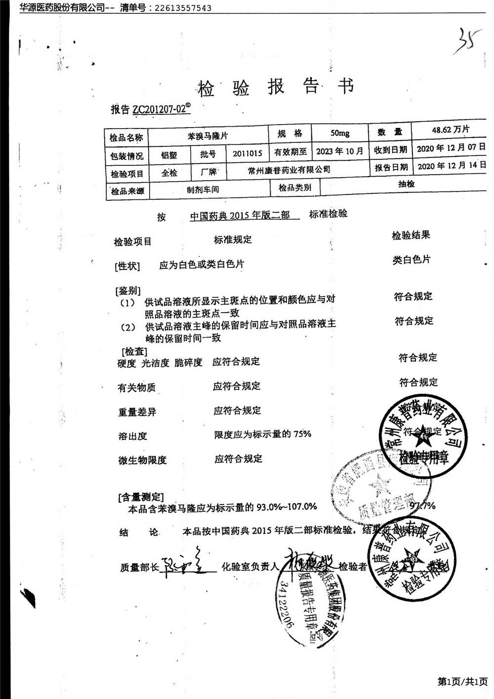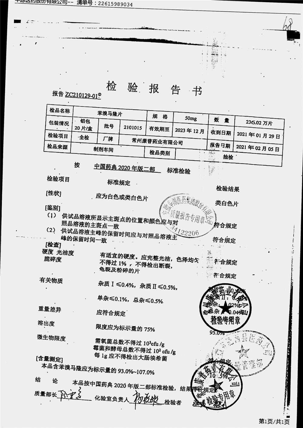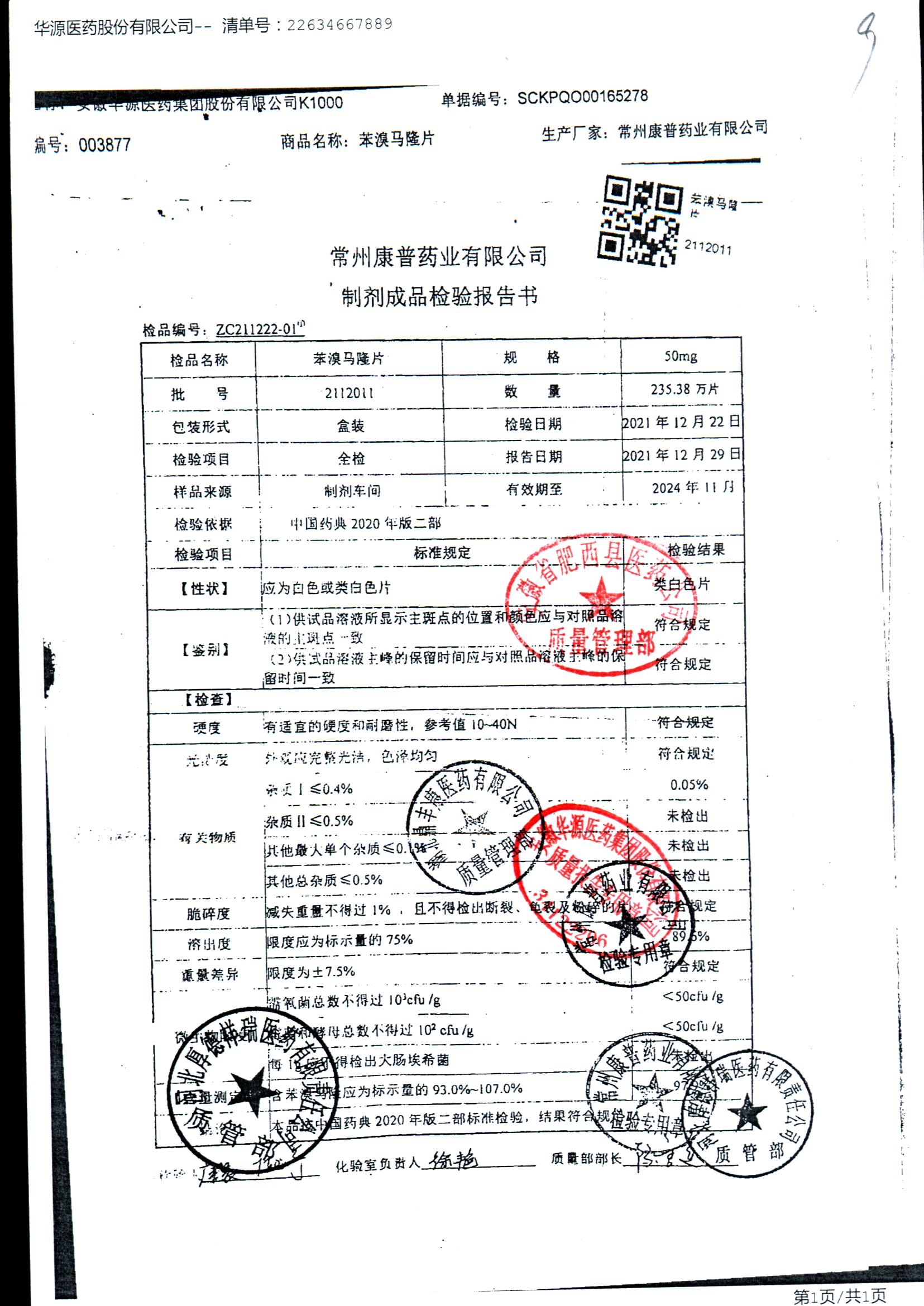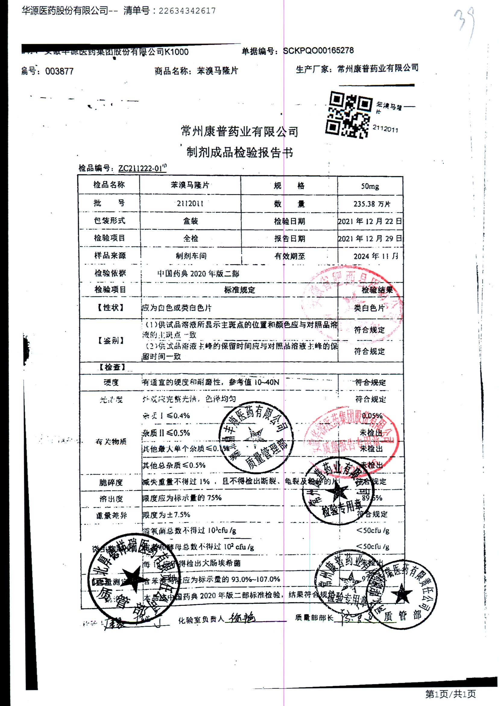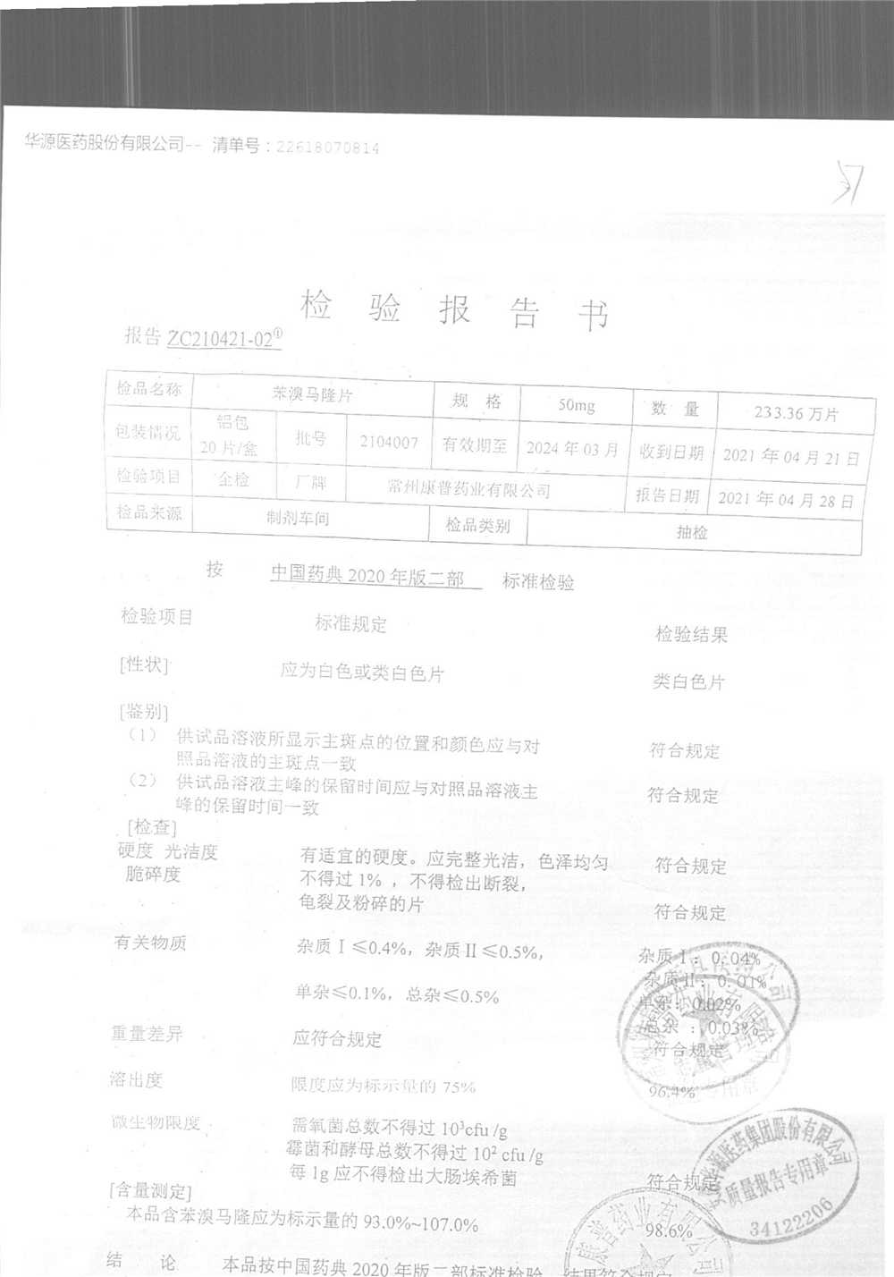 苯溴马隆片 | 50mg | 2205017 | 查看详情 |